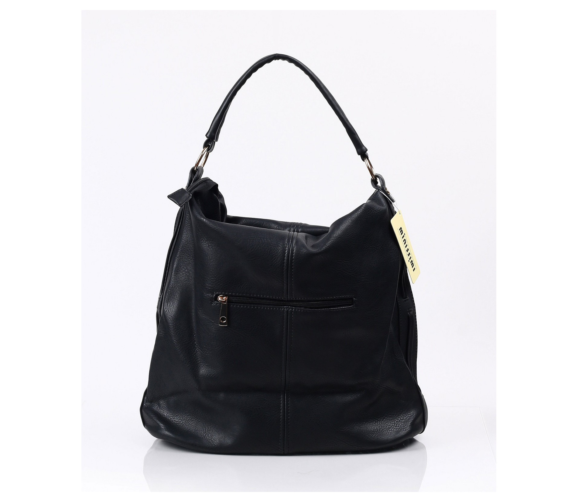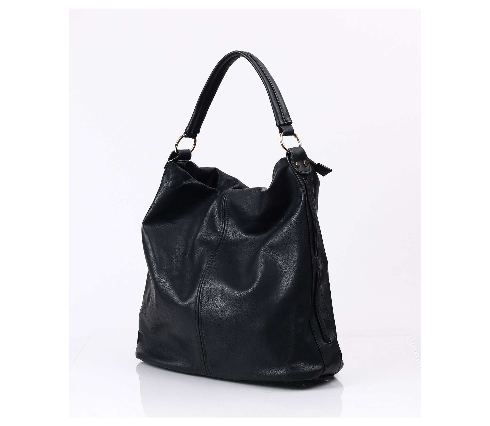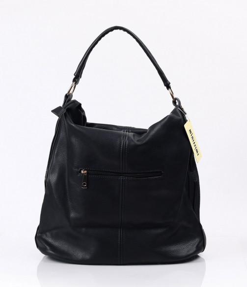 Описание на продукта: Страхотно предложение за тези от Вас, които предпочитат street-визията, в един по- елегантен вариант. Дамска спортно-елегантна чанта в класическият черен цвят. Основата на модела е напълно изчистена от орнаменти и мотиви. Акцента на модела е леко намачканият ефект, които придата този разчупен вид. Дръжките на чантата са къси, прихванати с интересни халки. Вътре моделът разполага с няколко прегради. Семпла черна чанта.. нужна е във всеки гардероб.