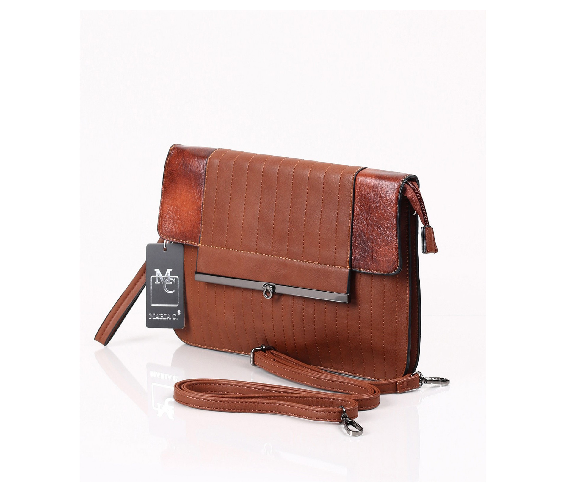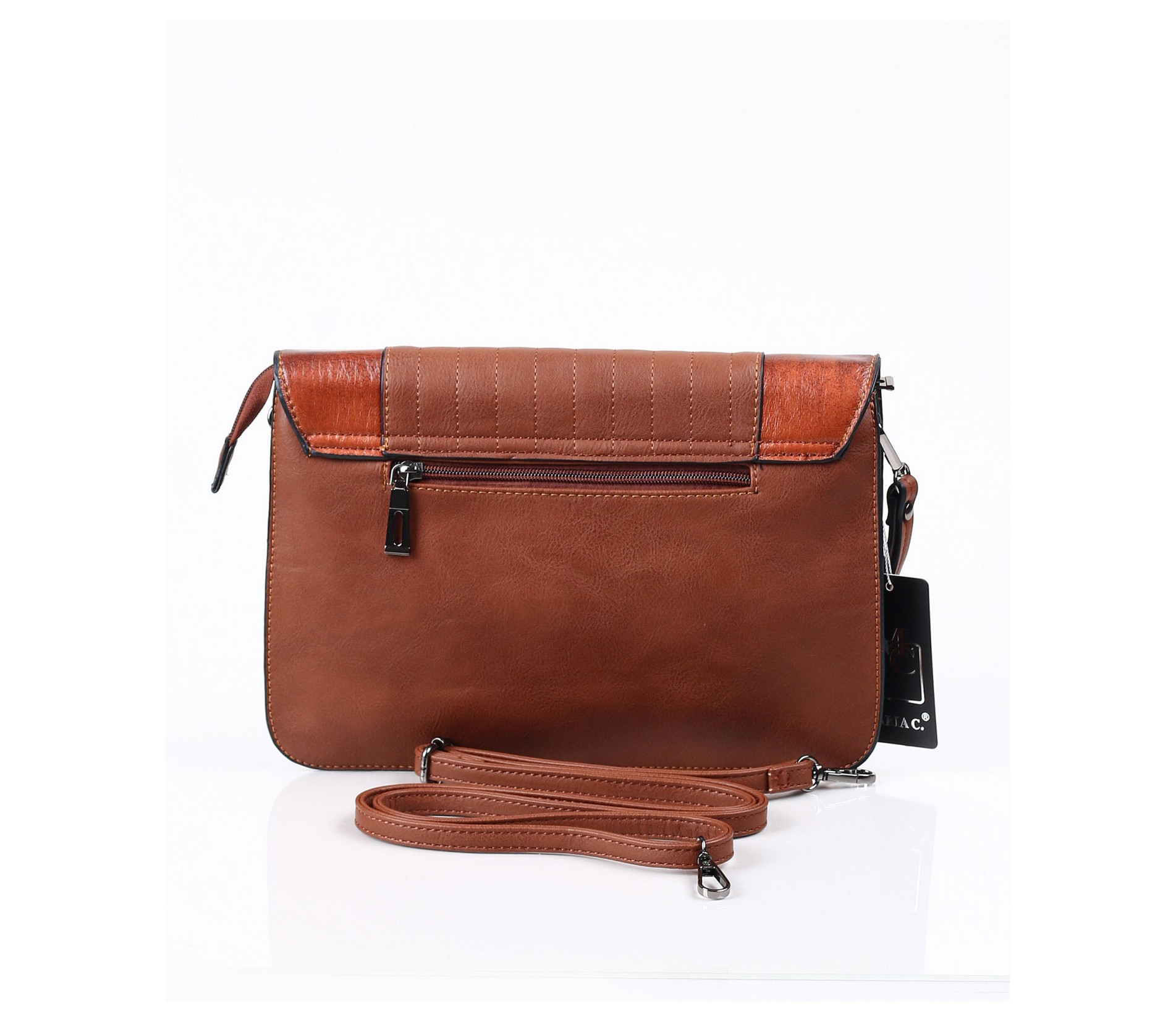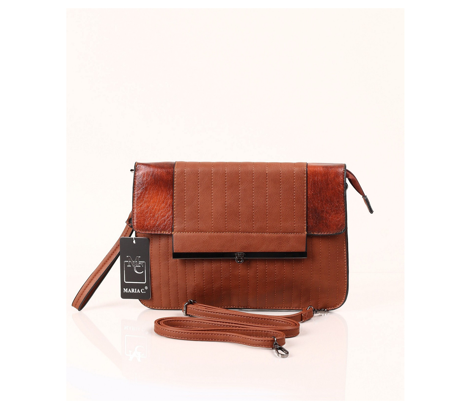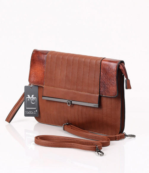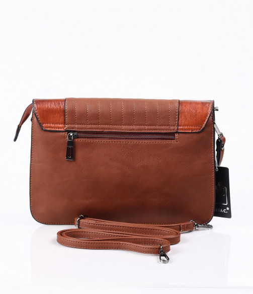 Описание на продукта: Модерна и практична дамска чанта в три актуални за сезона цвята - син, черен и кафяв. Този модел впечатлява с изискания си дизайн. В предната част се наблюдава съчетание между два типа кожа - напълно изчистена, в леко лъскав десен, и релефна кожена част, набраздена с вертикални шевове. Закопчаването е с помощта на цип, над който има капаче, придържащо се с метален аксесоар. На гърба на чантата има малък джоб с цип. Интересното при този модел чанта е, че може да се ползва както в ежедневието, така и за специален повод. Има две удобни дръжки - една къса и една дълга. Лесно и бързо може да се превърне в любимия ви аксесоар.