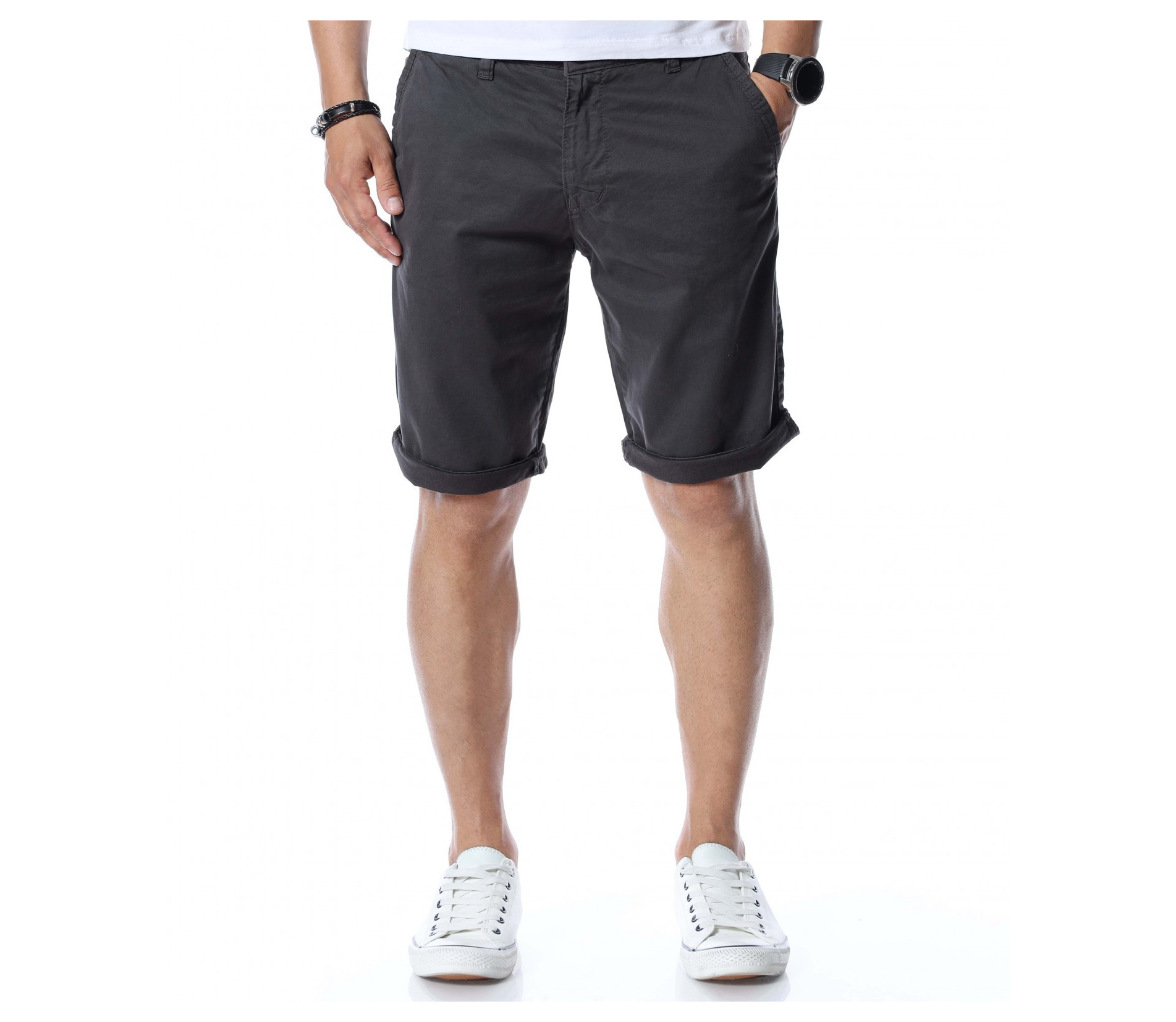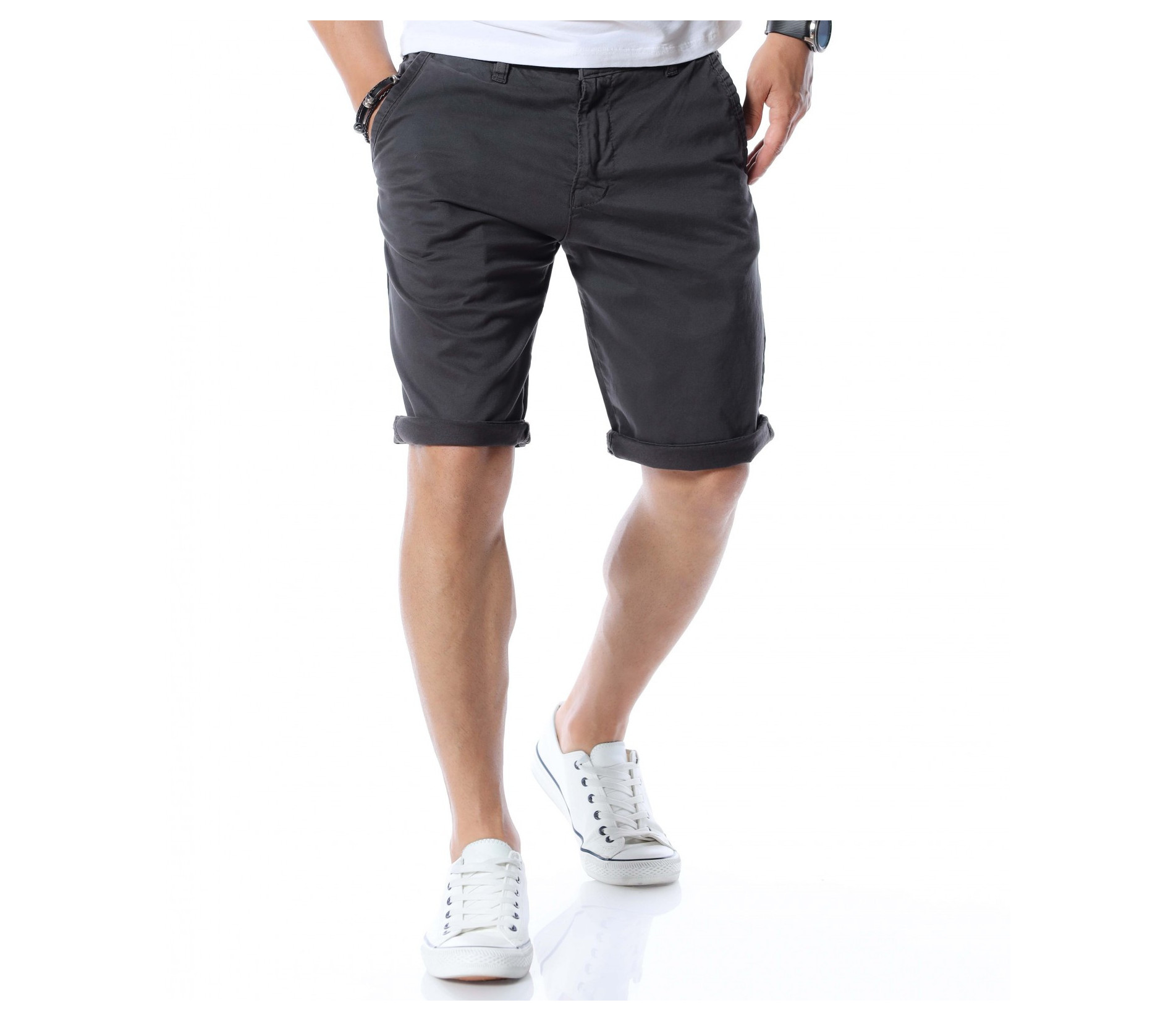 Гардеробът трябва да ви позволява за всяка ситуация да имате подходящо облекло, с което да се чувствате и изглеждате добре. Затова сме помислили за модните тенденции и ви представяме - Къси летни мъжки панталони. По моделът откриваме типичните джобове - два стандартни отпред, а закопчаването се състои в цип и копче. Моделът е изчистен от допълнителни декорации. На талията са позиционирани гайки, за да може по-лесно да добавите колан по ваше желание. Кройката се отличава с достатъчно свобода, а меката материя осигурява незаменим комфорт на тялото. В зависимост от вашите стилови предпочитания, дизайнът позволява широко приложение и може да комбинирате с подходящи обувки, тениски, а защо не и нещо по-официално?