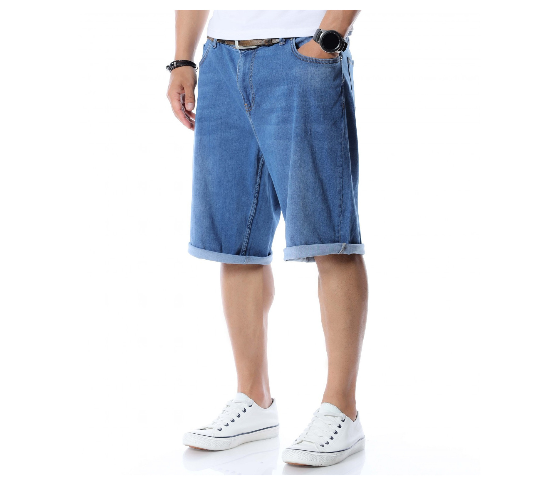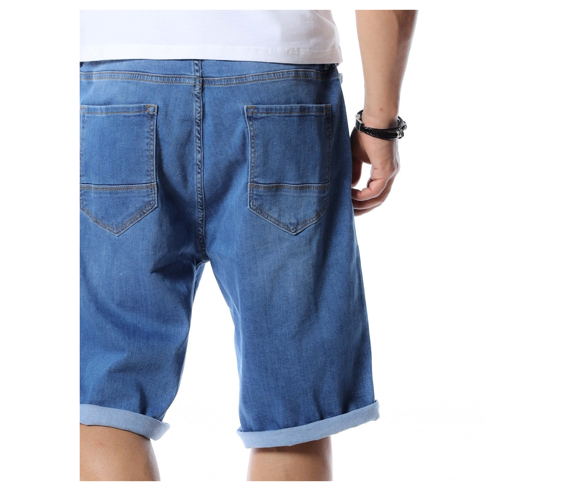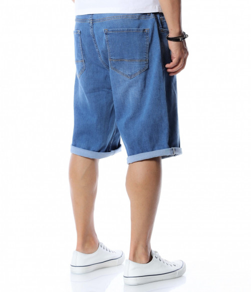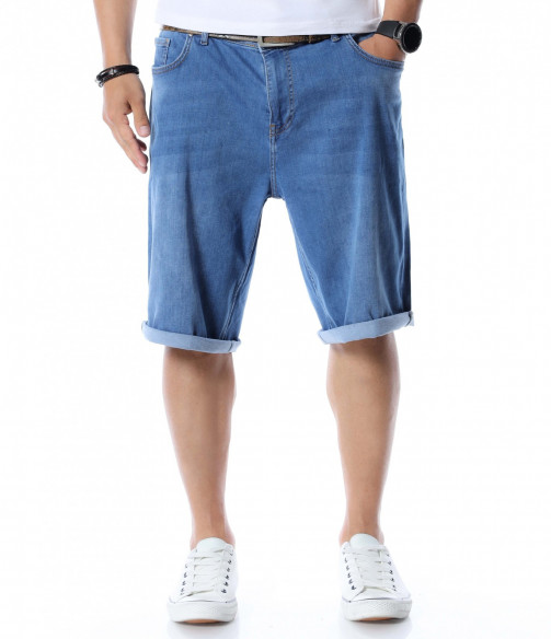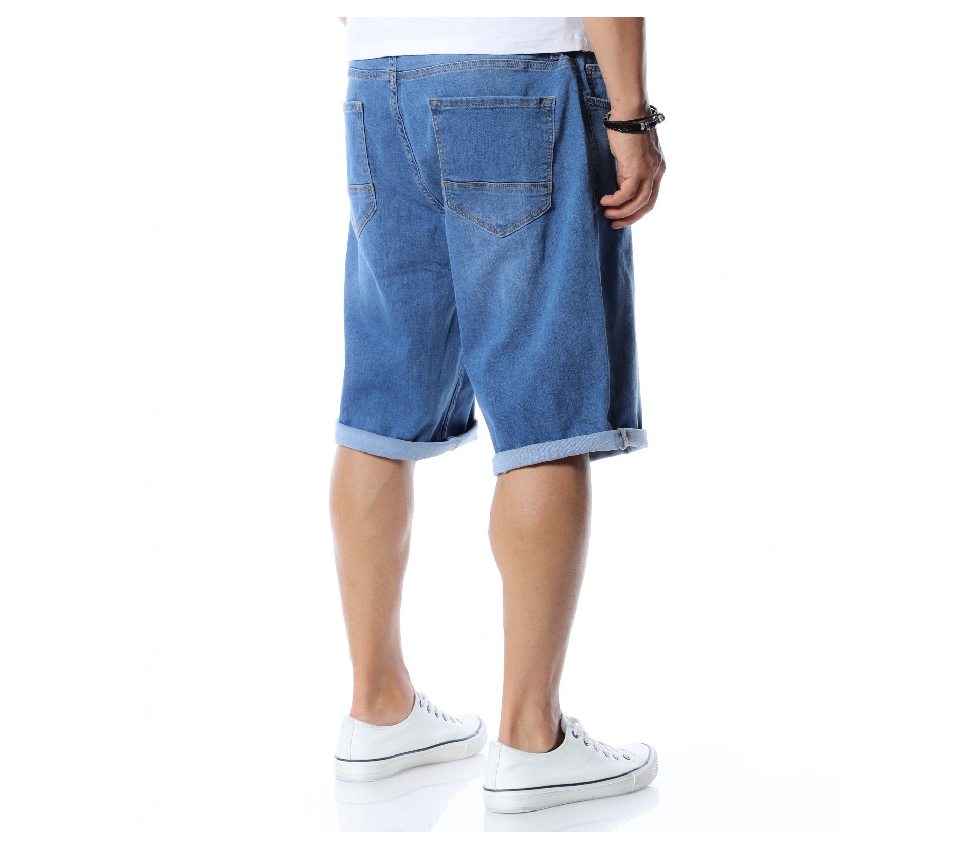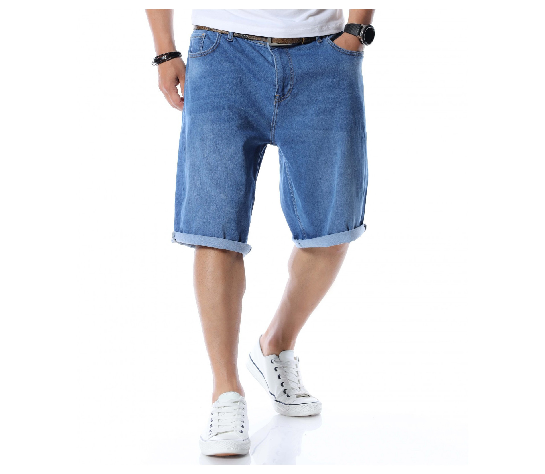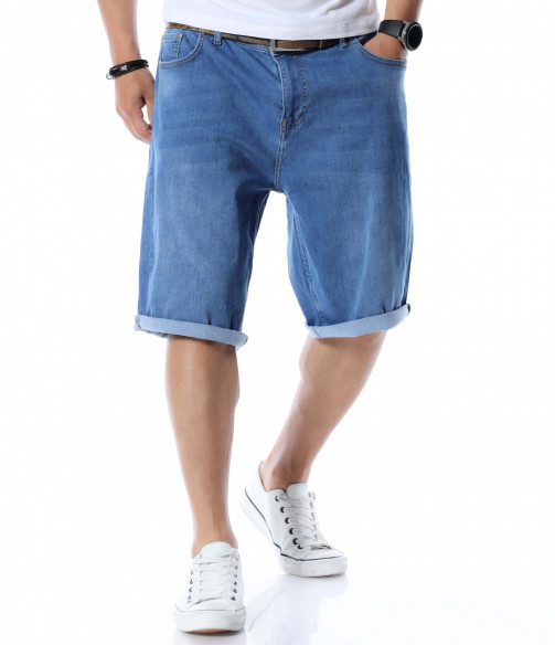 Представяме ви класически, мъжки, летни къси дънки с дължина до коляното, която може да подгънете при нужда. Моделът е oversize, а кройката позволява лекота и свобода на движение. Джобовете са 4 - два стандартни отпред и два отзад. Основата е изчистена от допълнителни декорации и елементи, само забелязваме леко и небрежно изсвелелите на места мотиви. Изработката се състои от 98%памук и 2%еластант. Комбинирайте с кецове, тениска или нещо по-официално и любими аксесоари.