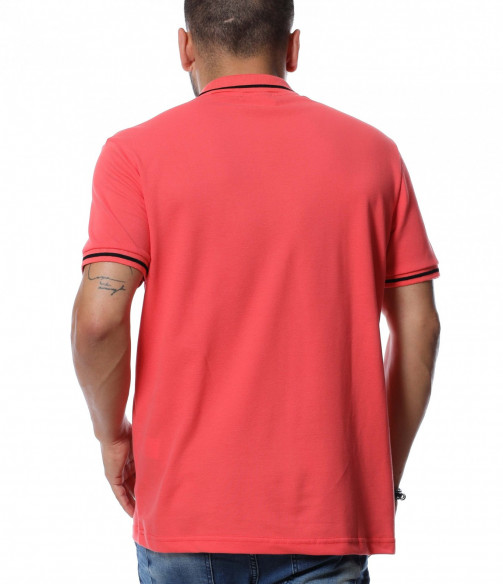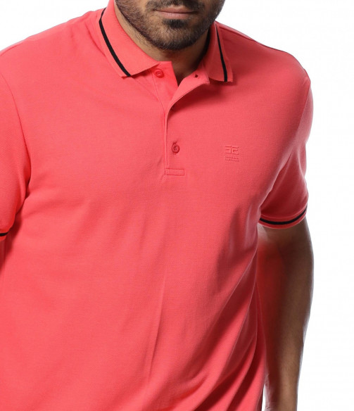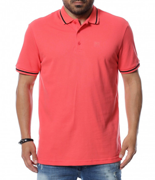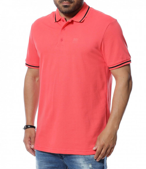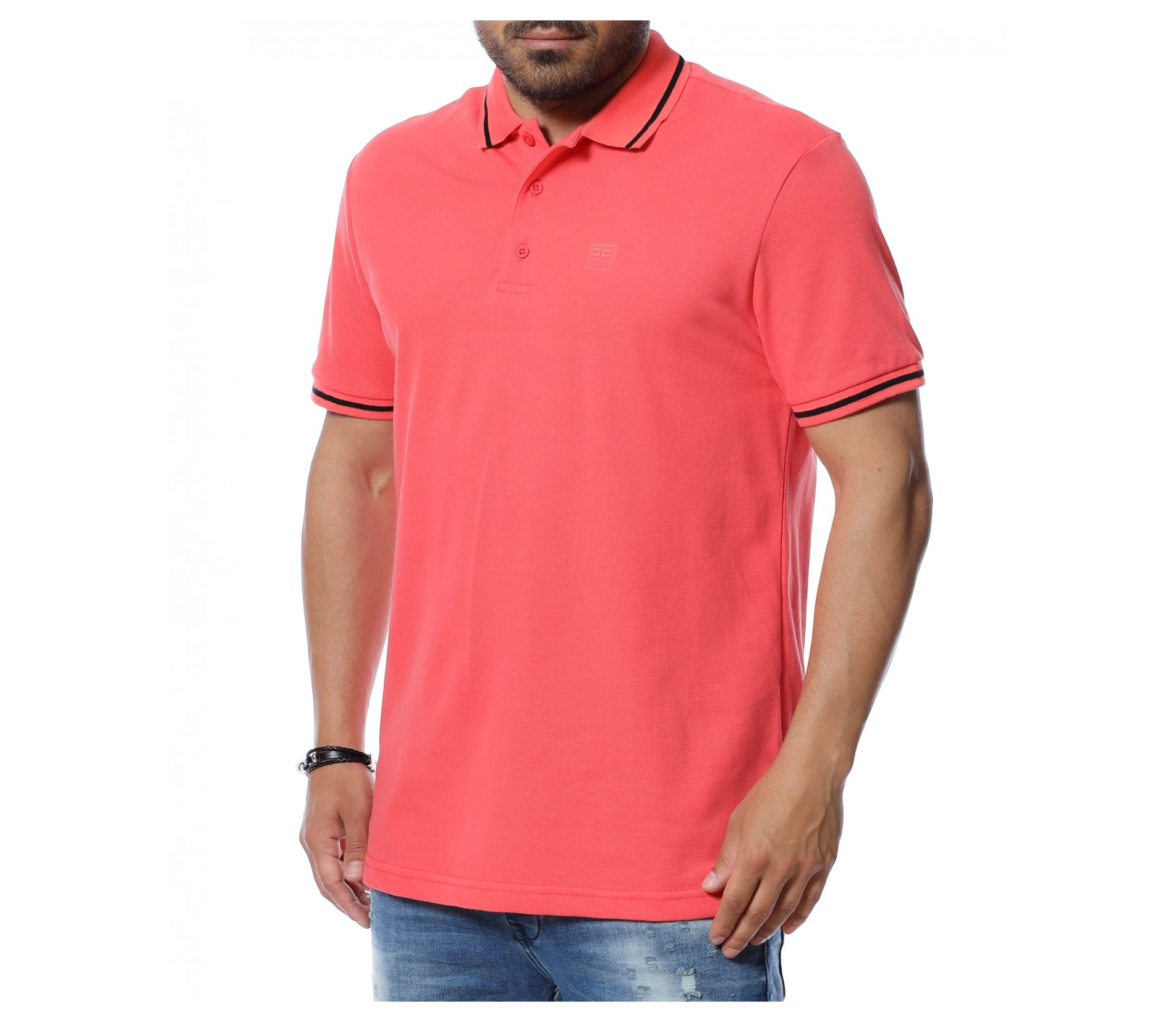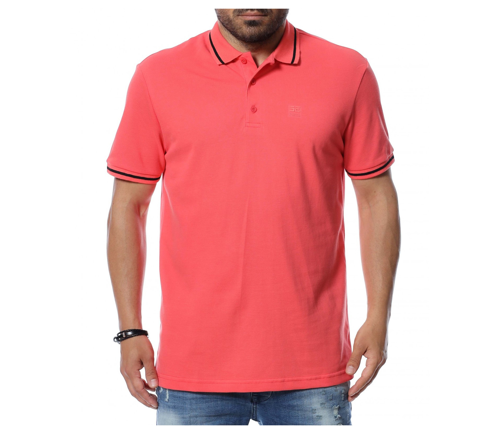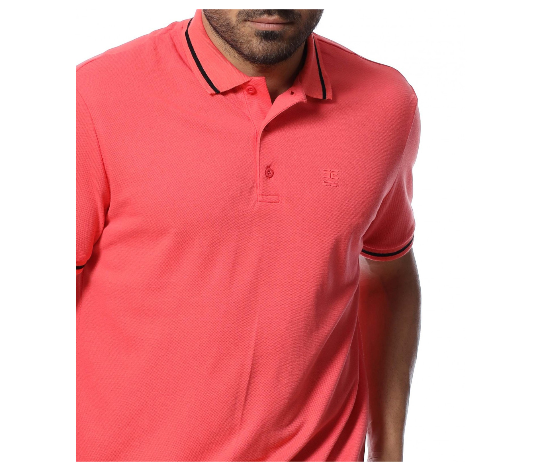 Тениската е едноцветна, а при края на ръкавите и яката са добавени отличаващи се линии.