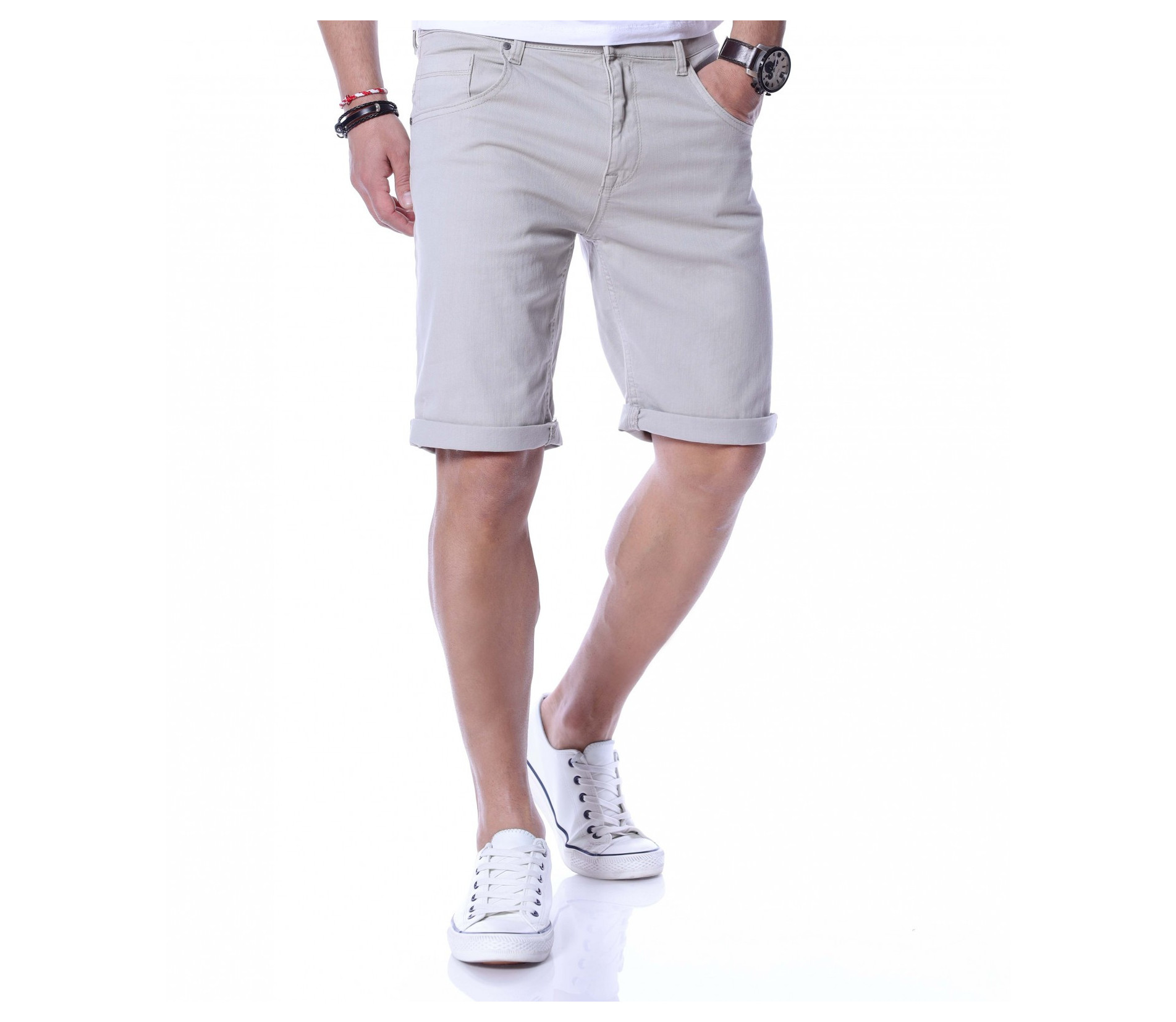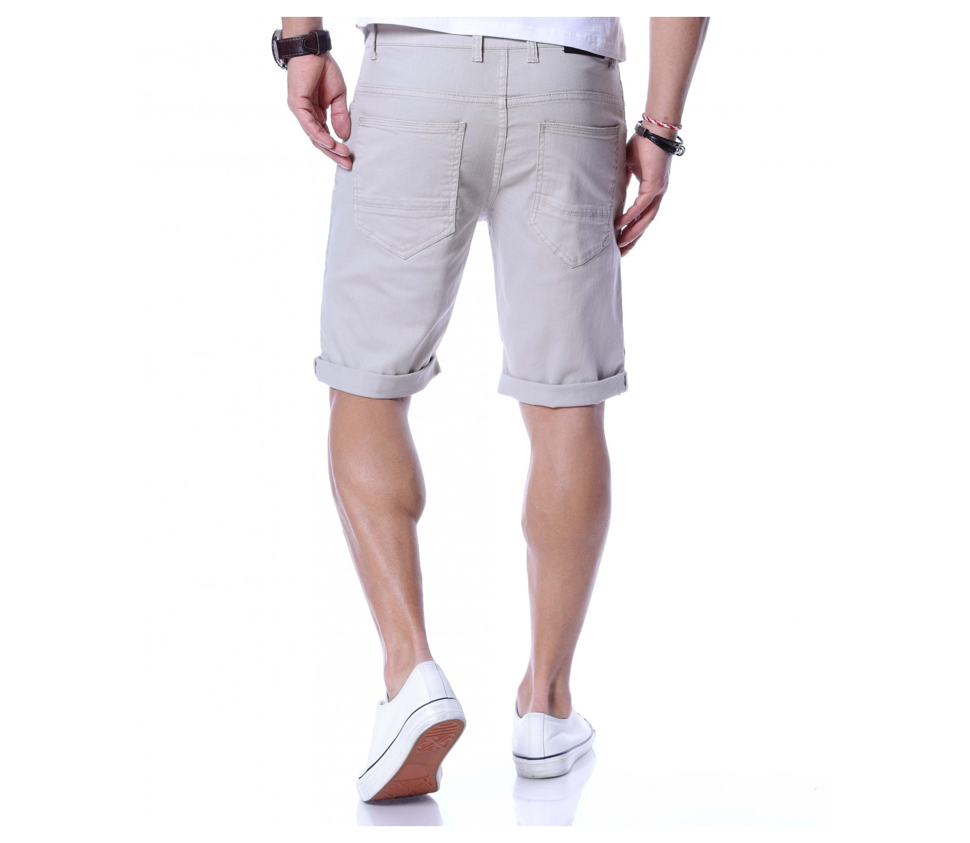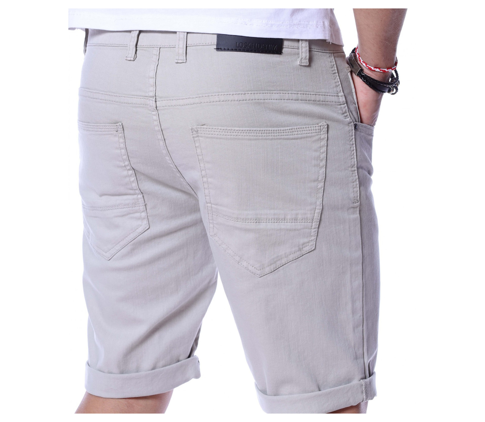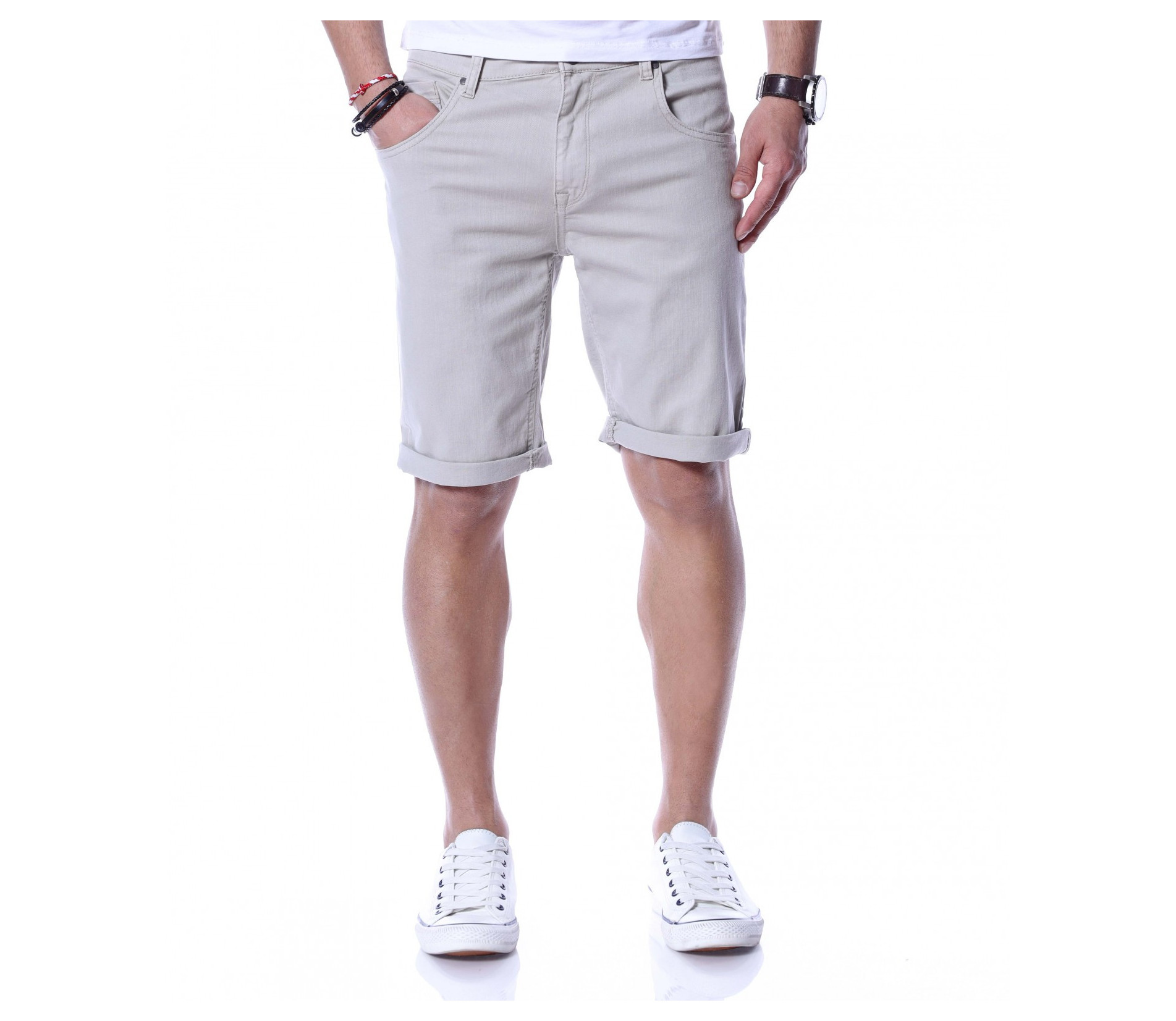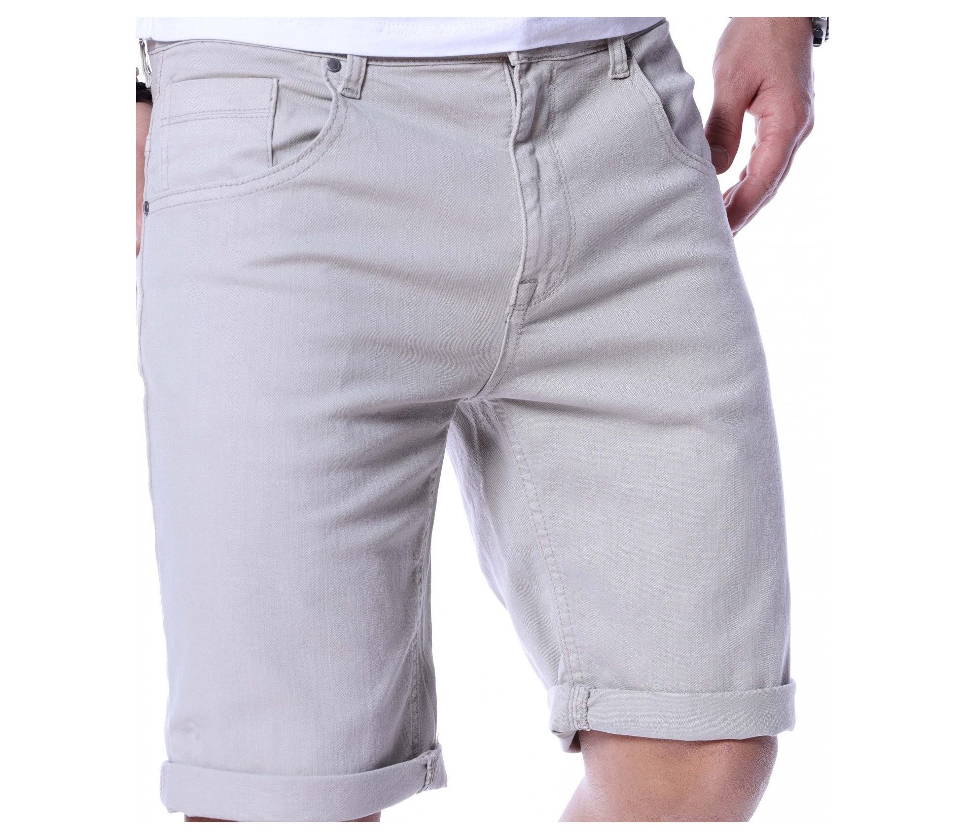 Искате да изглеждате стилни, дори през топлите летни дни? Нашето предложение за вас е - едноцветни и изчистени от всякакви декорации къси дънкови панталони. Кройката приляга на тялото, а благодарение на комбинацията от памучна материя и еластант ще имате свобода на движение и комфорт на тялото едновременно. Моделът разполага със стандартните два джоба в предната част и два в задната. Закопчаването е с цип и копче, а като за финал е добавен типичен подгъв на краят на 3/4-тият крачол. Комбинирайте със свежа тениска и кецове.