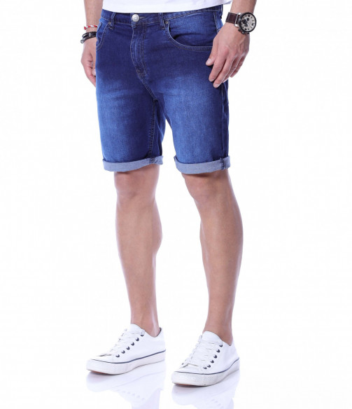 През летните дни във всеки гардероб е нужен един модел къси дънки. Представяме ви един семпъл и изчистен от декорации модел - къси дънкови панталони. В предната част забелязваме частично изсветляване на бедрото. Кройката е по тялото, но същевременно материята от памук и еластант предоставя свобода на движение. Добавени са стандартните четири джоба - два отпред и два отзад. Закопчаването се състои от цип и метално копче. Комбинирайте с удобни кецове и тениска, както и подходящи аксесоари.