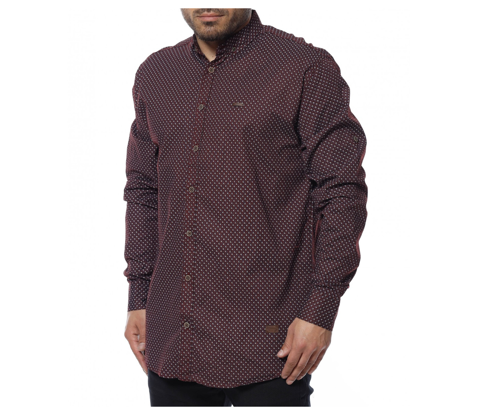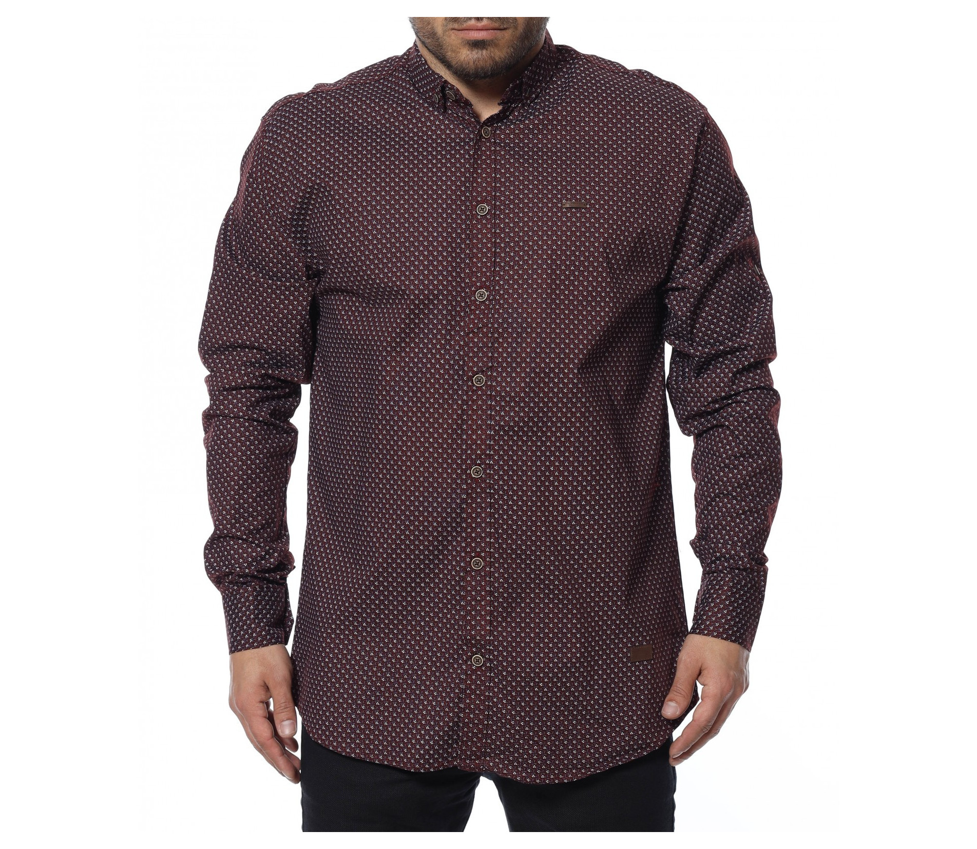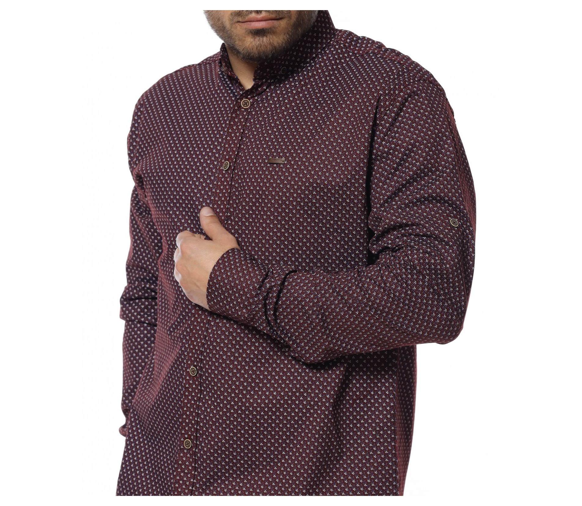 Неизменна част от всеки мъжки гардероб са ризите. Представяме ви официална риза в oversize размер и дълъг ръкав. Закопчаването се състои в копчета, които са позиционирани и в горната част на ръкава, за прилежно подгъване при нужда. Кройката се отличава с достатъчна свобода, а комбинацията от памук и еластант, прави моделът изключително комфортен и удобен. В предната част е позиционирана миниатюрна емлема, а десенът е нестандартен. Създайте вашият стилен имидж като комбинирате с подходящи дънки, панталони и обувки.