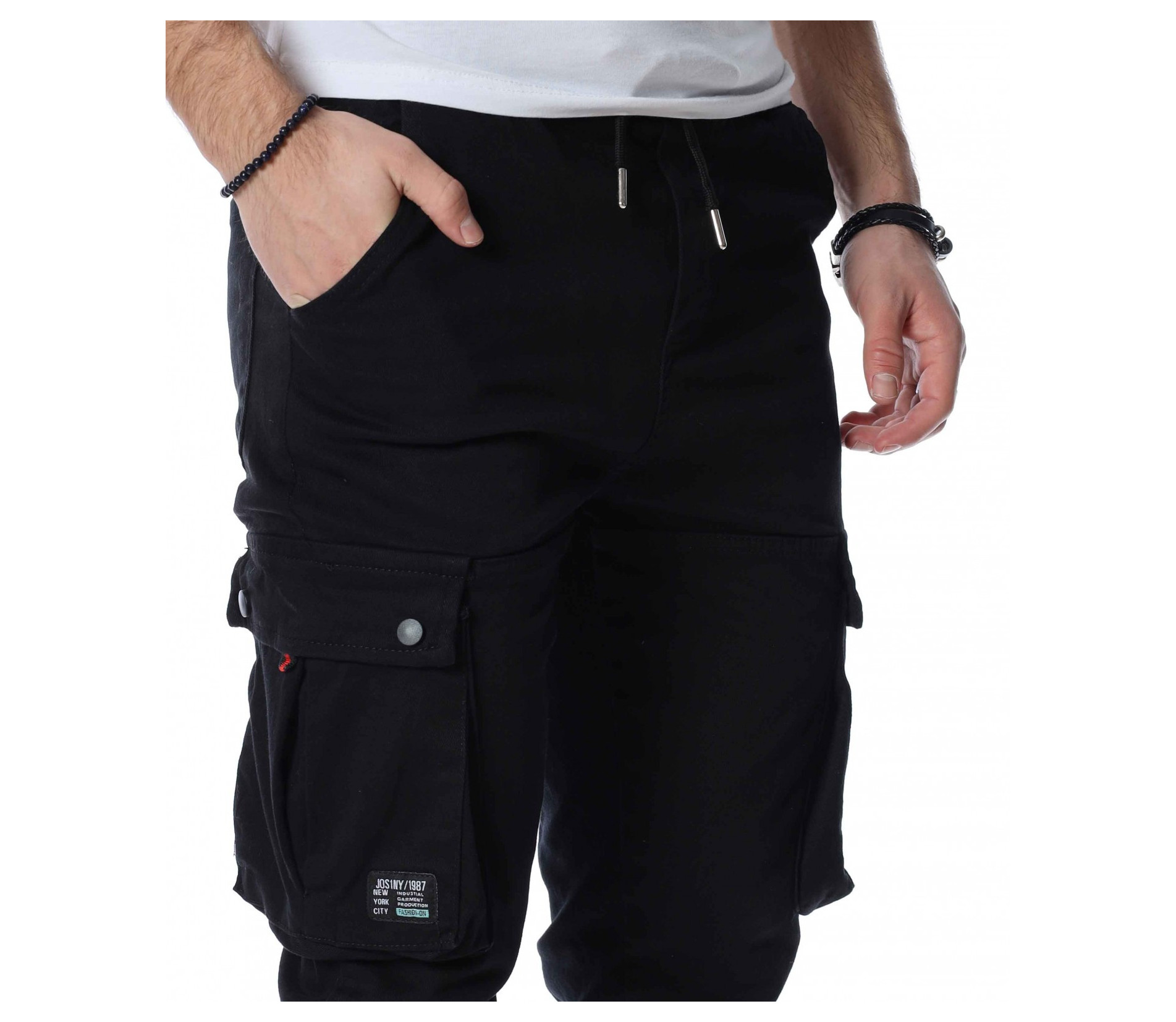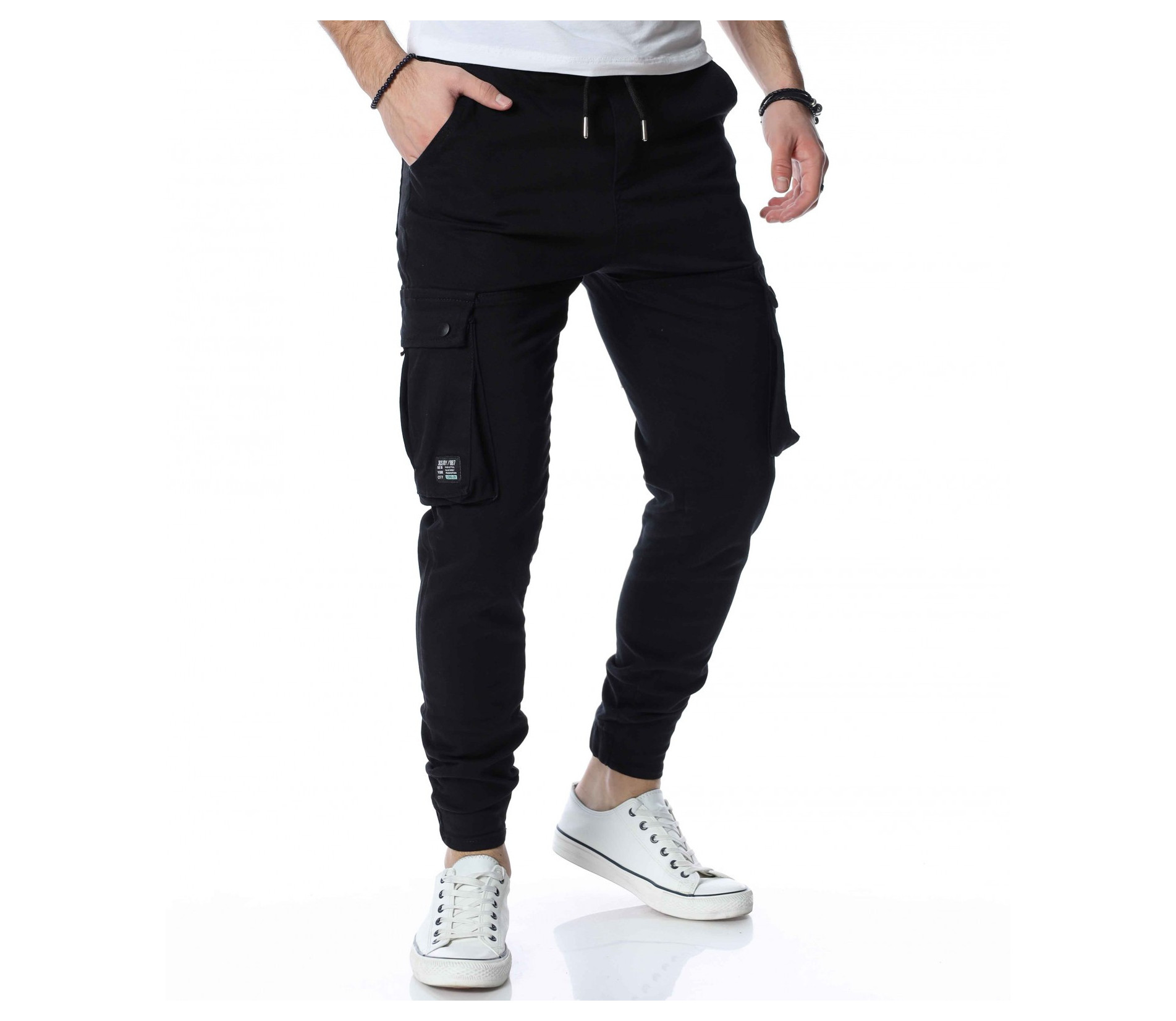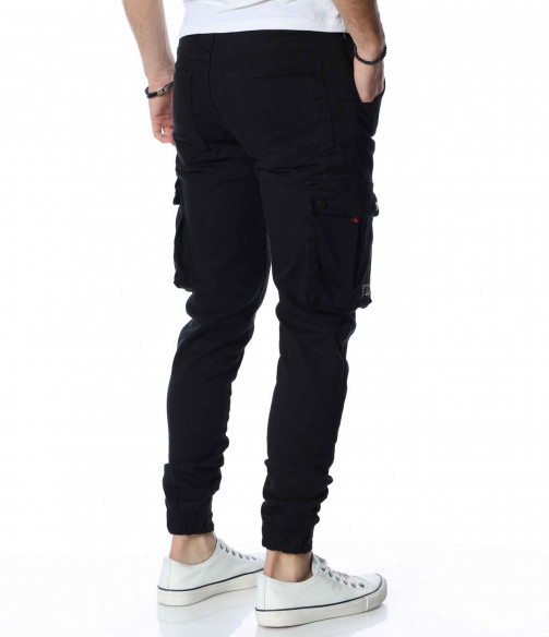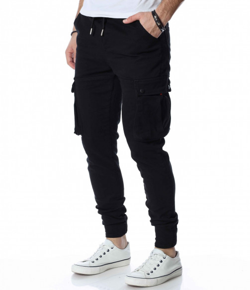 ОПИСАНИЕ НА ПРОДУКТА: Закачлив, удобен и силно забележим модел мъжки панталон, подходящ за ежедневен аутфит. В основата си е поверен изцяло на еднотонна основа, която може да откриете в три цветови аспекта, а именно светло сив, бежов и традиционен черен. Кройката е skinny fit, придавайки значителен  комфорт на тялото Ви. Талията е с комфортен ластик и връзка и ви дава възможност за регулиране по ваше желание. Както винаги и тук джобовете са основен акцент. Разделени са на три групи, като първата е тази при крачолите, където са поставени два релефни такива, с допълнение от малки капачета. Вторите се намират малко по-нагоре, с семпла италианска форма. Последните два джоба, които впечатляват са на гърба, като са подбрани в типична за деним панталоните форма, а именно голяма външна, с лек заострен край.