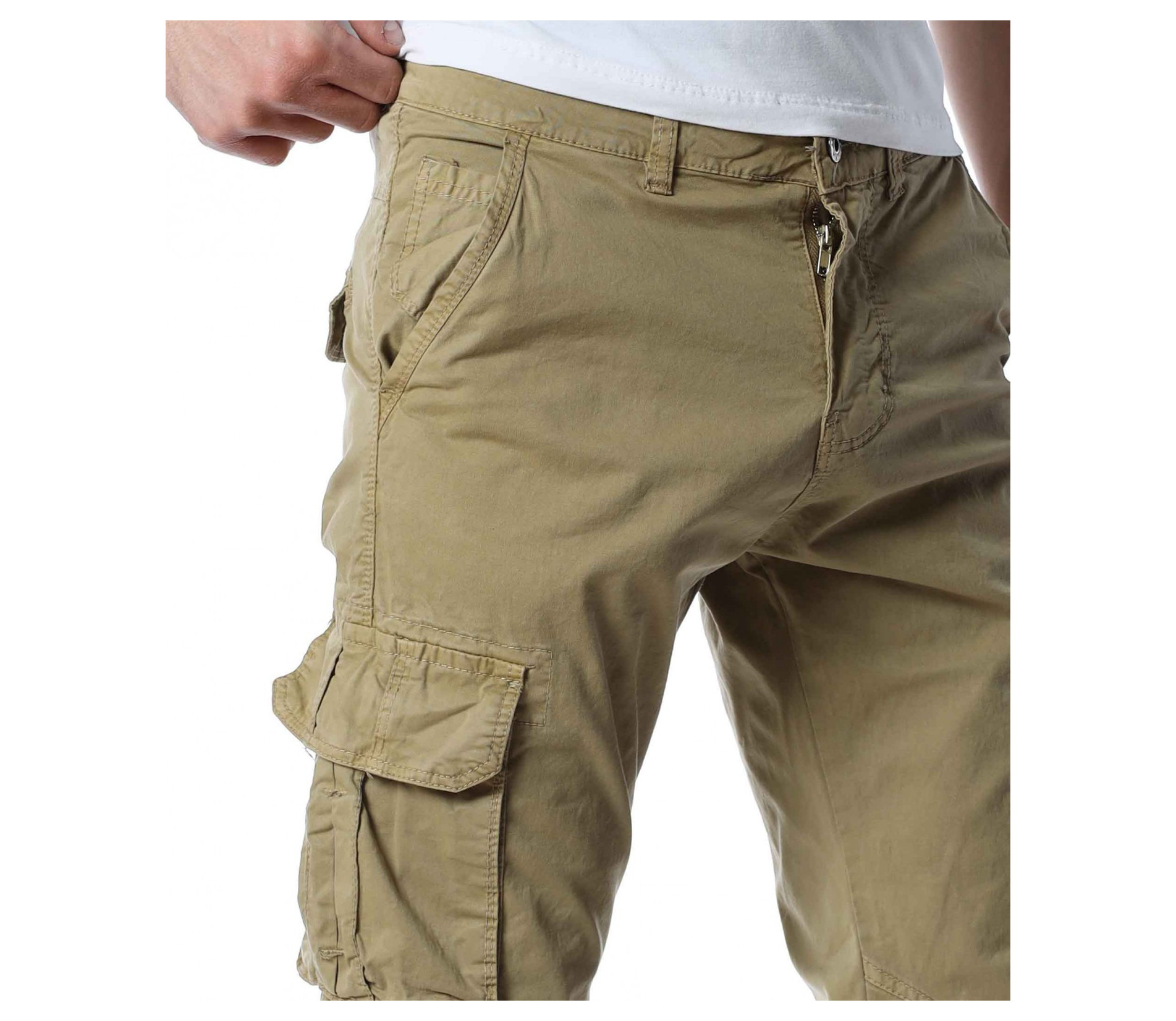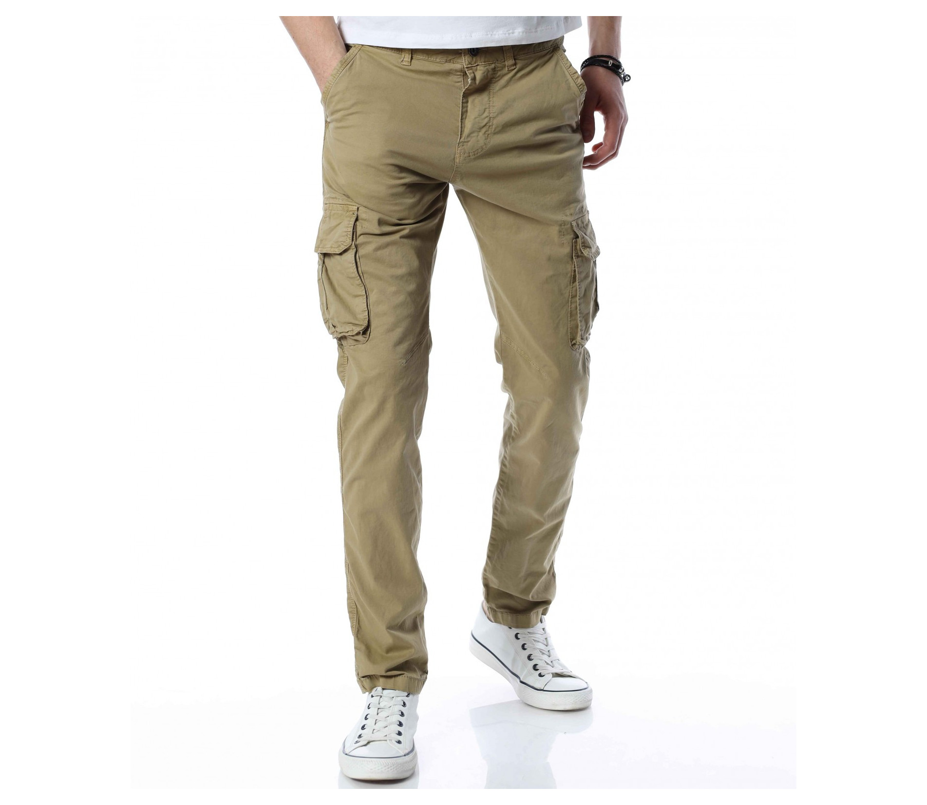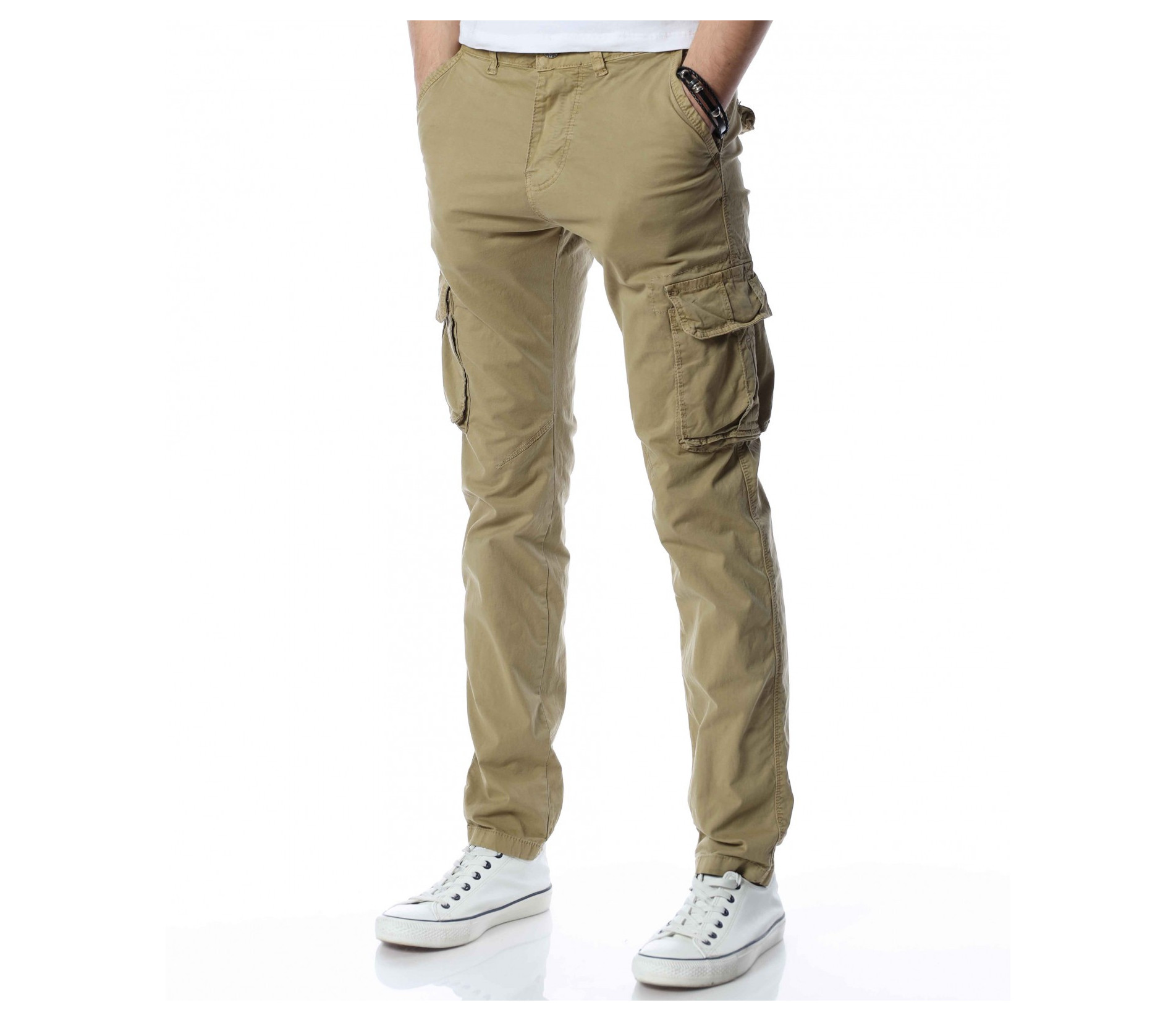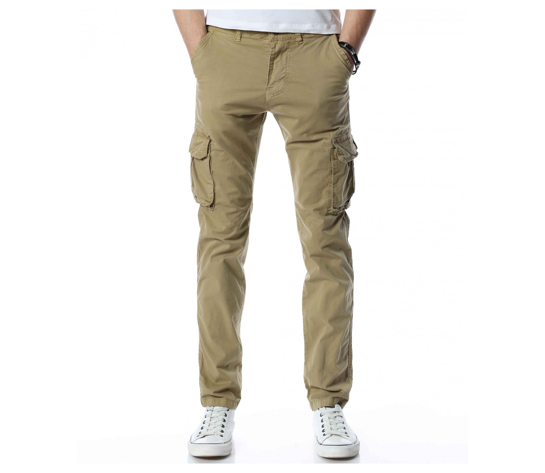 ОПИСАНИЕ НА ПРОДУКТА: В ежедневието всеки един от нас търси удобство, към което да добави и нотка стил, който да отговаря на имиджа му. Предлагаме Ви един модел мъжки спортен панталон, подходящ за Вас. В основата си той е изработен от удобна памучна материя, която го прави изключително подходящ за пролетния сезон. Разбира се, толкова специален го правят открояващите са карго джобовете. Страничните попълнения успяват да превърнат мъжкия панталон от незабележим в стилен наситен със свежест и актуалност модел, който се вписва перфектно в стайлинга Ви. Вталената линия на моделът подчертава тялото и му придава удобството на което знаем че държите. Закопчаването му се състои от едно главно копче и скрит под маншет метален цип. Подберете точния цвят за себе си и се сдобийте с най-желаният модел писък за 2022 година.