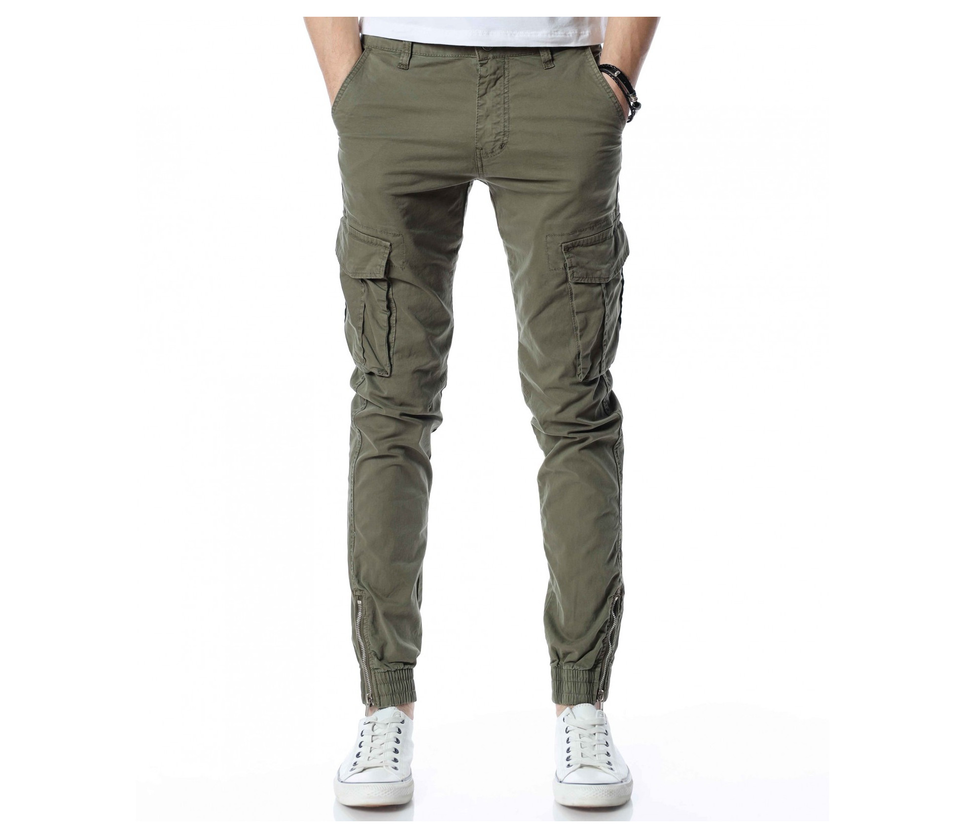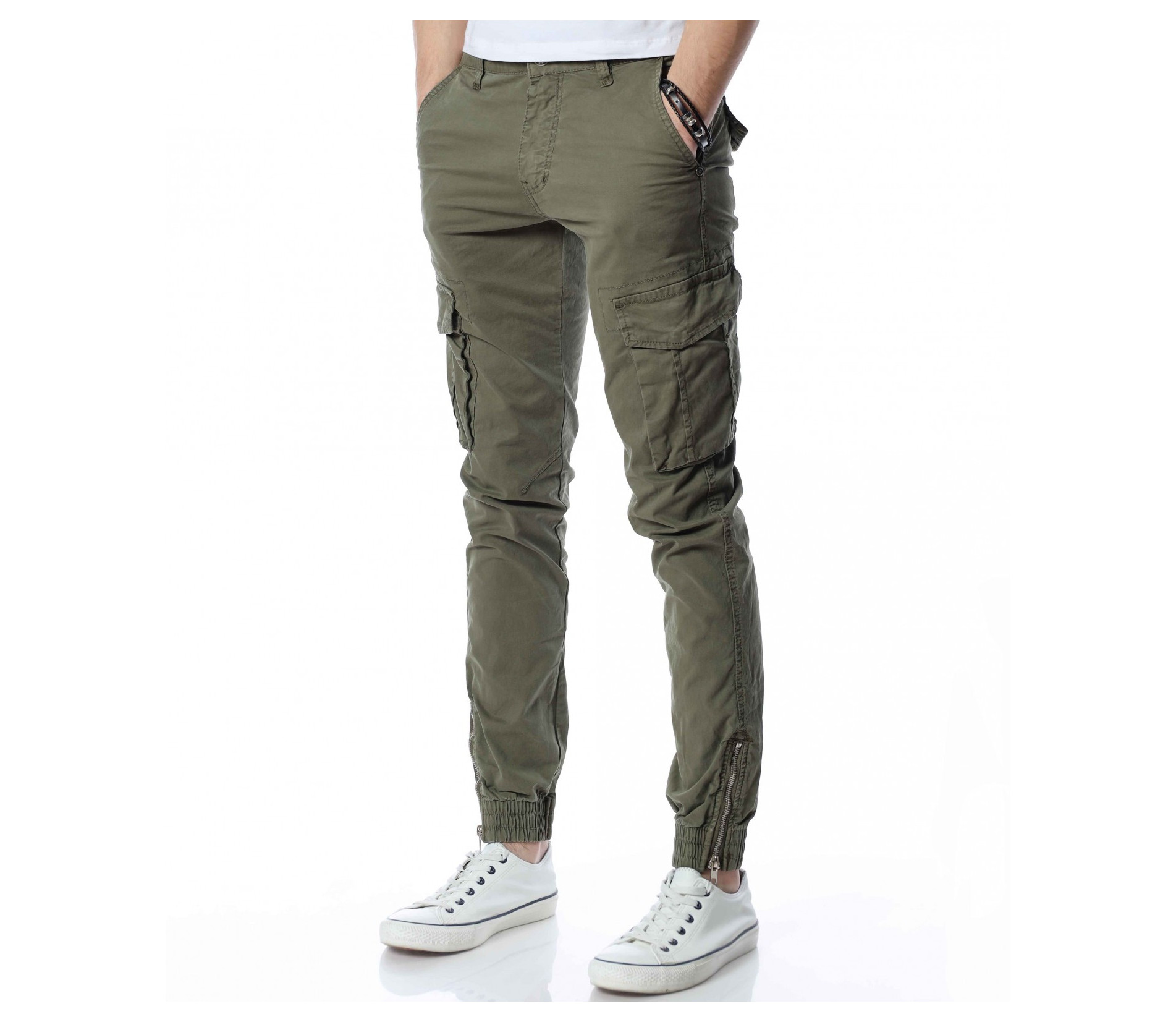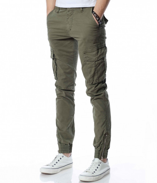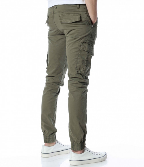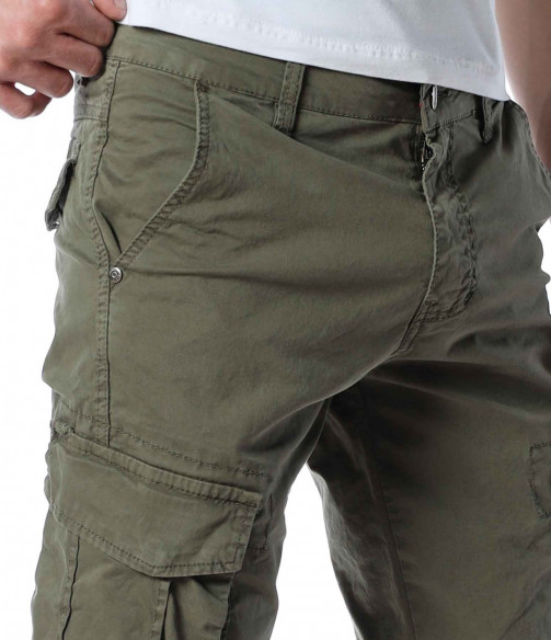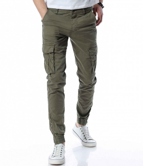 ОПИСАНИЕ НА ПРОДУКТА: Класиката в жанра в модните среди е олицетворение на онези модел дрехи, които освен че са били, са и ще бъдат тотален хит през годините, са и тези дрехи които придават максимален комфорт на тялото, без да правят компромис с външния Ви вид. Именно такъв е този модел мъжки спортен панталон, допълнен от ефектни карго джобове. Тук декорацията е изградена от по-прибрани и ненатрапчиви външни джобове, допълнени от практични капачета, закопчаващи се с капси. Този мотив е пренесен и към задната част, където са разположени по дискретни такива. Линията на мъжкия панталон следва тялото, като при глезена завършва с широк ластик и цип, стесняващи допълнително крачола. Перфектна изработка, облечена в класно излъчване, което може да подберете от няколко цветови нюанса, кой от кой по-атрактивни.