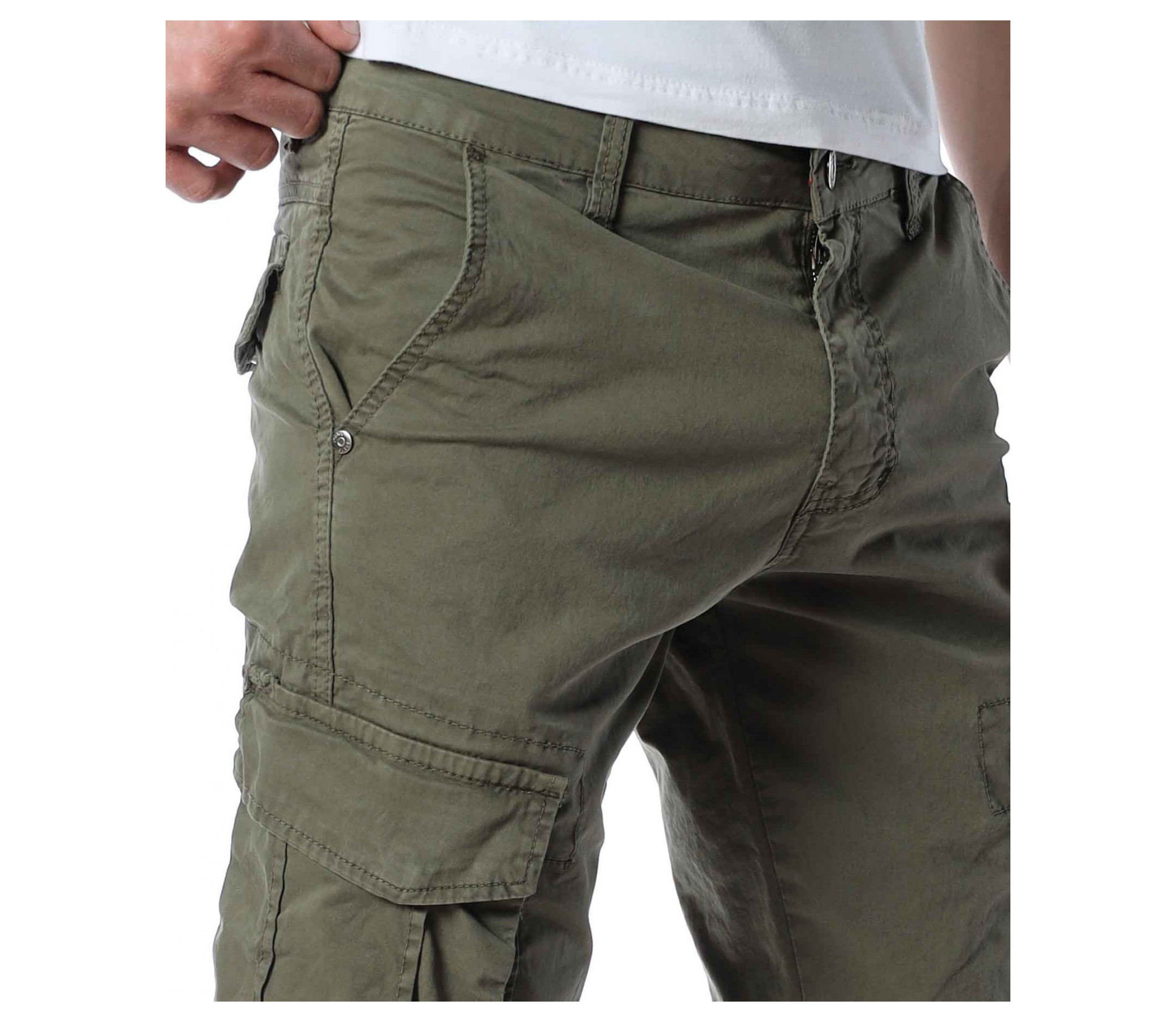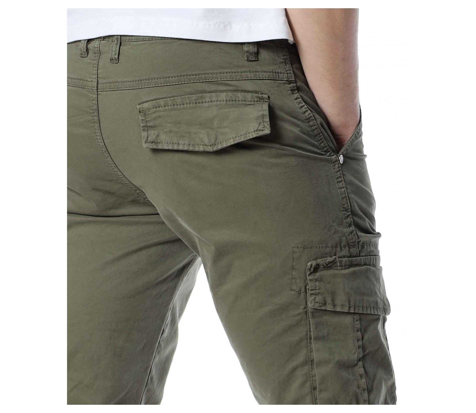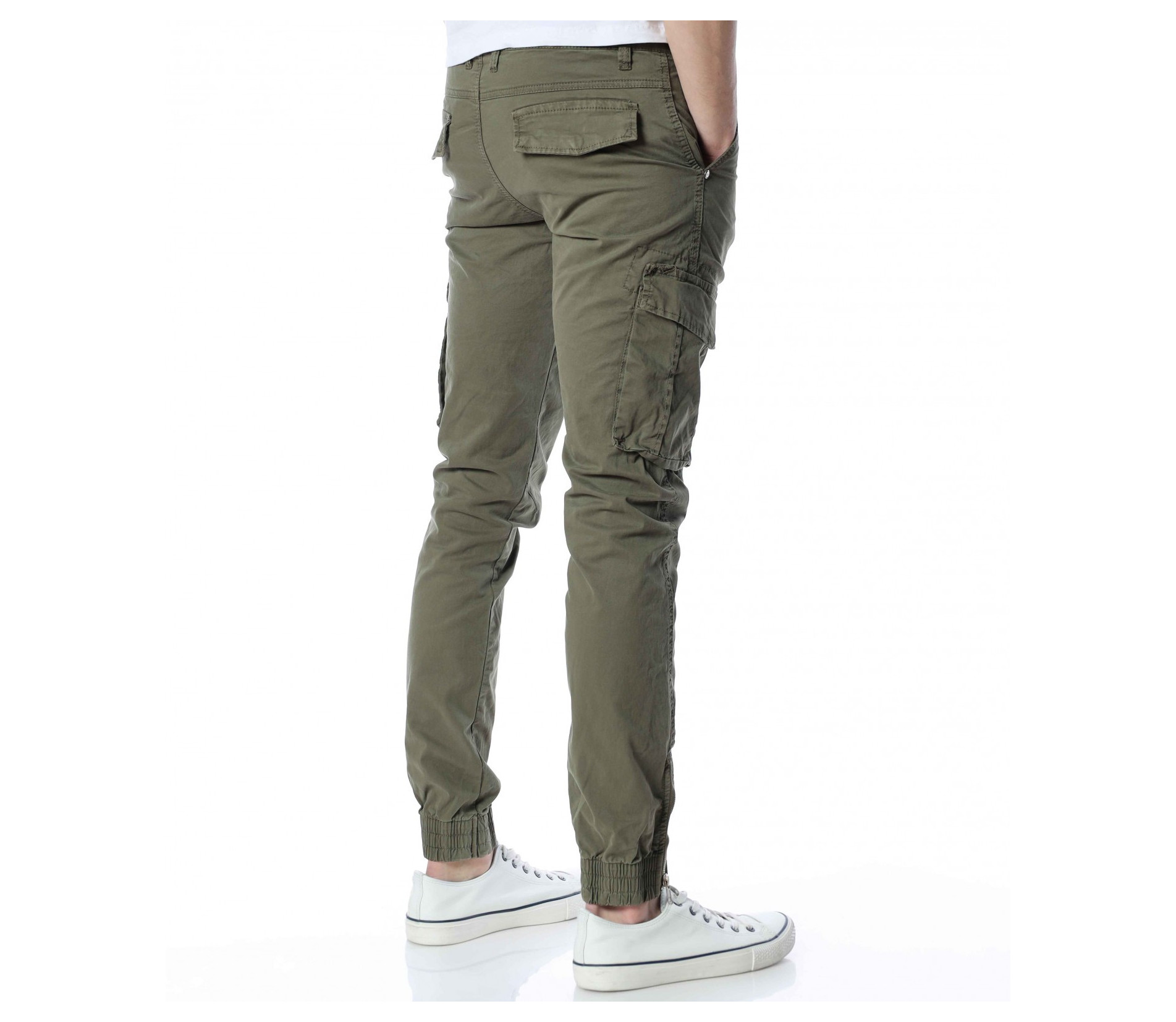 ОПИСАНИЕ НА ПРОДУКТА: Класиката в жанра в модните среди е олицетворение на онези модел дрехи, които освен че са били, са и ще бъдат тотален хит през годините, са и тези дрехи които придават максимален комфорт на тялото, без да правят компромис с външния Ви вид. Именно такъв е този модел мъжки спортен панталон, допълнен от ефектни карго джобове. Тук декорацията е изградена от по-прибрани и ненатрапчиви външни джобове, допълнени от практични капачета, закопчаващи се с капси. Този мотив е пренесен и към задната част, където са разположени по дискретни такива. Линията на мъжкия панталон следва тялото, като при глезена завършва с широк ластик и цип, стесняващи допълнително крачола. Перфектна изработка, облечена в класно излъчване, което може да подберете от няколко цветови нюанса, кой от кой по-атрактивни.