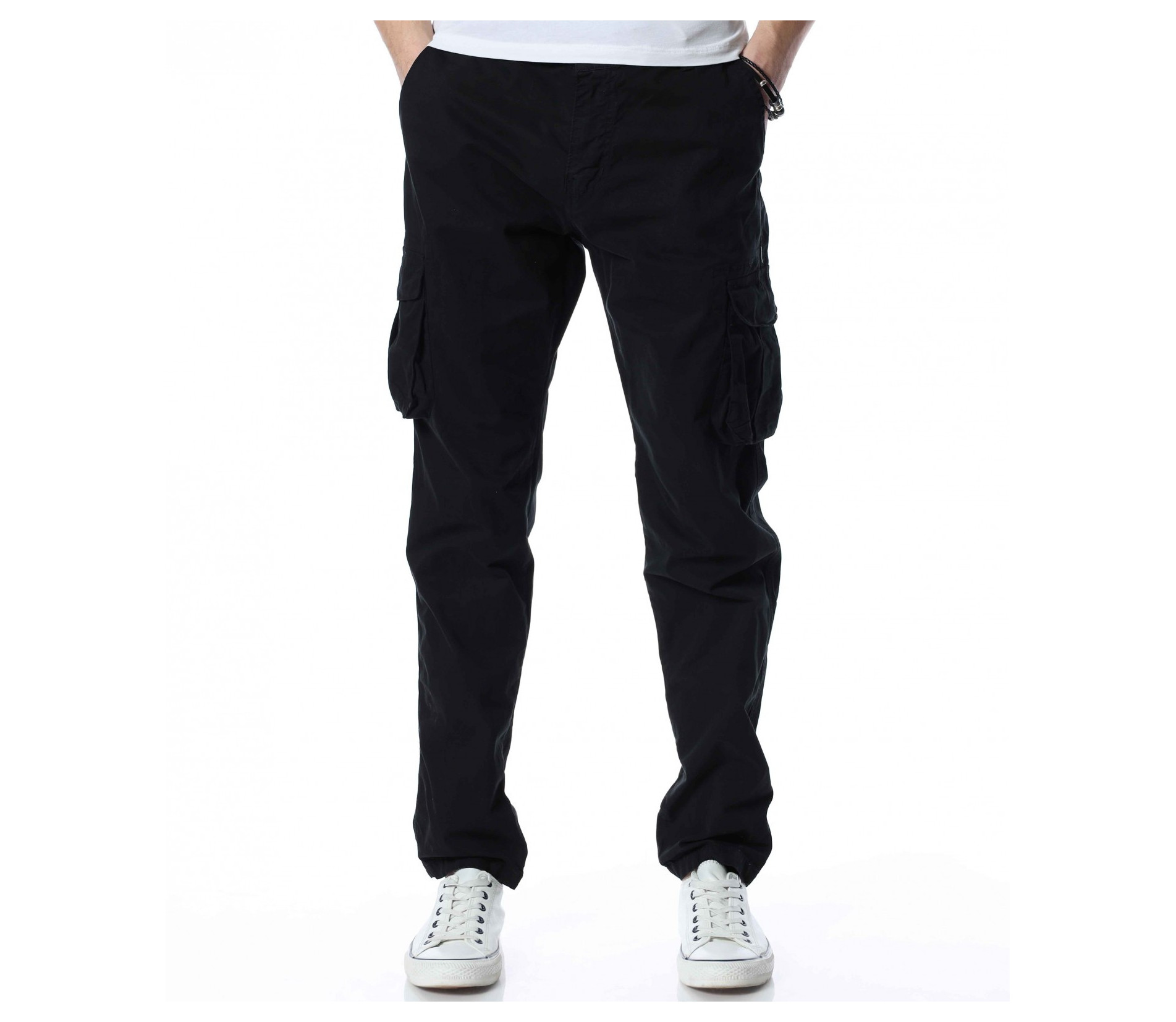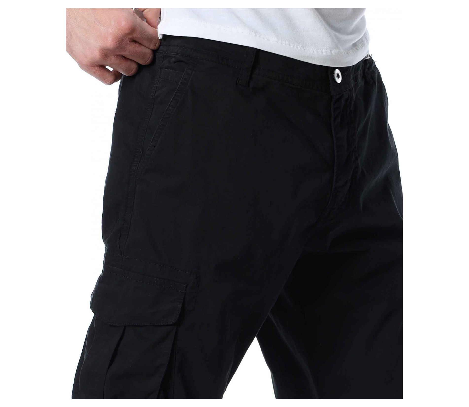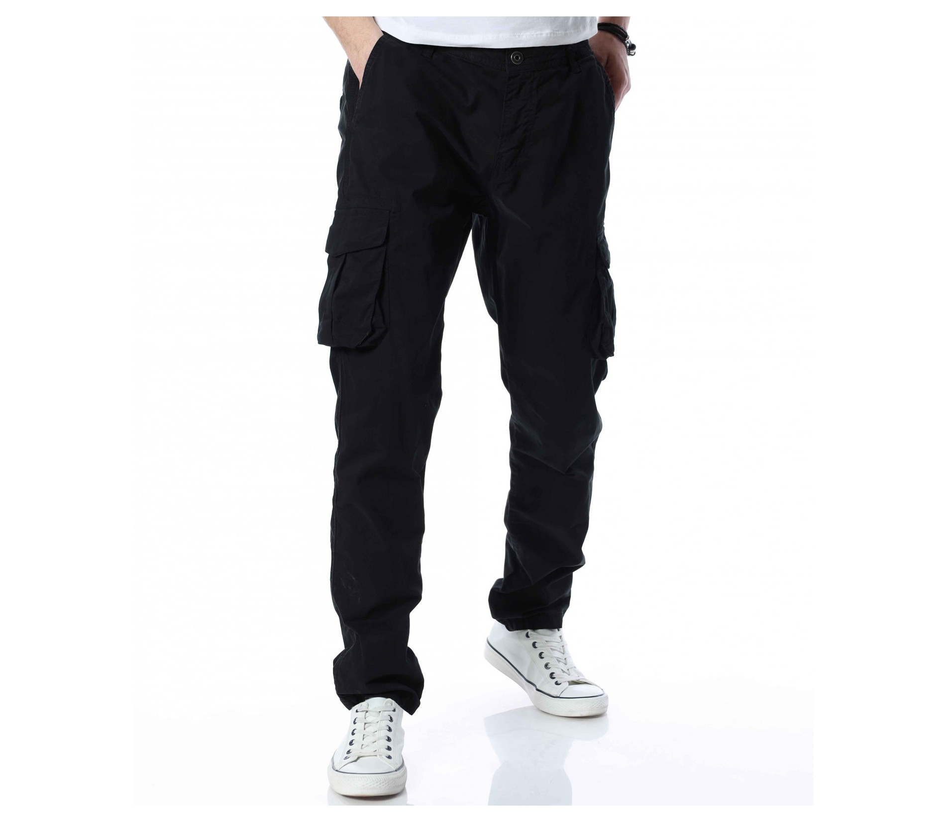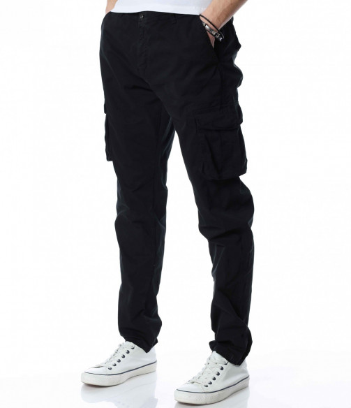 Описание на продукта: И през тази година отблеязваме бум на търсенето на карго панталон. Видно е, че удобството което предоставя този тип дреха, в съчетание с модерния casual дизайн, е отново част от  мъжкия имидж. За да подобрим и разнообразим гардеробът Ви, представяме един дизайн с лека модификация. Тук карго джобовете са разположени централно на крачолите, отново допълнени от деликатно капачета. На лице са и останалите класически части от този модел, като свободни крачоли, два предни и два задни джоба, както и закопчаване, състоящо се от цип и копчета. За избор, имате възможност между класическо черно и закачливо войнишко зелено, както и иновативно кафяво.
