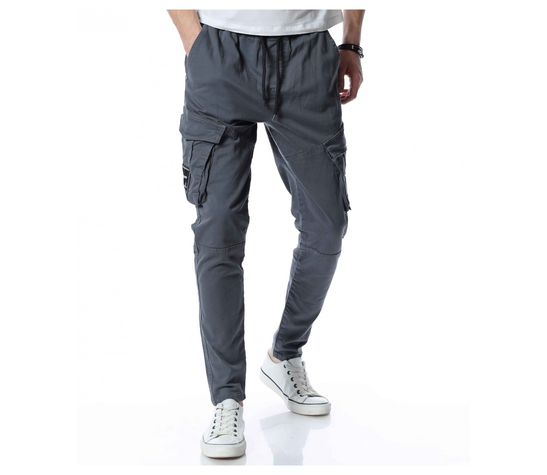 ОПИСАНИЕ НА ПРОДУКТА: В ежедневието всеки един от нас търси удобство, към което да добави и нотка стил, който да отговаря на имиджа му. Предлагаме Ви един модел мъжки спортен панталон, подходящ за Вас. В основата си той е изработен от удобна памучна материя, чиято плътност го прави изключително подходящ за всеки сезон. Разбира се, толкова специален го правят открояващите са карго джобовете. Страничните попълнения успяват да превърнат мъжкия панталон от незабележим в стилен наситен със свежест и актуалност модел, който се вписва перфектно в стайлинга Ви. Вталената линия на моделът подчертава тялото и му придава удобството на което знаем че държите. Коланът е с ластик и връзки за лесна корекция на ширината. Комбинирайте с тениска и грейка или тънко яке и се насладете на удобство цял ден.