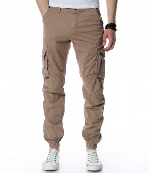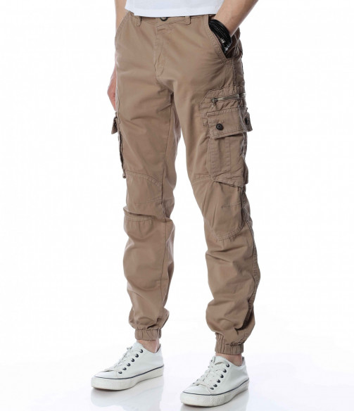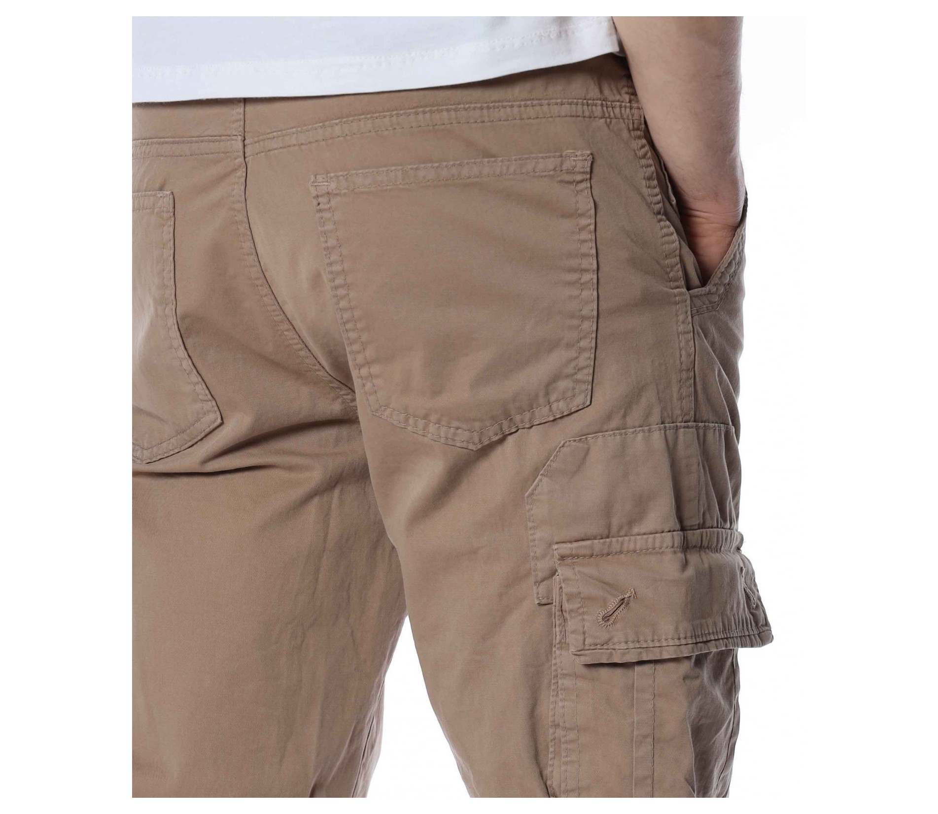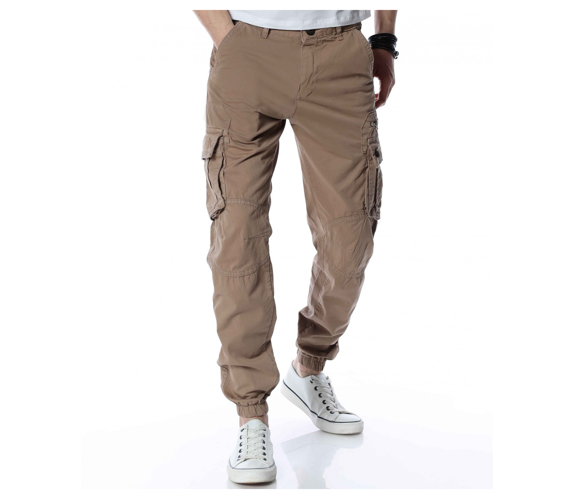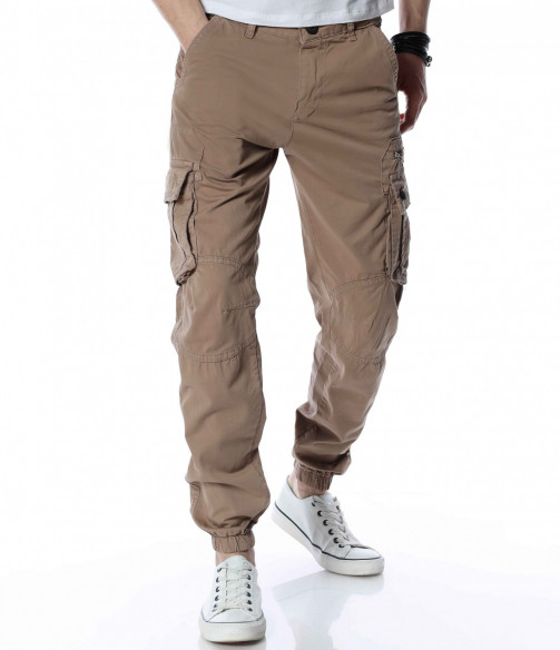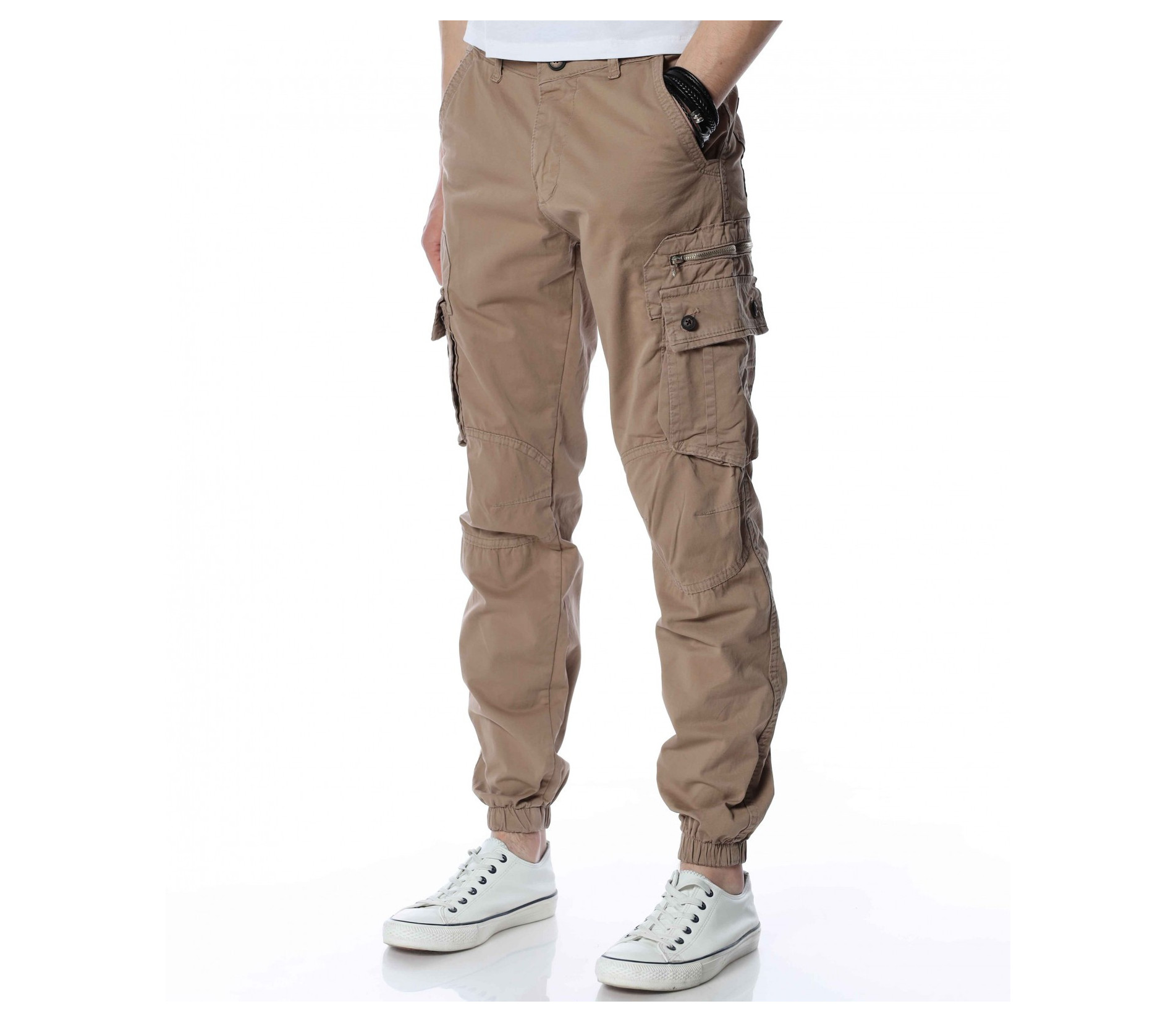 ОПИСАНИЕ НА ПРОДУКТА: Мъжки спортен панталон с карго джобове, изграден изцяло в street излъчване. Този модел създава освен небрежно излъчване, но и удобство, желано и нужно през всички дни от годината. Като основен мотив, разбира се, са джобовете във всичките им форми. В страничната част на краката са разположени два големи, допълнени от капачета, покриващи ги почти до средата и джоб с цип над единия основен такъв. В горната част са подбрани по-семпли такива, а именно вертикални, тип италиански. В задната част откриваме джобове с декоративен аспект, които също са допълнени от капачета, така че да създадат нужния акцент. В основата на талията е разположено и закопчаването, което се състои от метално копче и скрит под маншет цип, с което поставяме и последния щрих. Бъдете прецизни в избора на дрехи, съчетавайки актуалното с удобното.