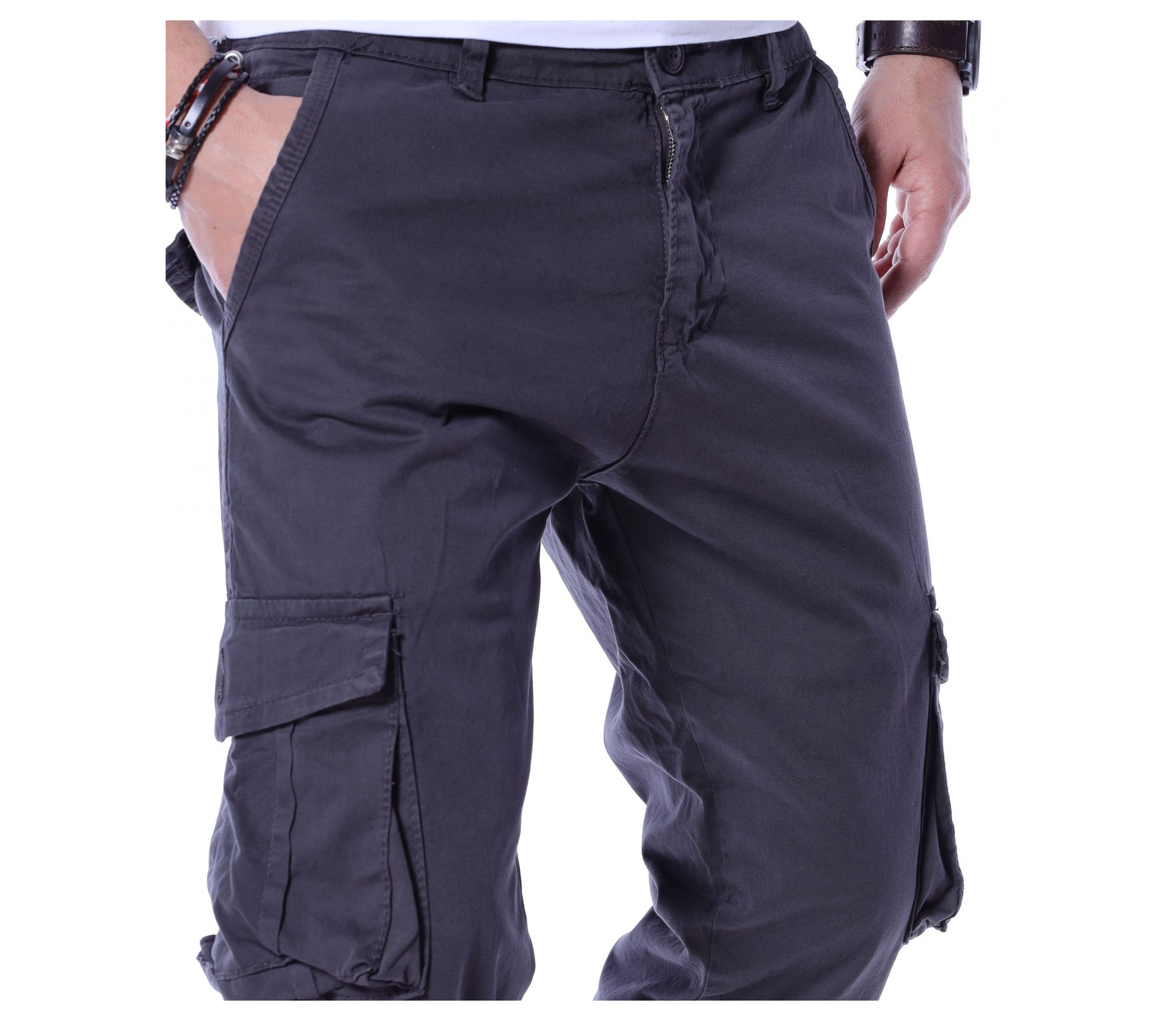 Карго панталон със странични джобове 13464 - Сив