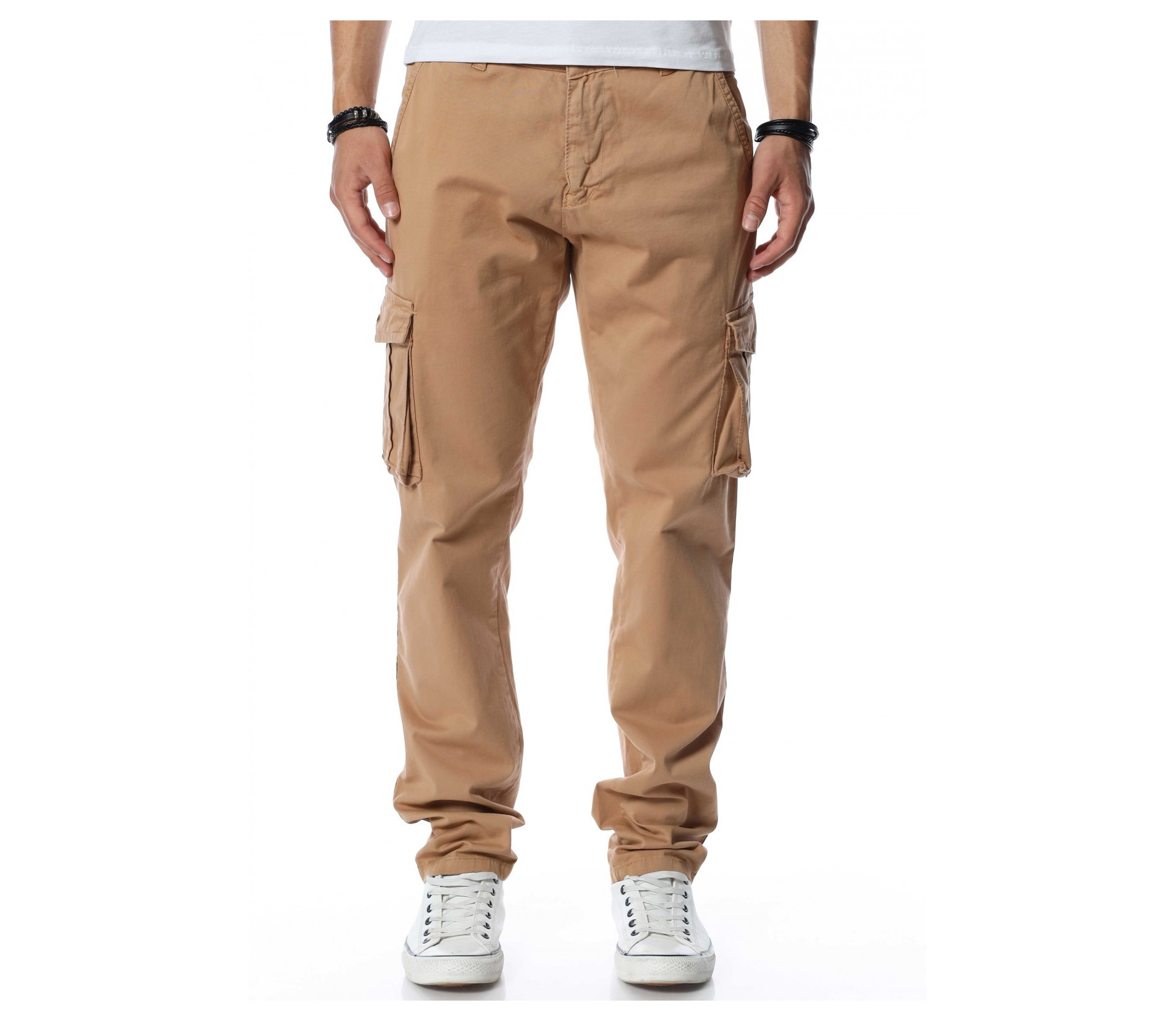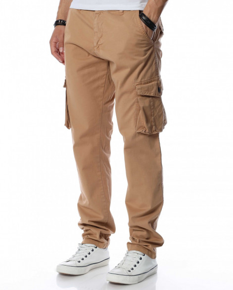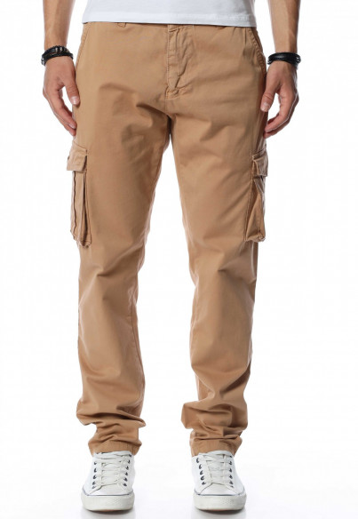 Карго панталон със странични джобове 13464 - Бежов