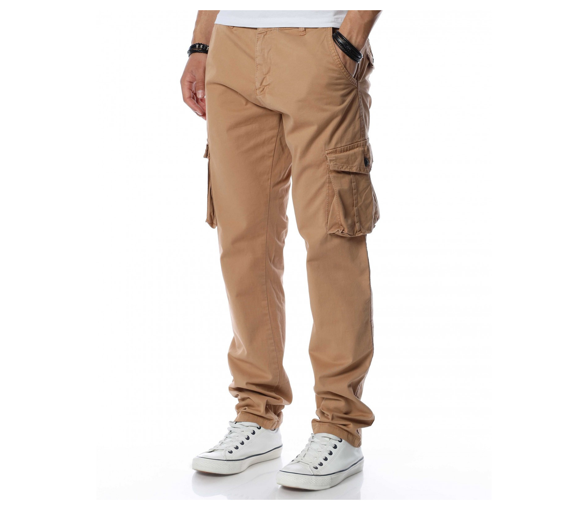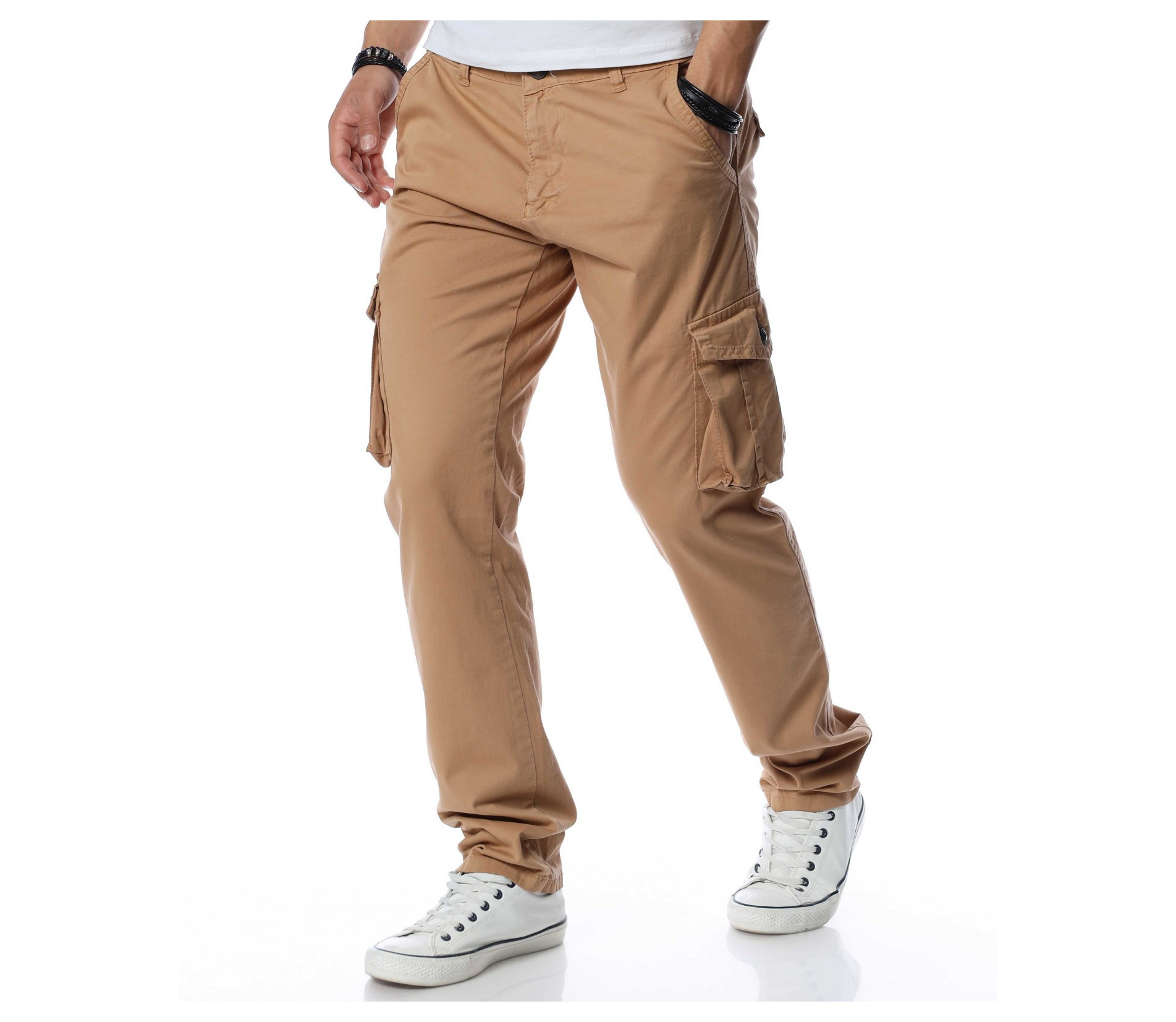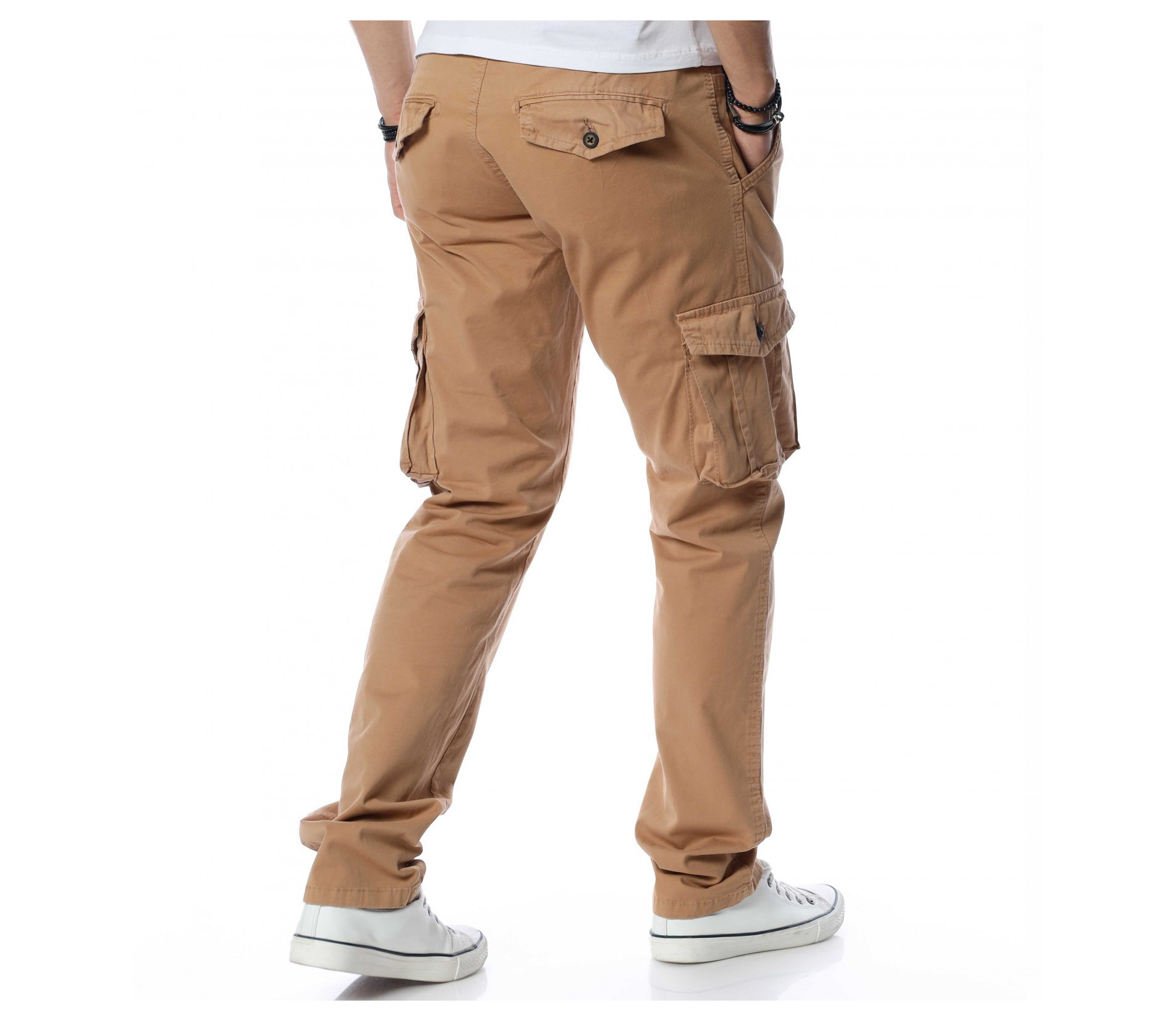 Описание на продукта: Едноцветен карго панталон с джобове отстрани, два стандартни отпред и два с капачета в задната част. На талията са позиционирани гайки, за да може по-лесно да добавите колан по ваше желание. Кройката се отличава с достатъчно свобода, а меката материя осигурява незаменим комфорт на тялото. В зависимост от вашите стилови предпочитания, дизайнът позволява широко приложение и може да комбинирате с подходящи обувки, тениски, а защо не и нещо по-официално?