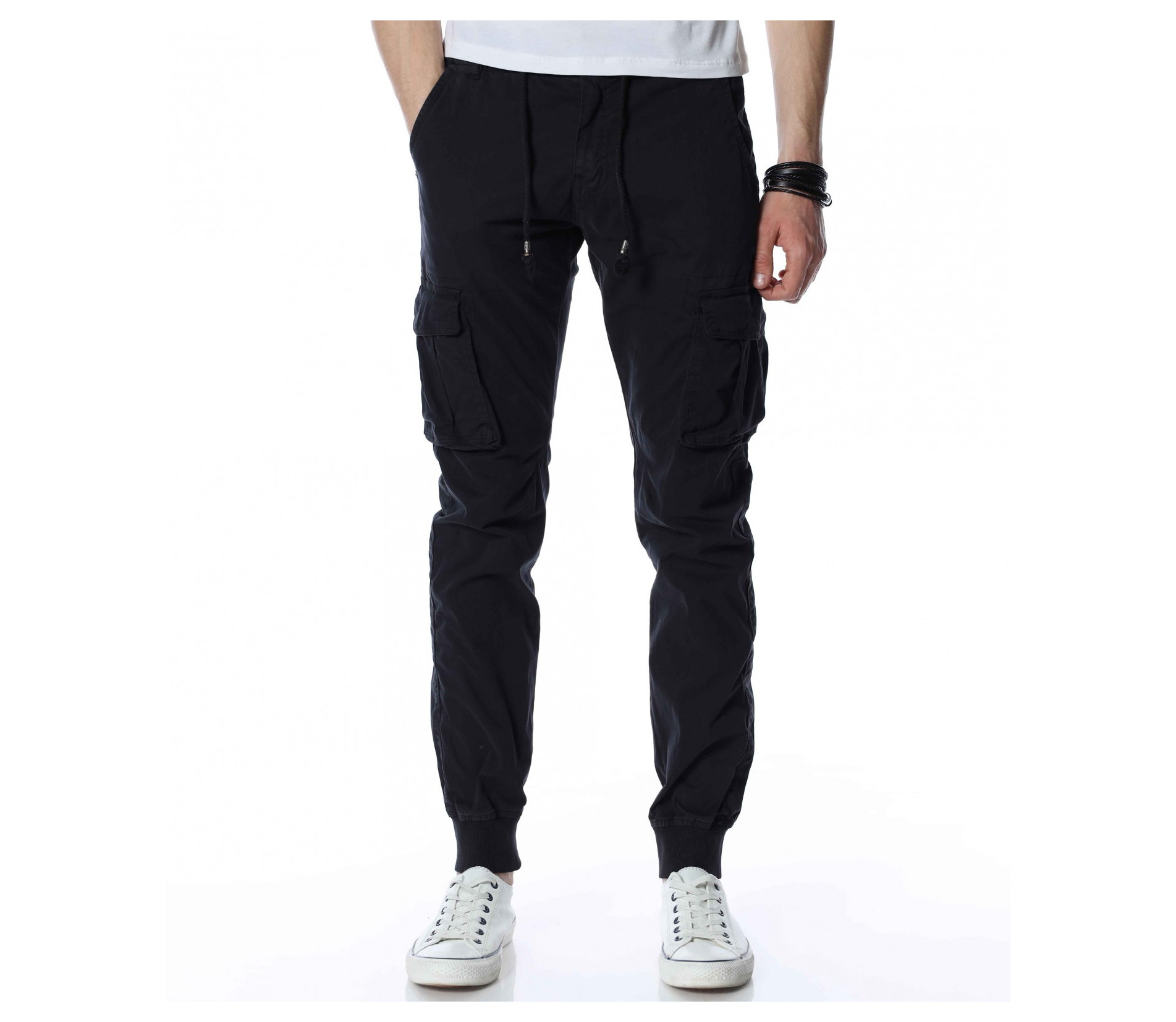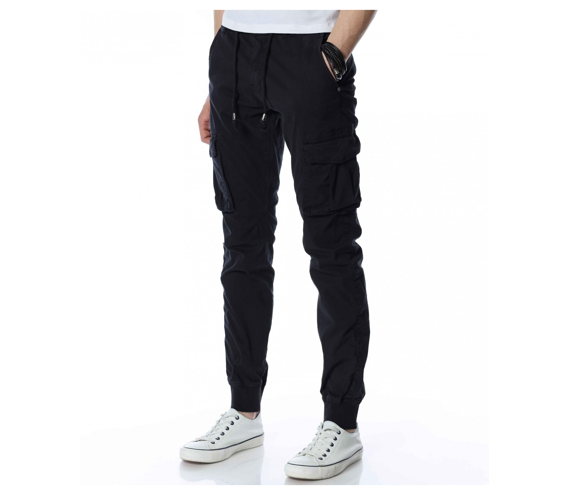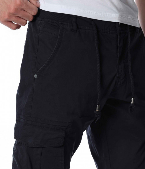 ОПИСАНИЕ НА ПРОДУКТА: Мъжки спортен панталон с карго джобове, изграден изцяло в street излъчване. Този модел създава освен небрежно излъчване, но и удобство, желано и нужно през всички дни от годината. Като основен мотив, разбира се, са джобовете във всичките им форми. В страничната част на краката са разположени два големи, допълнени от капачета, покриващи ги почти до средата. В горната част са подбрани по-семпли такива, а именно вертикални, тип италиански. В задната част откриваме джобове с декоративен аспект, които също са допълнени от капачета, така че да създадат нужния акцент. В основата на талията е разположено и закопчаването, което се състои от метално копче и скрит под маншет цип, с което поставяме и последния щрих. Бъдете прецизни в избора на дрехи, съчетавайки актуалното с удобното.