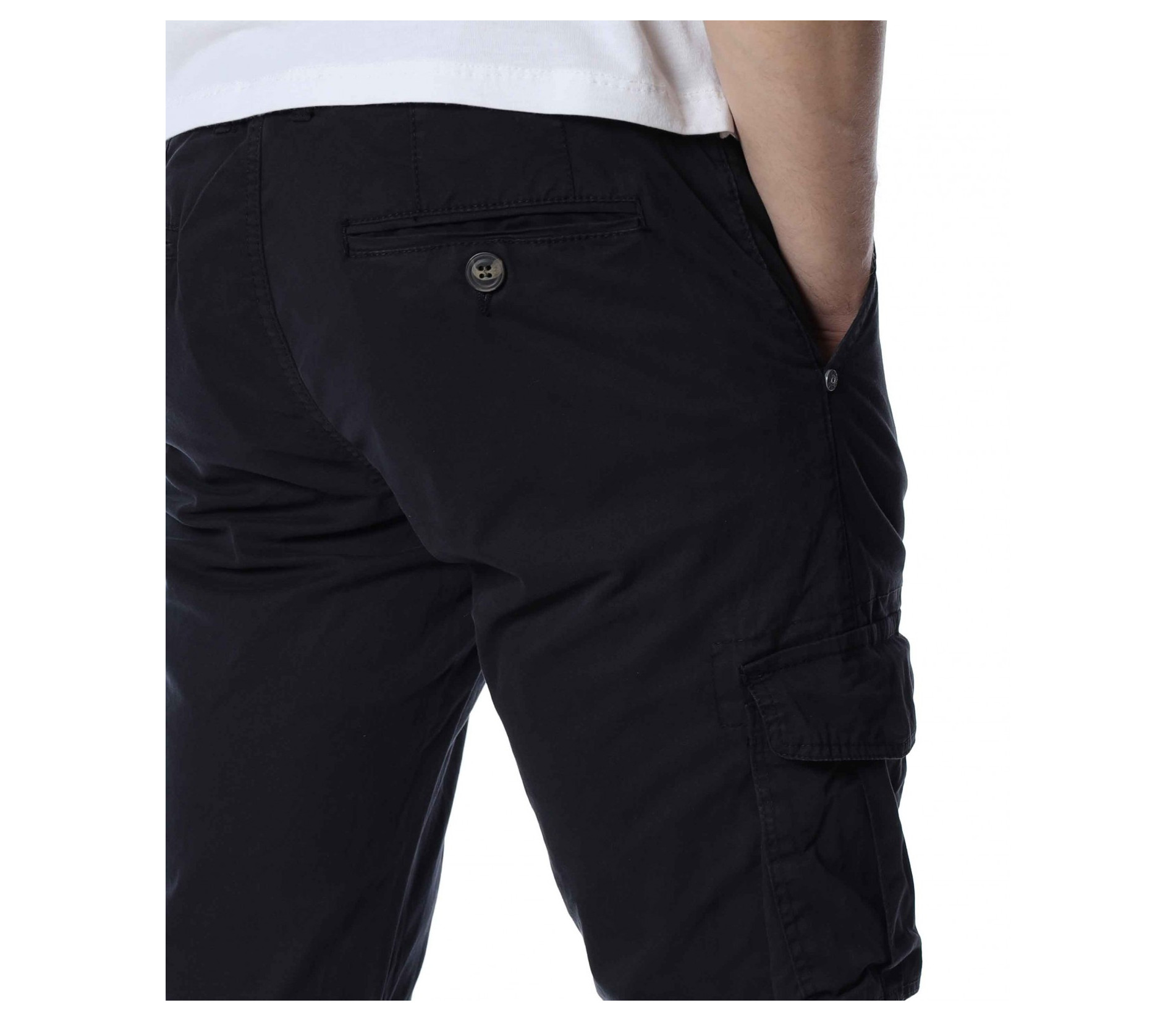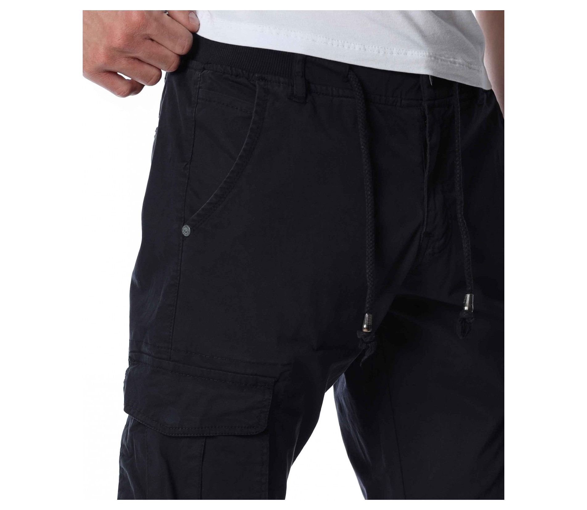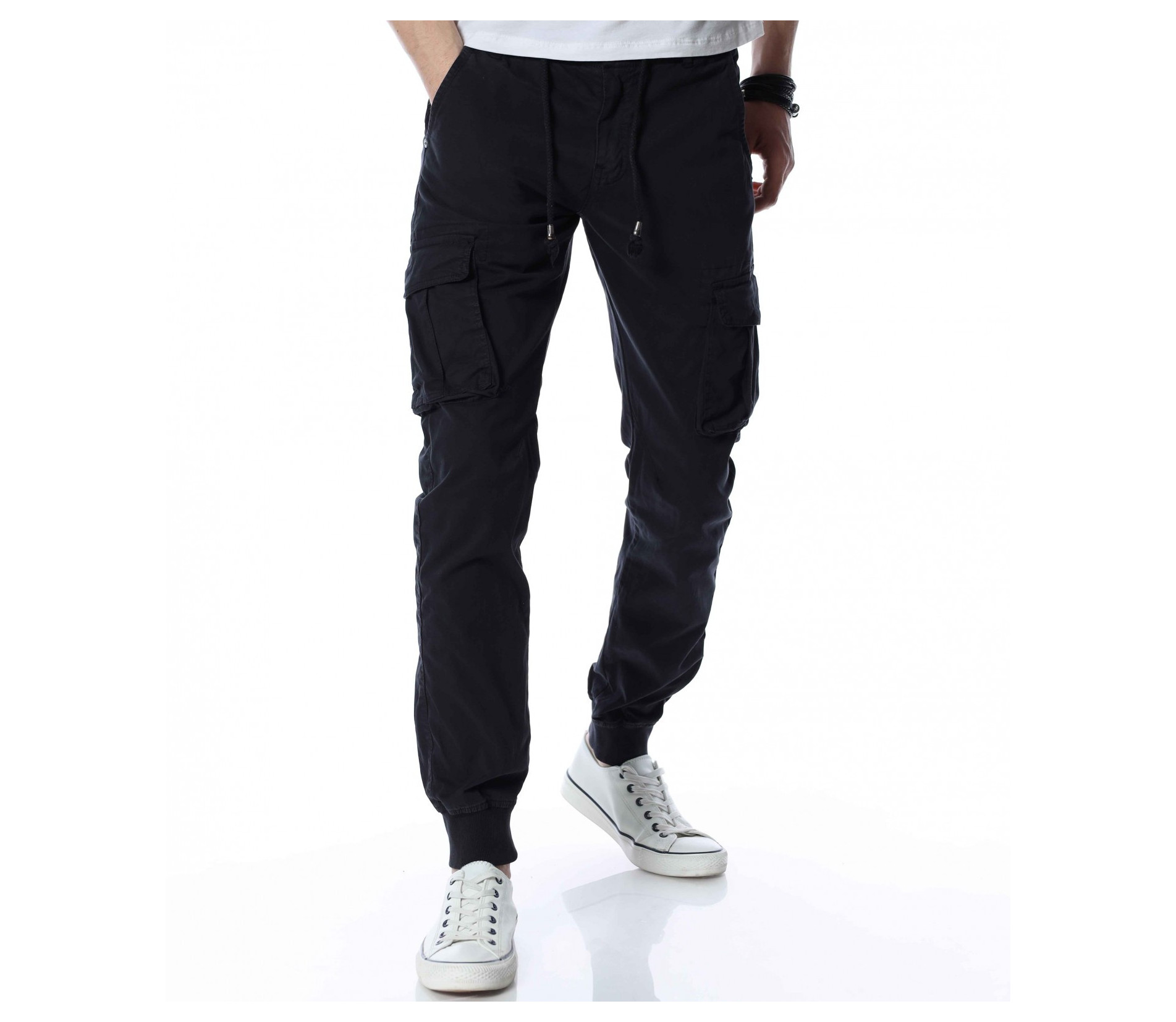 ОПИСАНИЕ НА ПРОДУКТА: Мъжки спортен панталон с карго джобове, изграден изцяло в street излъчване. Този модел създава освен небрежно излъчване, но и удобство, желано и нужно през всички дни от годината. Като основен мотив, разбира се, са джобовете във всичките им форми. В страничната част на краката са разположени два големи, допълнени от капачета, покриващи ги почти до средата. В горната част са подбрани по-семпли такива, а именно вертикални, тип италиански. В задната част откриваме джобове с декоративен аспект, които също са допълнени от капачета, така че да създадат нужния акцент. В основата на талията е разположено и закопчаването, което се състои от метално копче и скрит под маншет цип, с което поставяме и последния щрих. Бъдете прецизни в избора на дрехи, съчетавайки актуалното с удобното.