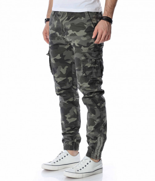 ОПИСАНИЕ НА ПРОДУКТА: Екстравагантни мъжки панталон от камуфлажен плат. Любимият на всички милитъри стил е силно изразен в този мъжки панталон в лицето на две разновидности, всяка една от които впечатлява по еднакво атрактивен начин. Ако си фен на по-различните модели, то този е точно за теб. Кройката му е малко по-свободна, като това се изразява чрез правите крачоли, широко падащи надолу. Дължината им е до коляното, а отстрани имат големи спортни джобове с капаци. В предната горна част има два джоба, тип италиански, а задните джобове отново са два, но с друга форма и се закопчават с копче, като се сформира отново капак. Основното закопчаване е с цип под кант и метално копче. Експериментирай този сезон със стила и заложи на топ десените за пролет-лято 2022 г.