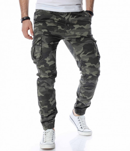 Пролетен карго панталон 13672 - Зелен камуфлаж