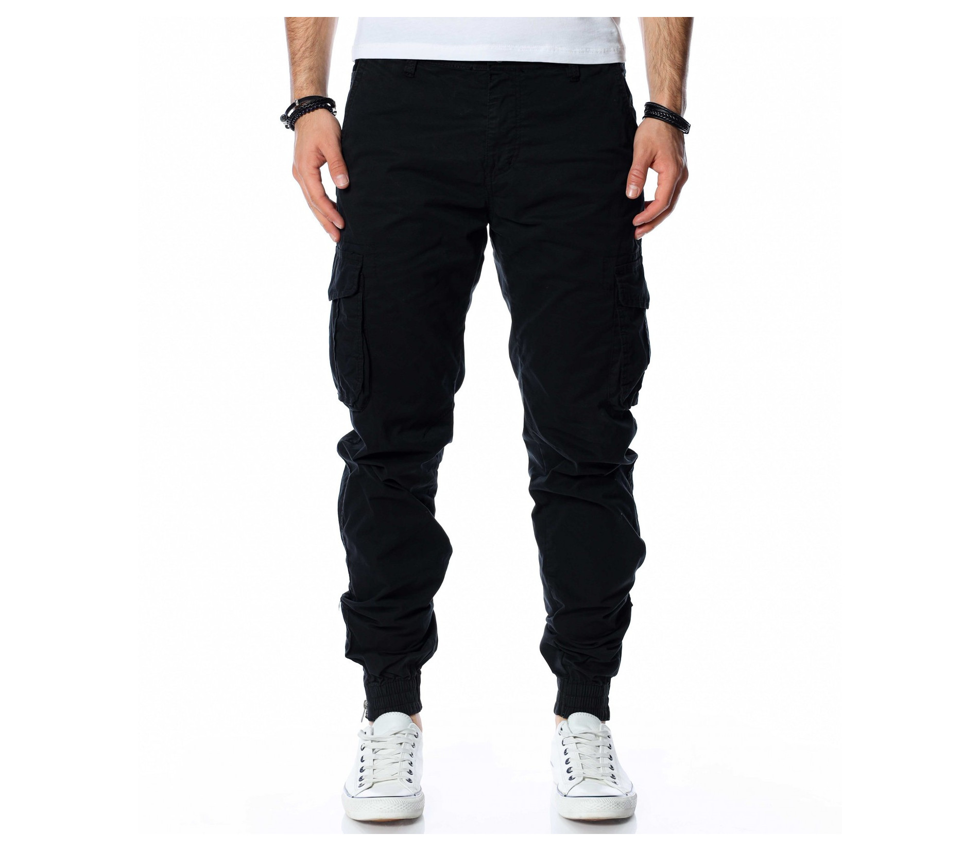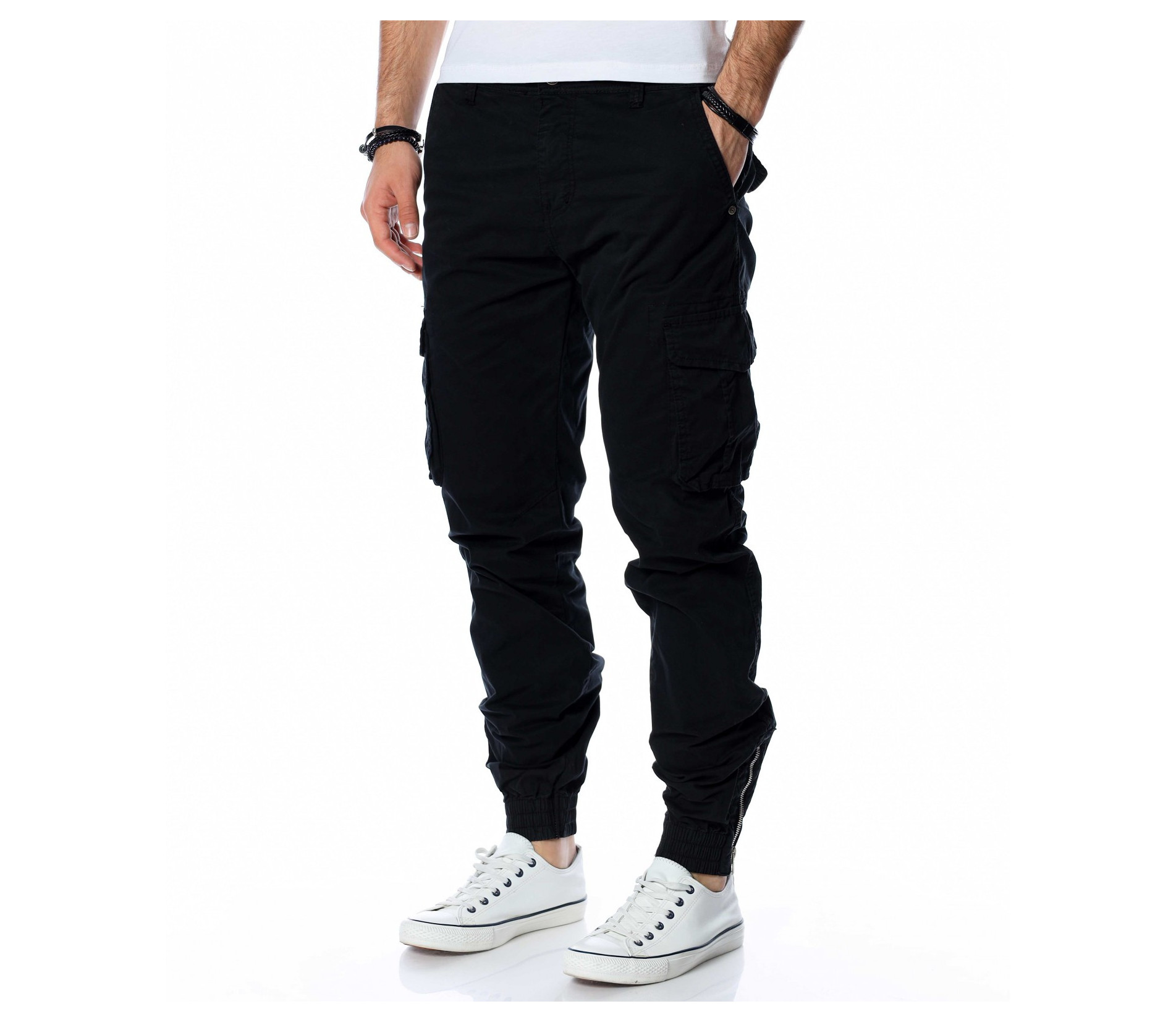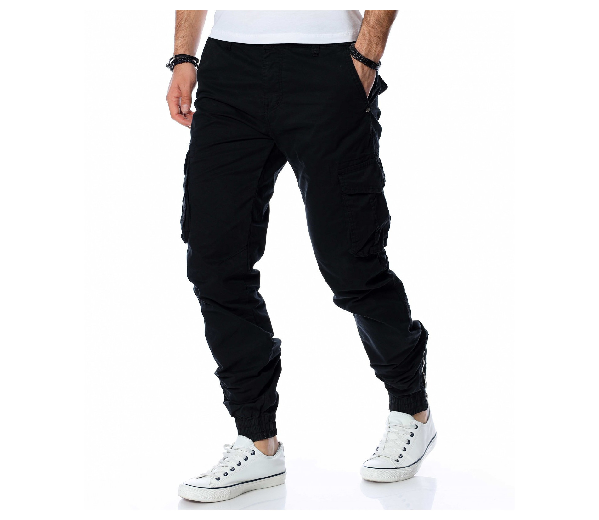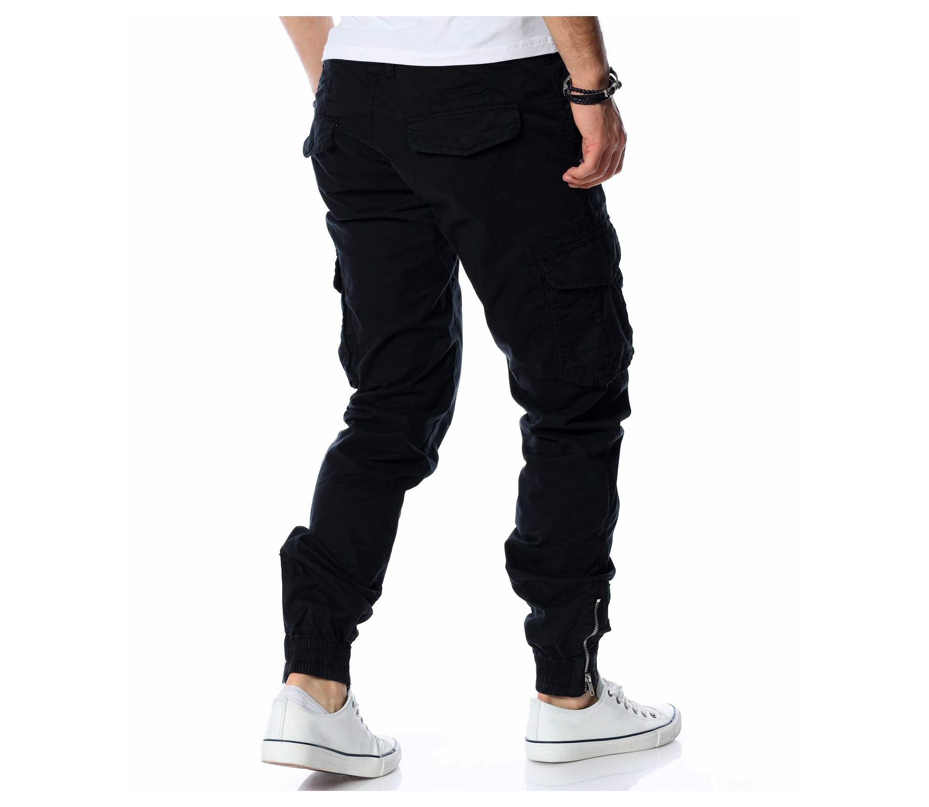 ОПИСАНИЕ НА ПРОДУКТА: Класиката в жанра в модните среди е олицетворение на онези модел дрехи, които освен че са били, са и ще бъдат тотален хит през годините, са и тези дрехи които придават максимален комфорт на тялото, без да правят компромис с външния Ви вид. Именно такъв е този модел мъжки спортен панталон, допълнен от ефектни карго джобове и предлагащ се в големи размери. Тук декорацията е изградена от по-прибрани и ненатрапчиви външни джобове, допълнени от практични капачета, закопчаващи се с капси. Този мотив е пренесен и към задната част, където са разположени по дискретни такива. Линията на мъжкия панталон следва тялото, като при глезена завършва с широк ластик и цип, стесняващи допълнително крачола. Перфектна изработка, облечена в класно излъчване, което може да подберете от няколко цветови нюанса, кой от кой по-атрактивни.