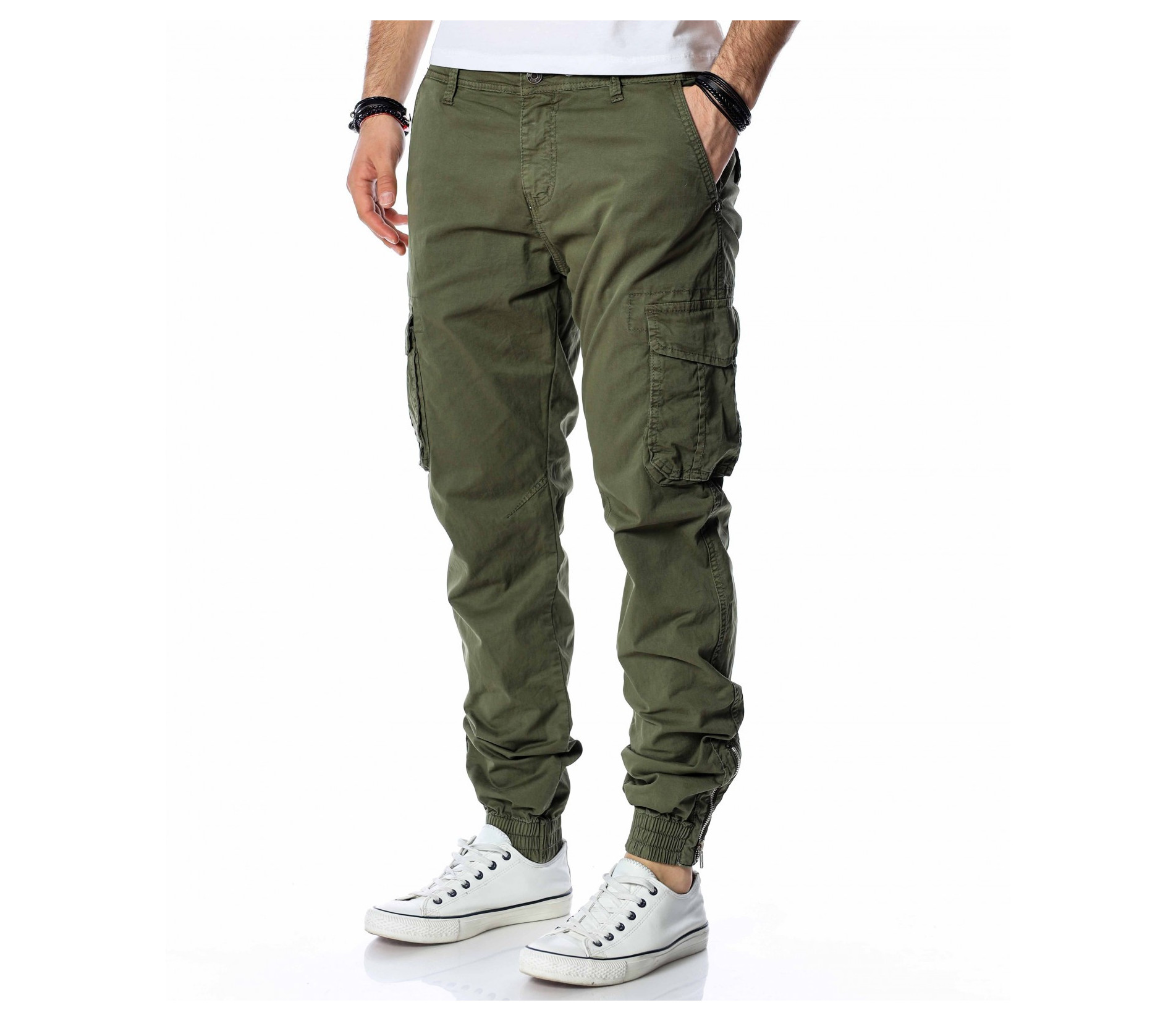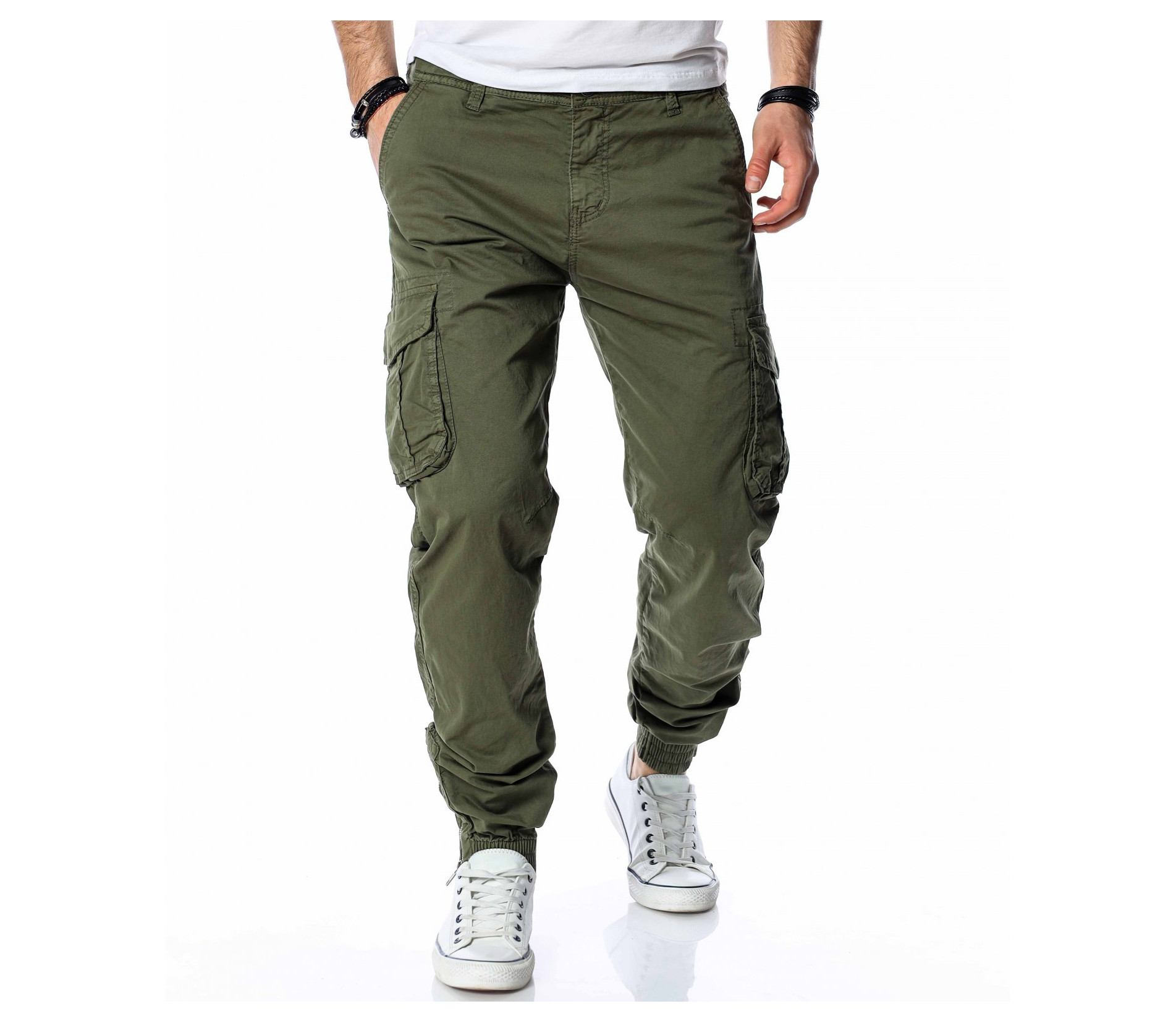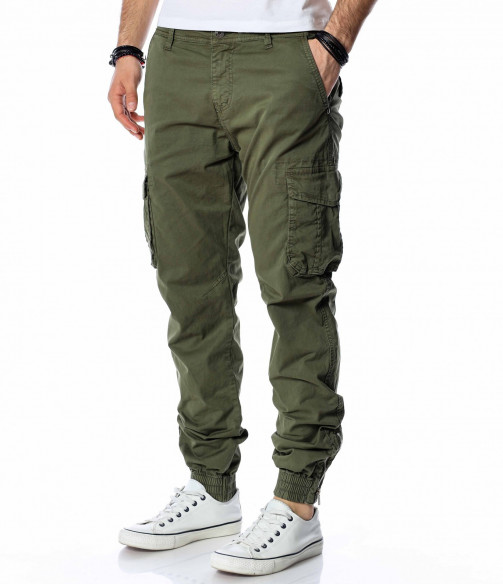 ОПИСАНИЕ НА ПРОДУКТА: Класиката в жанра в модните среди е олицетворение на онези модел дрехи, които освен че са били, са и ще бъдат тотален хит през годините, са и тези дрехи които придават максимален комфорт на тялото, без да правят компромис с външния Ви вид. Именно такъв е този модел мъжки спортен панталон, допълнен от ефектни карго джобове и предлагащ се в големи размери. Тук декорацията е изградена от по-прибрани и ненатрапчиви външни джобове, допълнени от практични капачета, закопчаващи се с капси. Този мотив е пренесен и към задната част, където са разположени по дискретни такива. Линията на мъжкия панталон следва тялото, като при глезена завършва с широк ластик и цип, стесняващи допълнително крачола. Перфектна изработка, облечена в класно излъчване, което може да подберете от няколко цветови нюанса, кой от кой по-атрактивни.