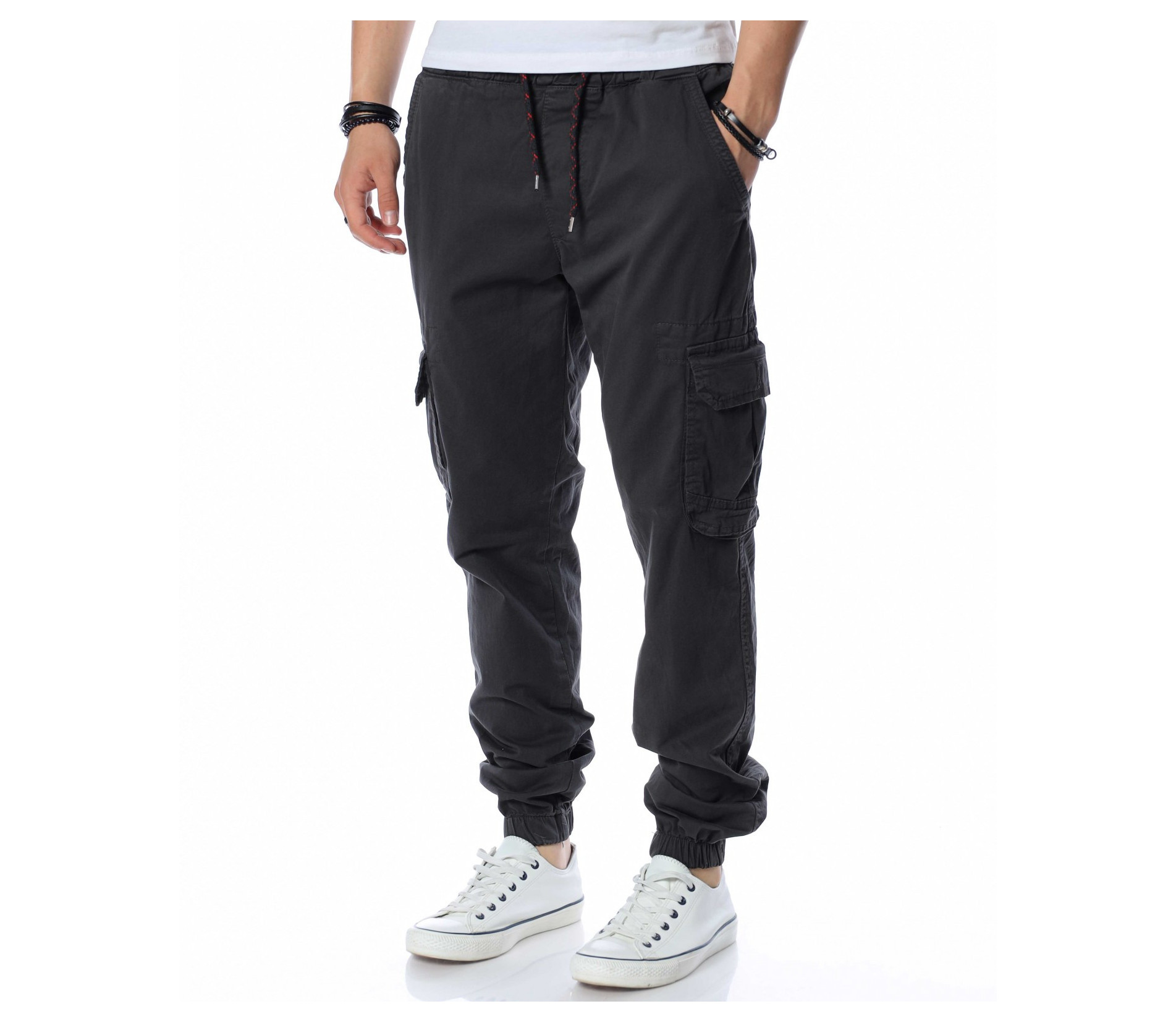 ОПИСАНИЕ НА ПРОДУКТА: Мъжкият гардероб е важно да бъде персонално създаден и много практичен, затова специално за вас сме подбрали - модерен, мъжки карго панталон. Цялата дължина е изчистена от всякакви декорации, а на талията са разположени връзки за по-лесно регулиране на ширината. Кройката приляга перфектно на тялото, а на крачолите е поставен ластичен маншет, който прилежно прибира крачола към глезена. От двете страни откриваме масивни карго джобове с капачета. Меката материя, от която е изработен, придава така желаният комфорт и удобство на тялото. Бъдете представителни за неофициалните поводи и изградете стилен имидж. Моделът позволява широко приложение и комбинация с подходящи кецове и тениски.