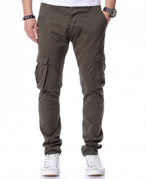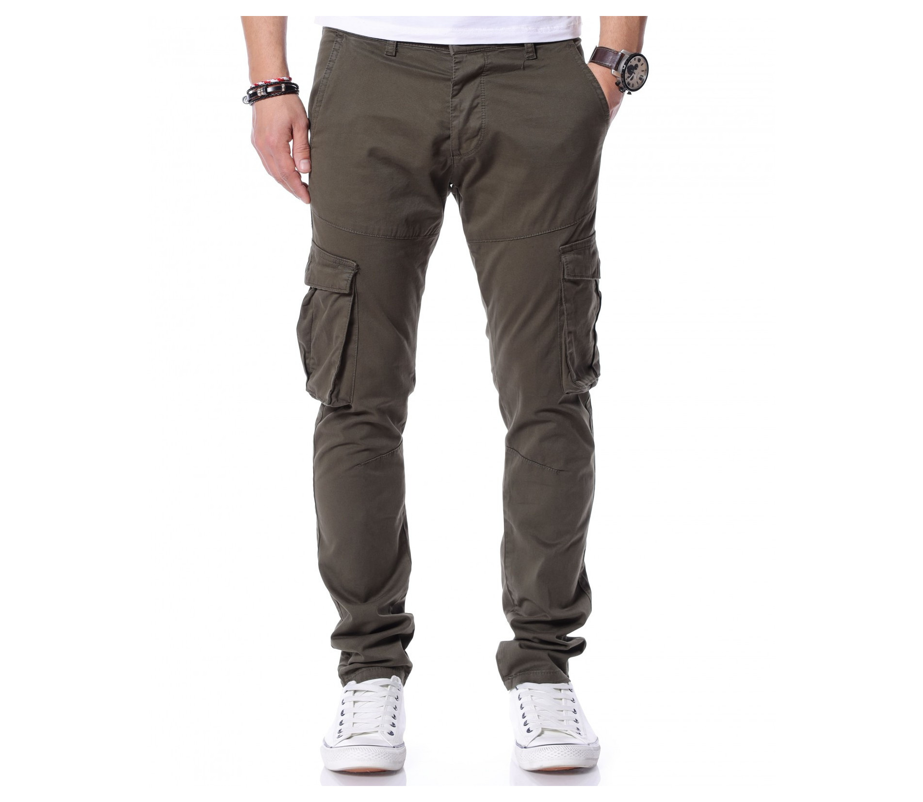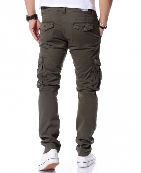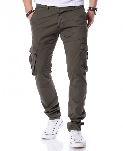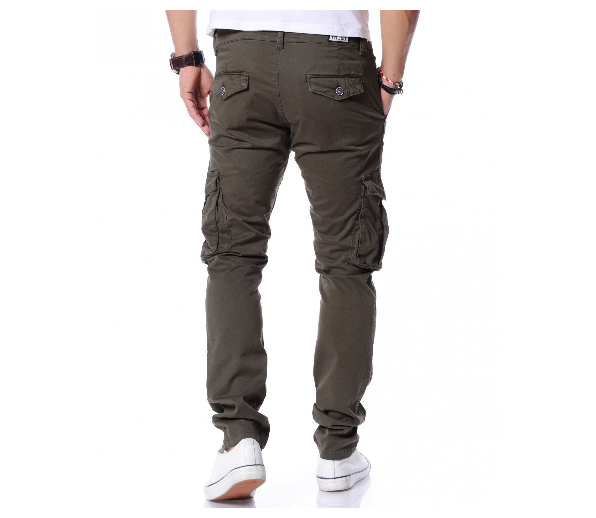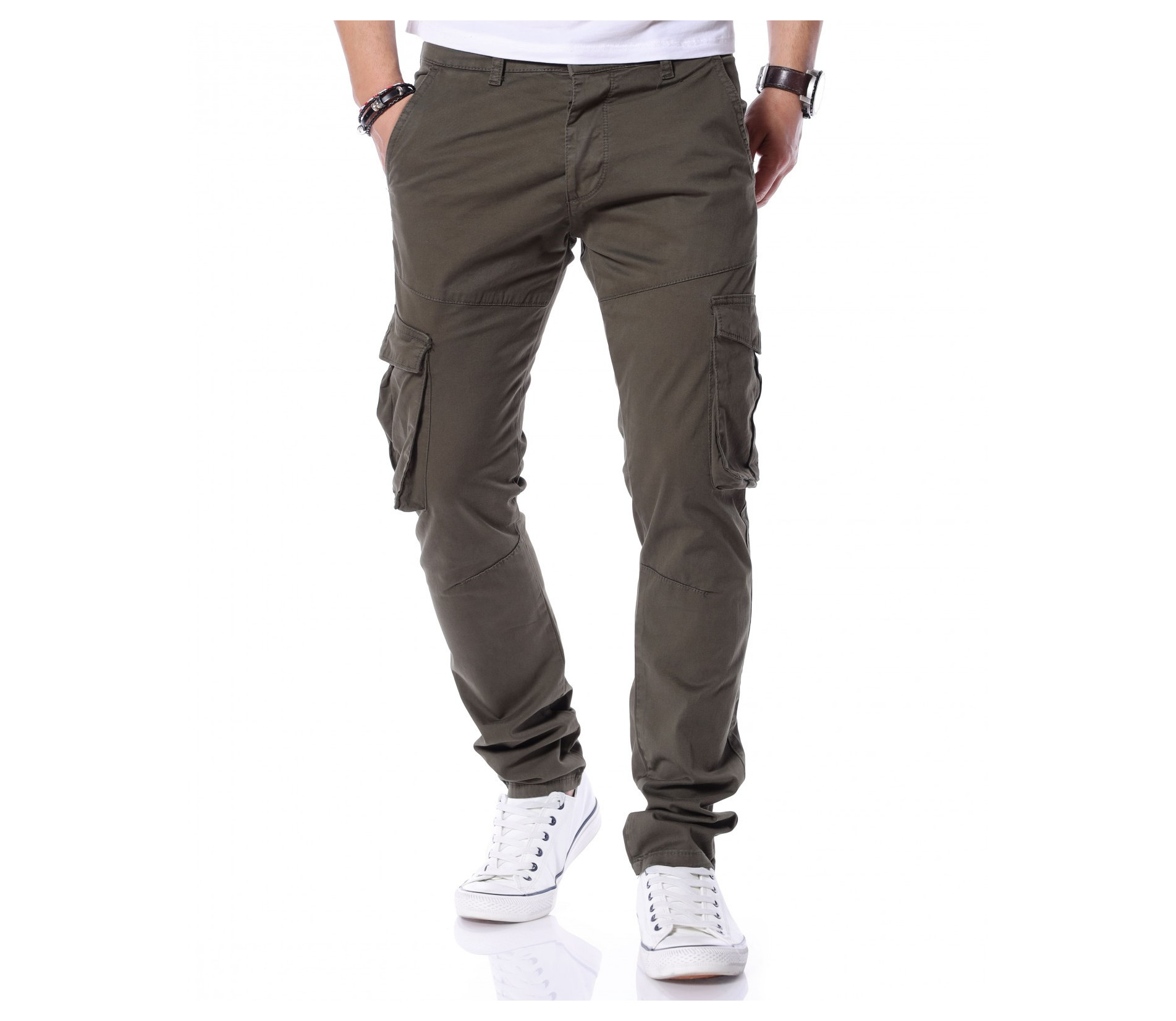 Описание на продукта: Casual предложение, облечено в спортен имидж, под формата на изчистен карго панталон. Кройката на модела е вталена, като в долния край е със свободни крачоли, позволяващи навиване според вашето желание и предпочитания. Цветовете са типични и в унисон със сезона, като са и сред любимите на мъжкото съсловие. Можете лесно да ги съчетаете с подходяща тениска, блуза или пуловер. Страничините джобове на крачолите са в практична и удобна форма с капак и са основния елемент на подобен вид мъжки, спортни панталони. В задната част също има джобове с триъгълни капаци, а предните са с диагонален отвор, тип \"италиански\". Закопчаването е с цип и копче в областта на колана. Избери изчистен вариант на така модерните мъжки панталони и бъди в центъра на вниманието, обгърнат в памучен комфорт.