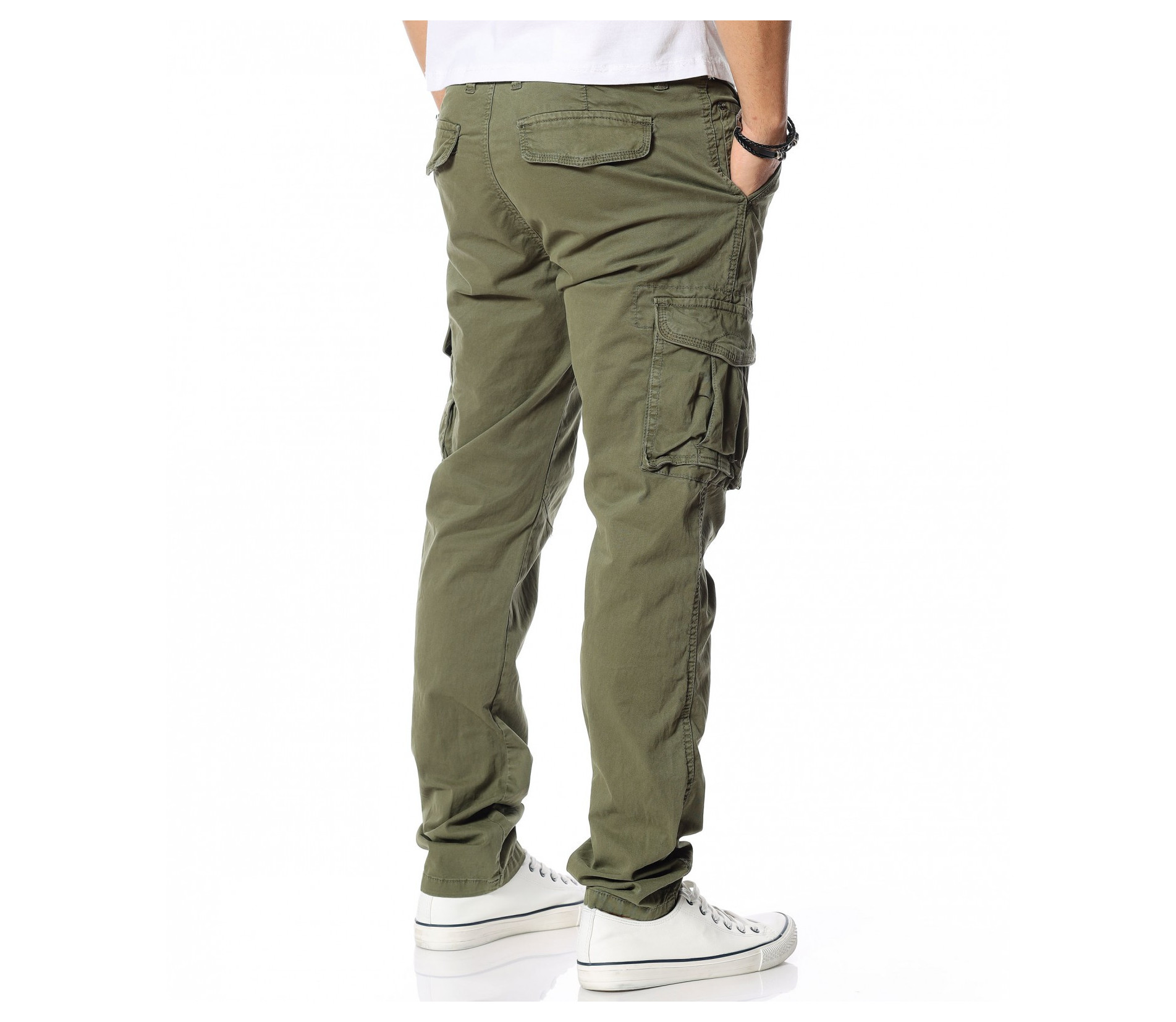Описание на продукта: За педизвикателна casual визия, Ви е необходим такъв модел панталон, който да внася закачлив, но и практичен дизайн на насотящия Ви гардероб. Облечен в наситена основа, този карго панталон позволява широко приложение, както с идентични по цвят блузи, така и с по-контрастни и ярки нюанси. Основата на крачолите е леко свободна, като в областта на глезените е по-свободна, внасящ спортна нотка. Талията също е заредена с удобство, заради широкия колан, обикалящ я изцяло. Под него е разположено и закопчаването, състоящо се от копче и метален цип. На лице са два релефни джоба с капачета, както и още четири в класически дизайн. Бъдете практични и заложете на удобен модел панталон за всекиднвния Ви стайлинг.