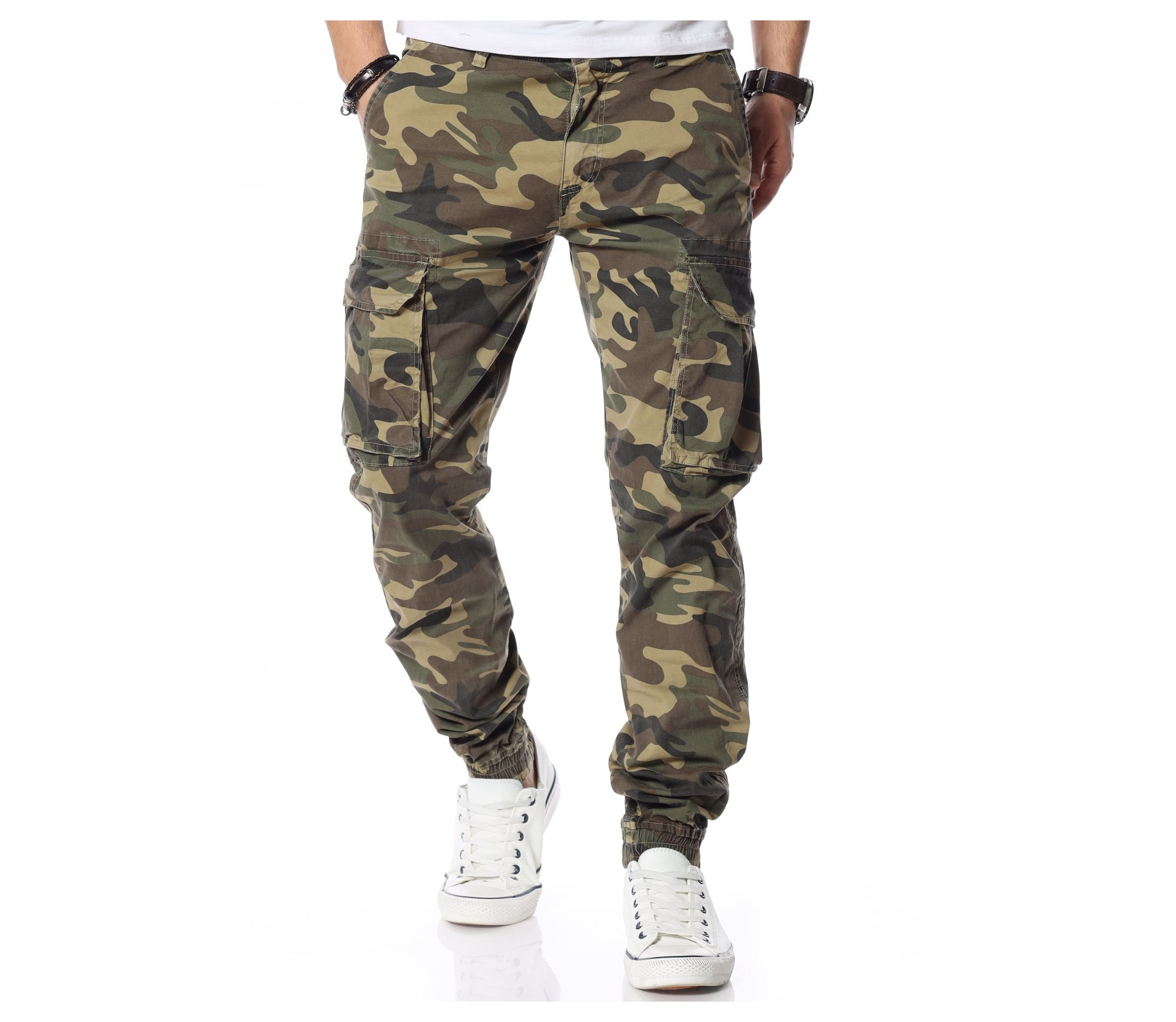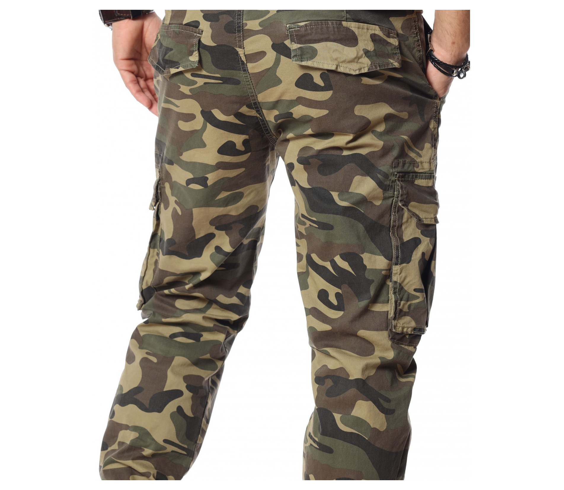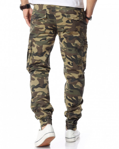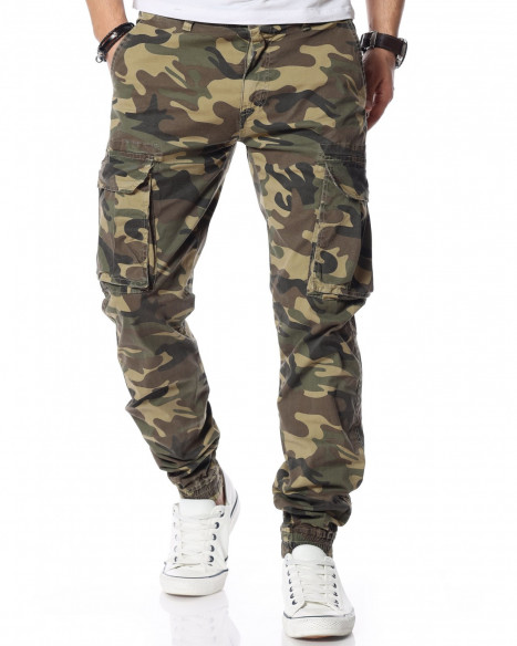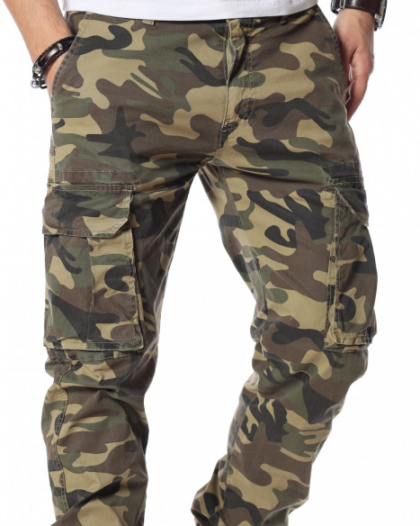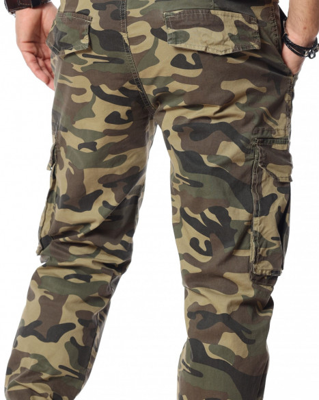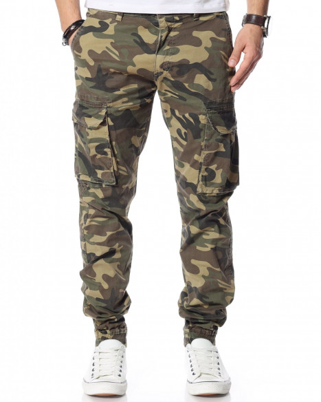 Зелен камуфлажен панталон с карго джобове.