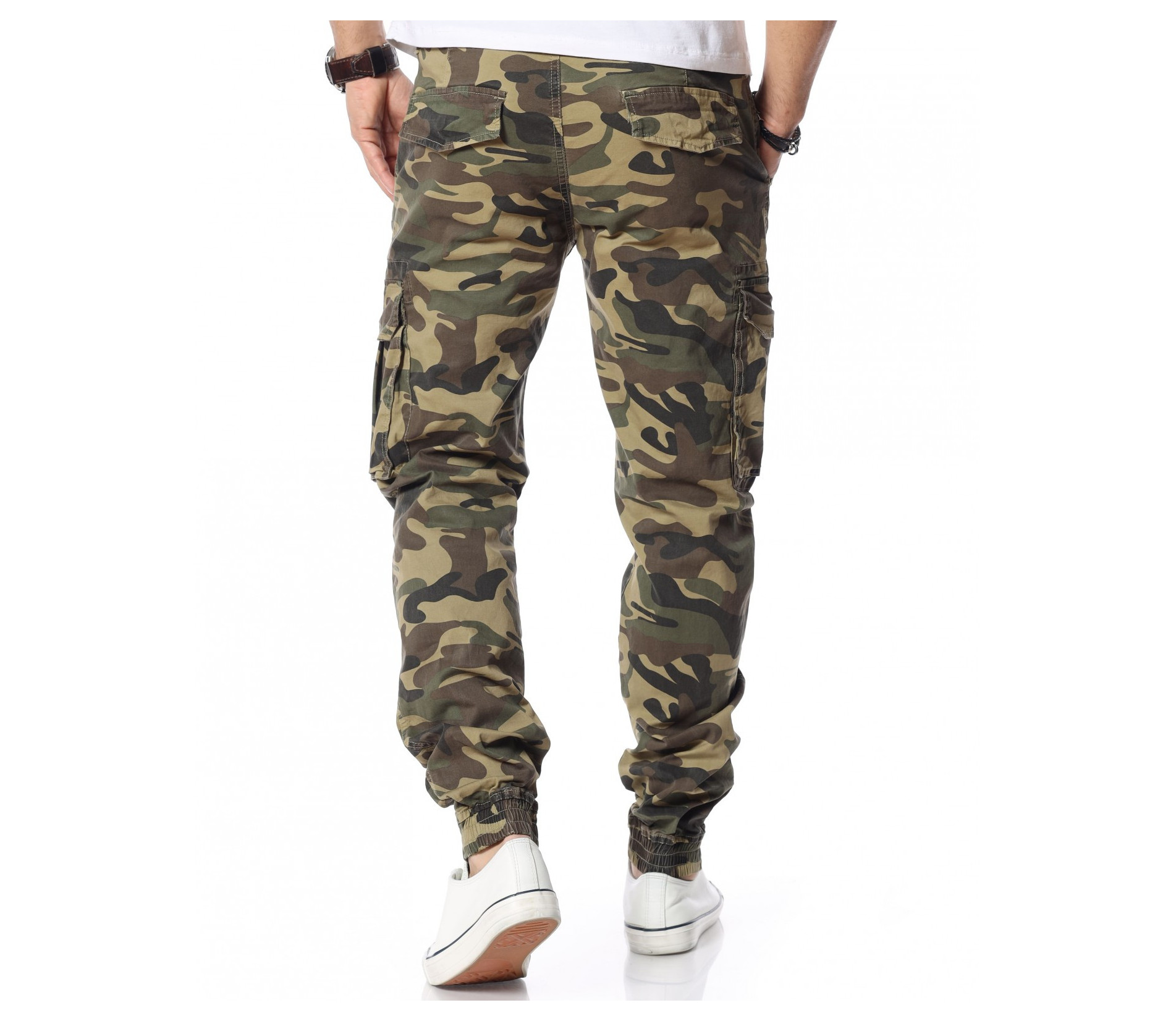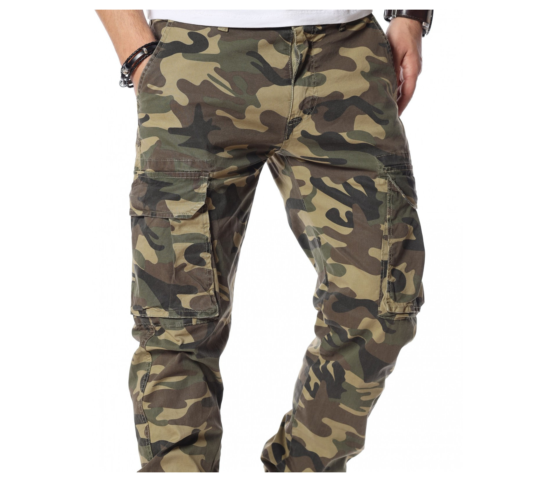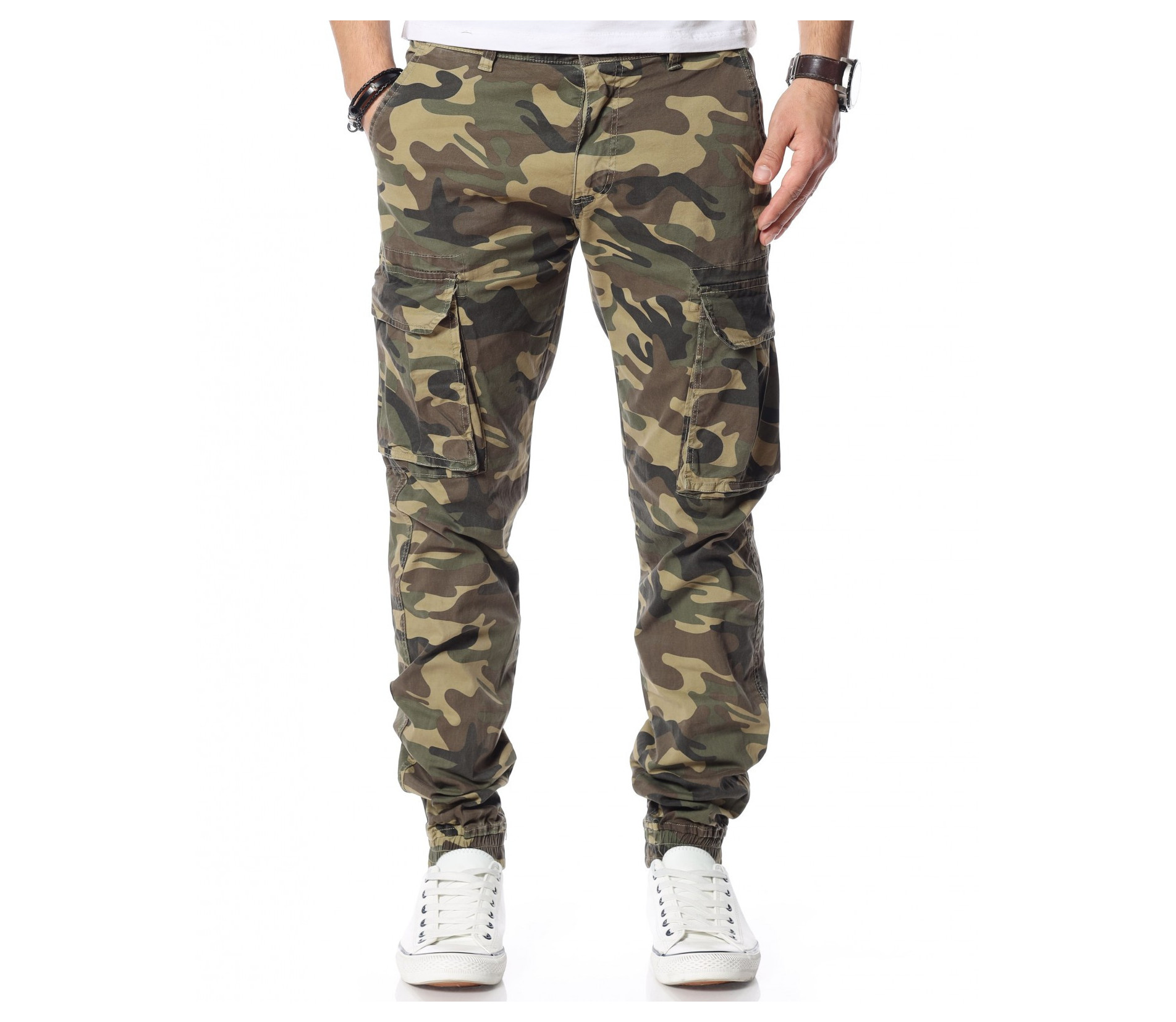 Зелен камуфлажен панталон с карго джобове.