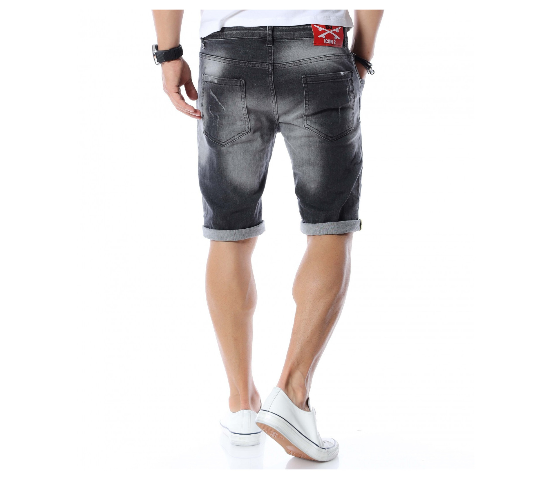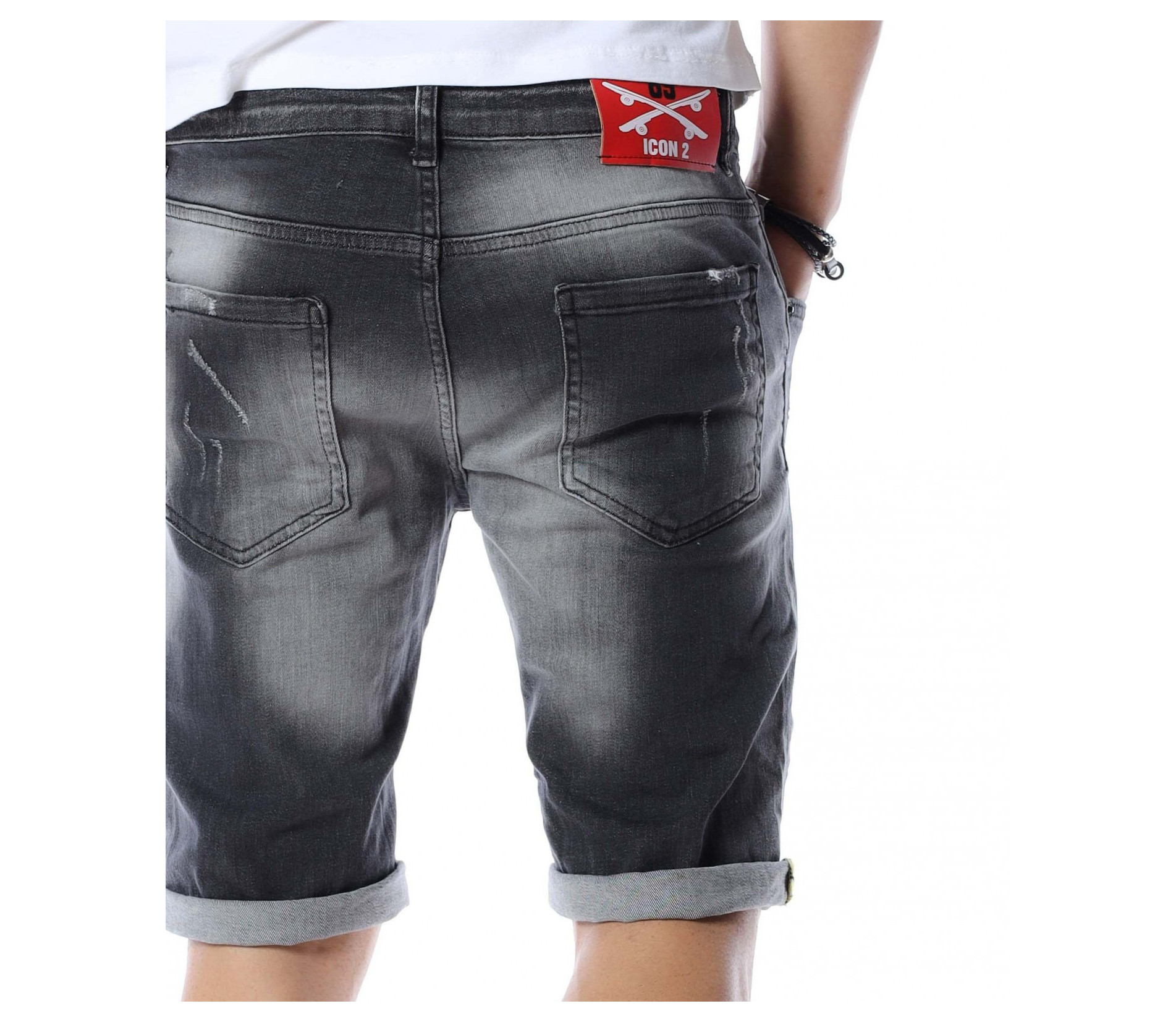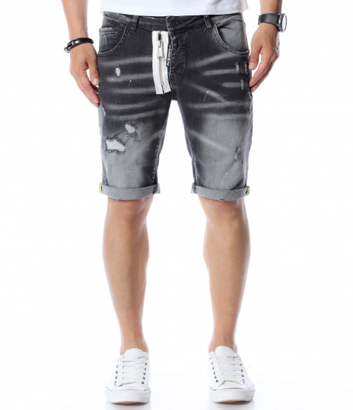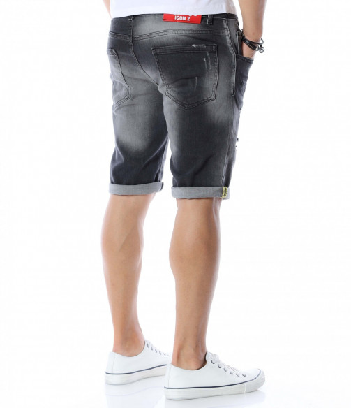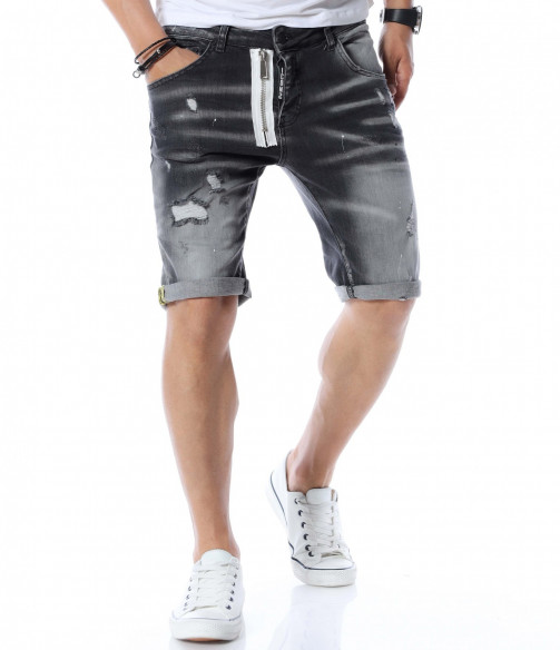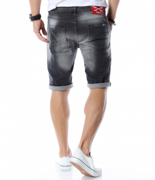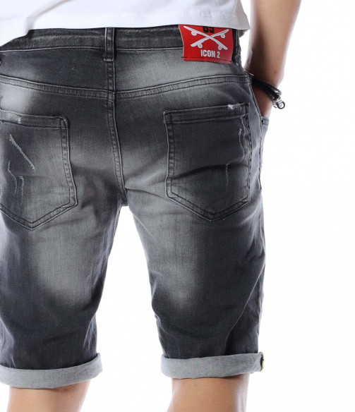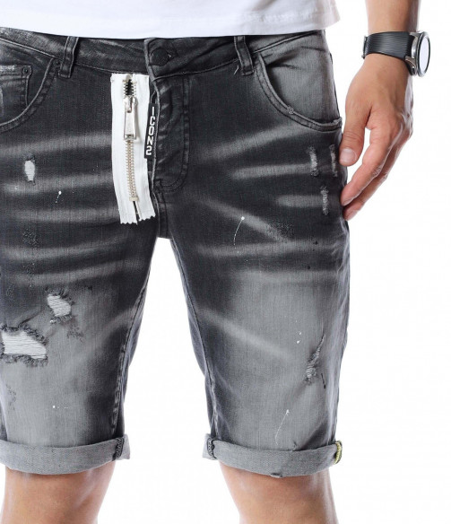 Къси дънки с дизайн 12590 - Сив