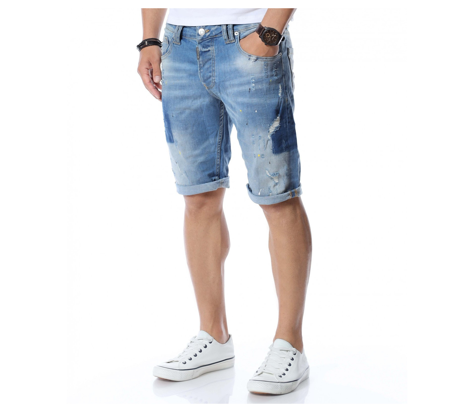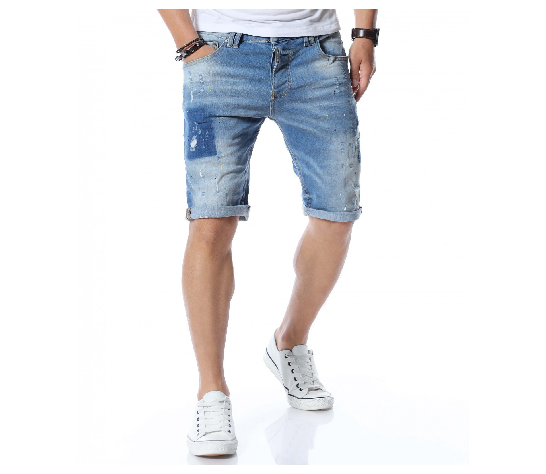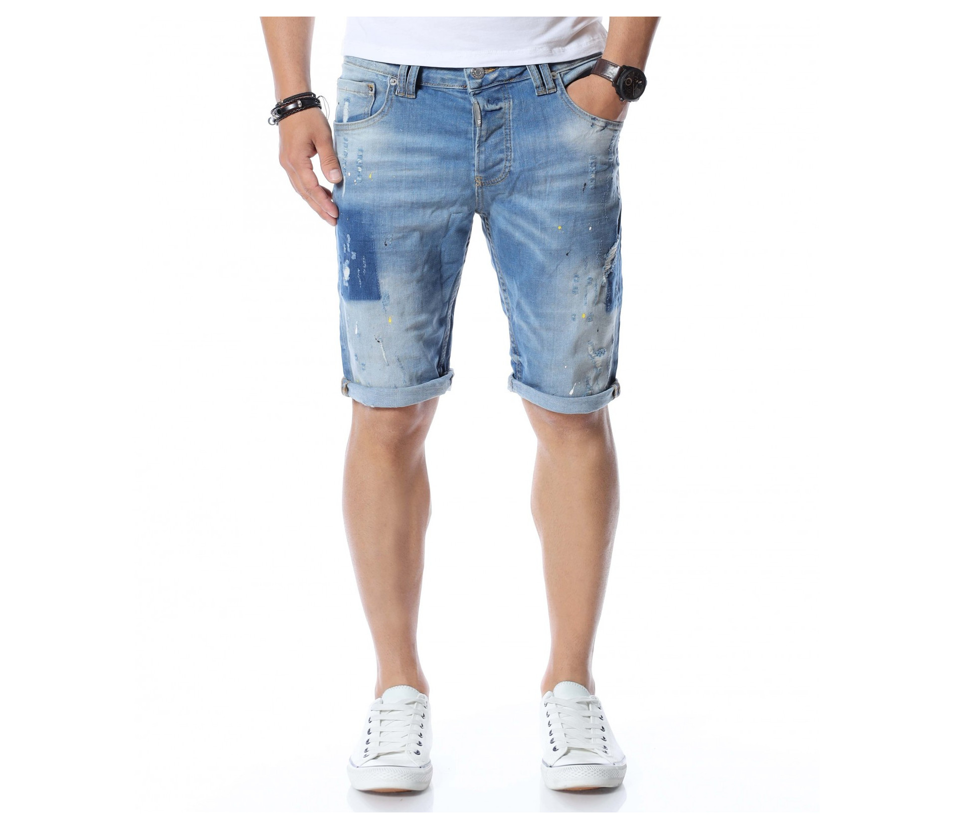 Мъжки къси дънки с интересен дизайн.