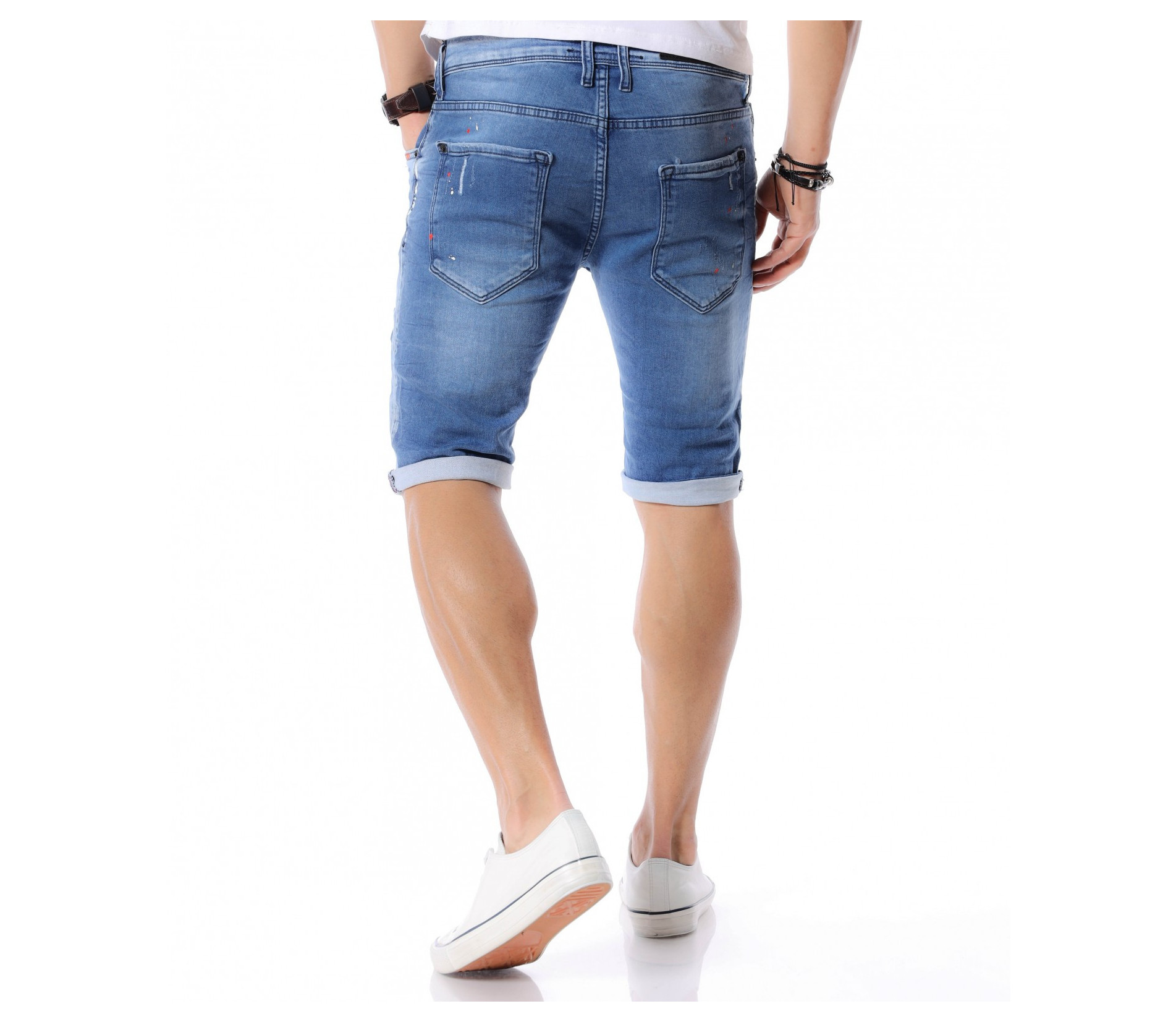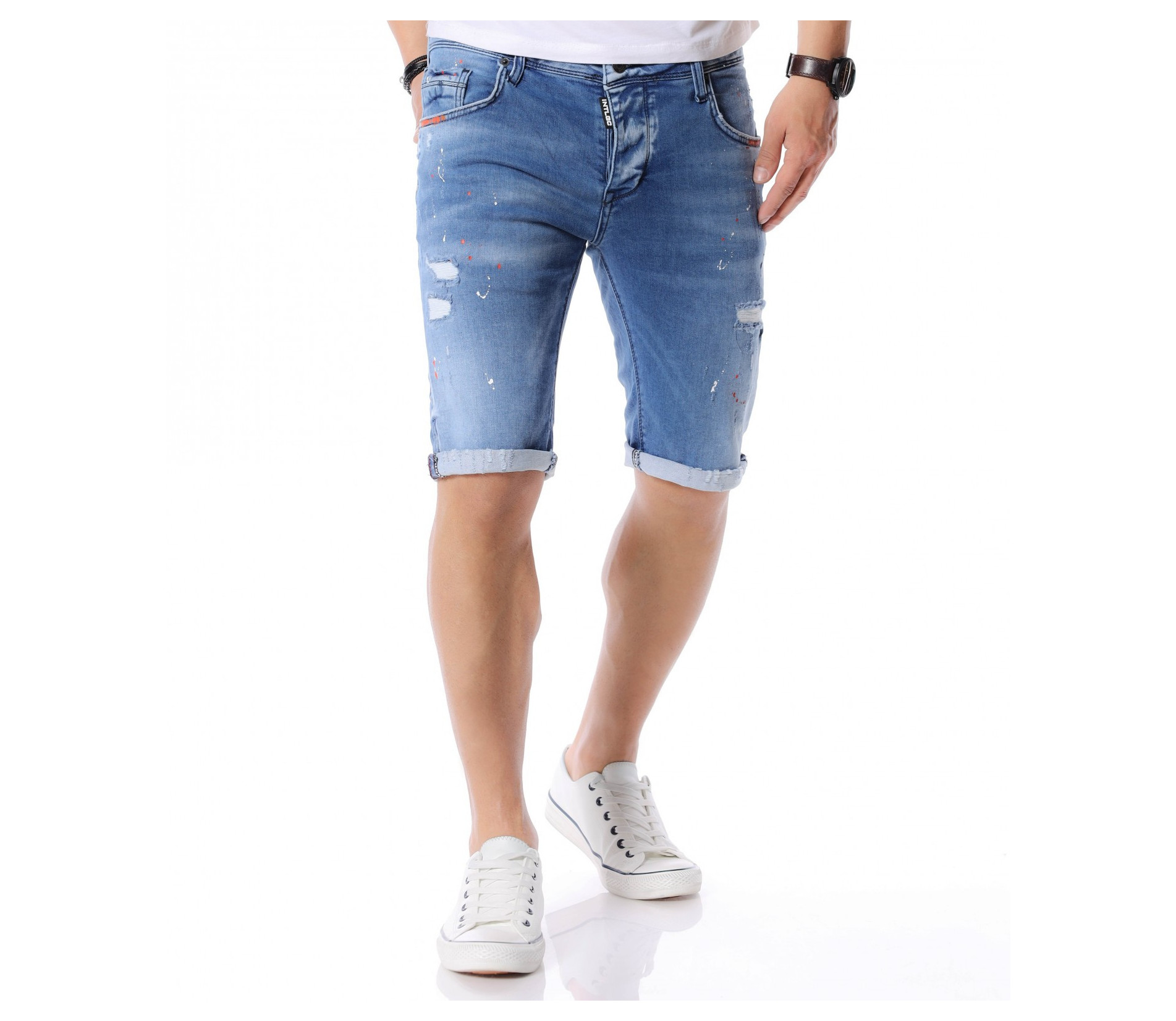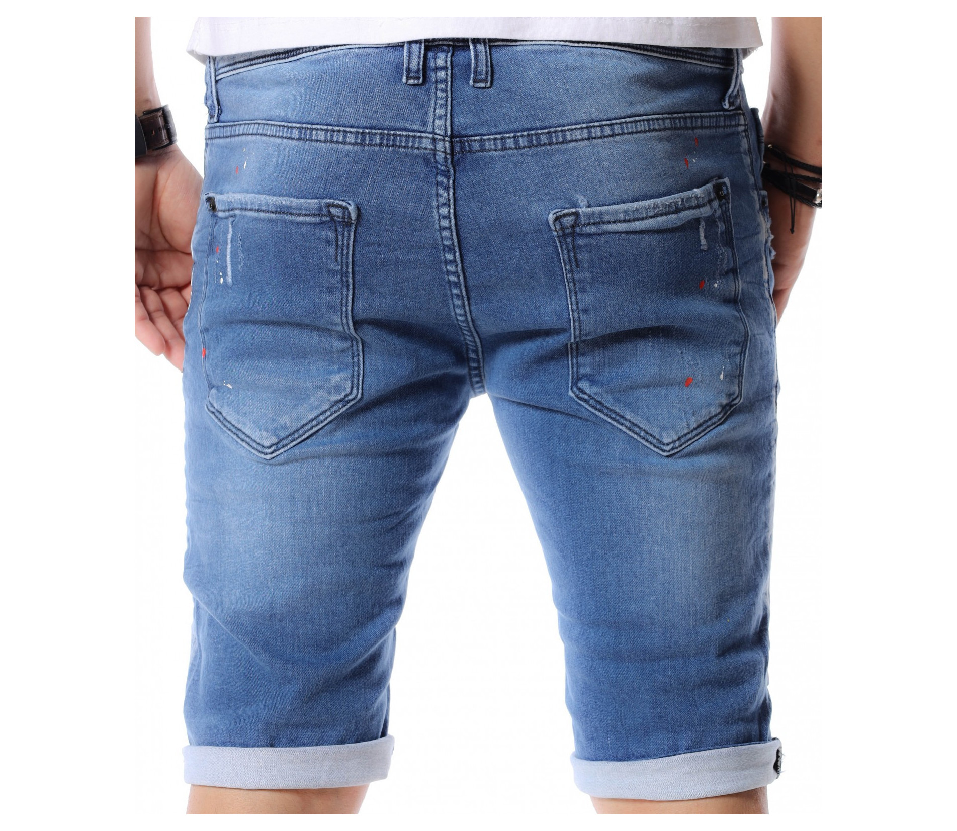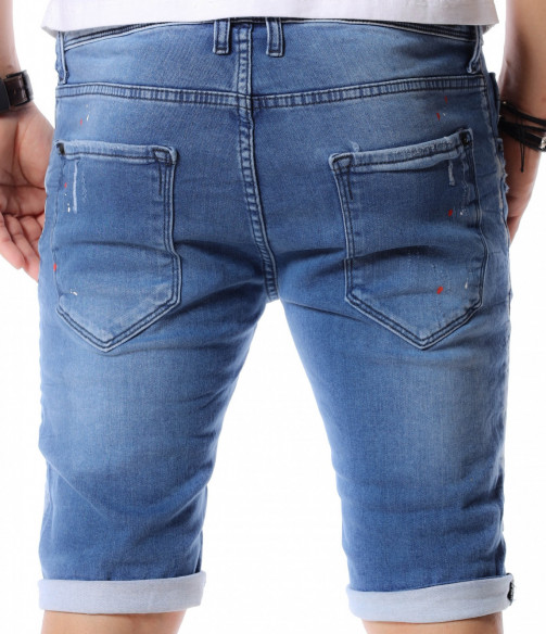 За да се придържаме към новите модни тенденции, този сезон сме ви подбрали актуален и най-предпочитан модел къси дънки. Те са задължителни за всеки мъжки гардероб и намират голямо приложение в ежедневието. Подготвили сме ви - къси, дънкови панталони в светло-синята гама, а по цялата дължина са разположени небрежно накъсани елементи с бели нишки. Кройката е вталена, следваща линиите на тялото, и същевременно даваща достатъчно свобода и комфорт на движение, багодарение на меката си удобна материя. В предната и в задната част са разположени стандартни джобове, а закопчаването се състои в метален цип и копче на талията. Напълно подходящи за изграждане на свежа лятна визия и може да ги съчетаете с тениска и подходящи кецове.