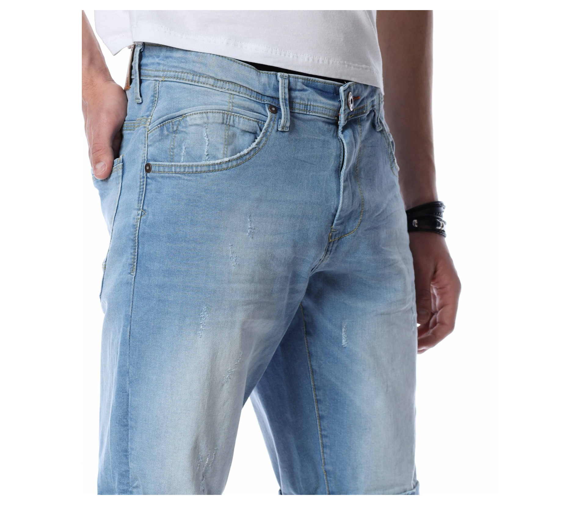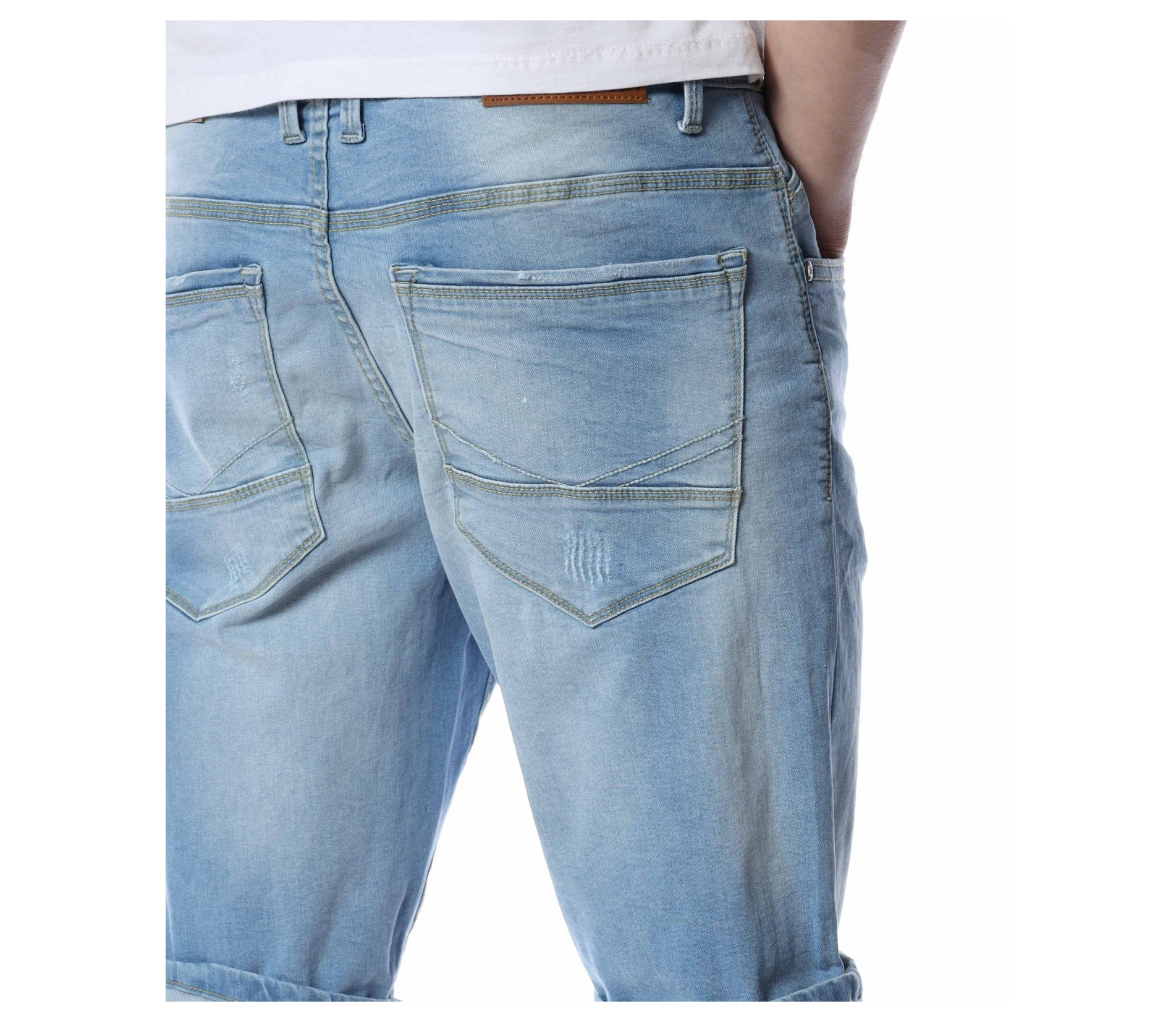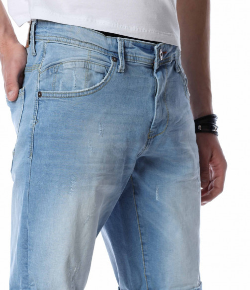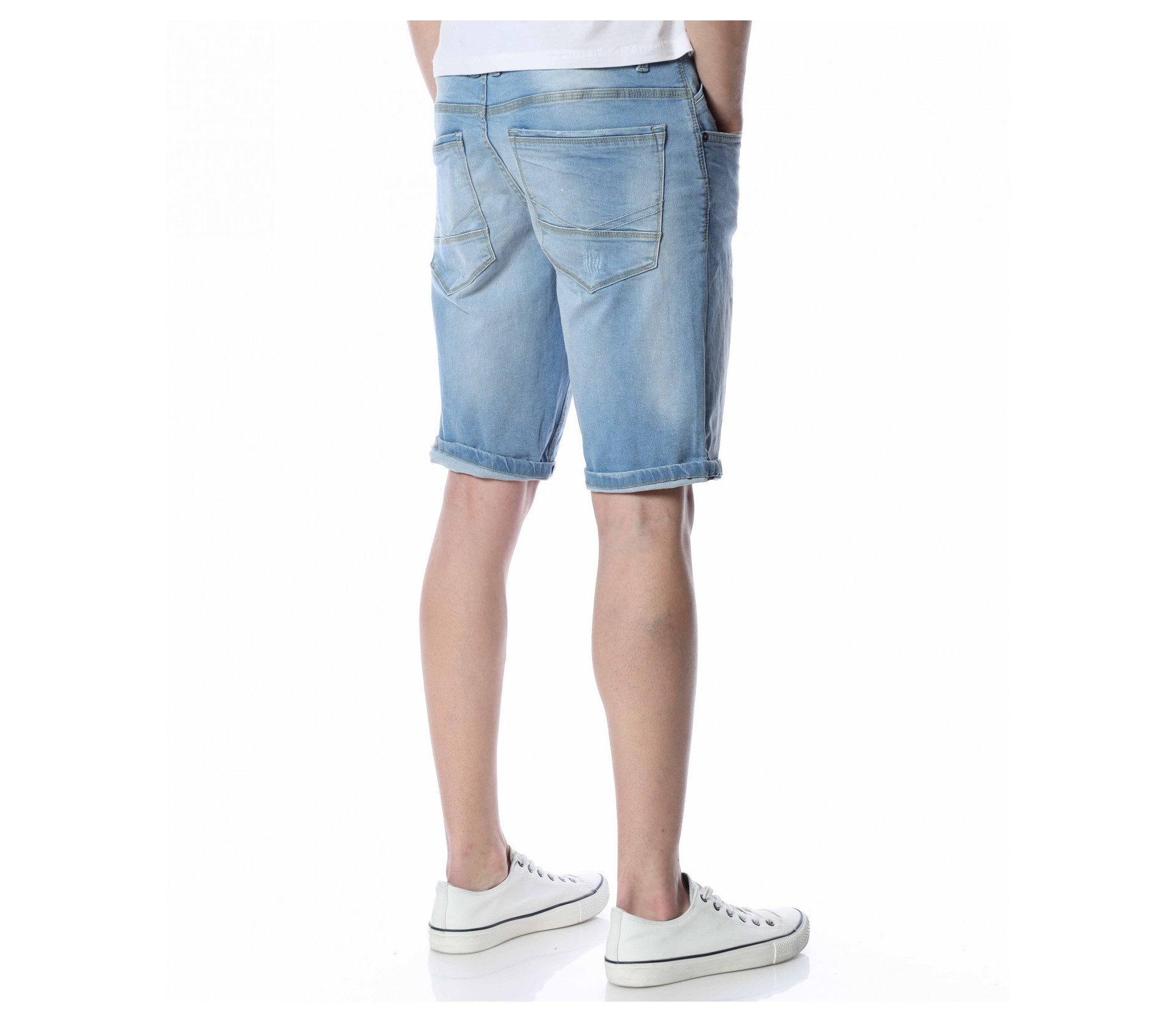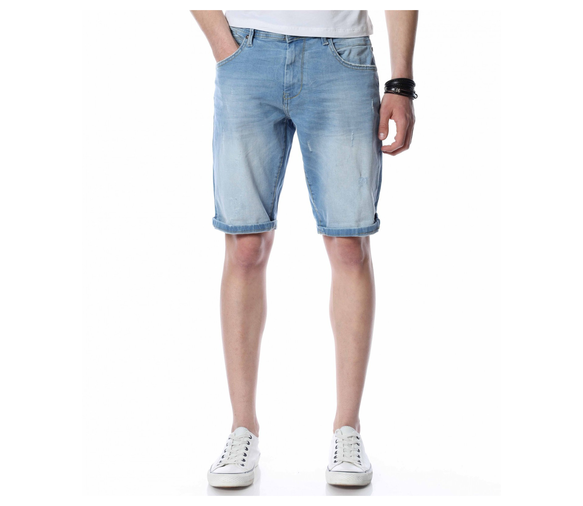 ОПИСАНИЕ НА ПРОДУКТА: Мъжки традиционни къси панталонки от дънков плат в светлосин цвят. Десена на този модел е съставен от изчистен нюанс на синьото, който е умело разчупен от изсветлели участъци, разположени както в предната, така и в задната част. На разположение са два предни и два задни джоба. Интересното при този модел дънкови 3/4 панталони е наличието на цветни шевове по цялата дължина на модела, които придават един акцентиращ облик. Кройката на късите джинси е вталена, а дължината на крачолите е стандартна с опция за допълнително навиване. Смело комбинирай този модел с любимите си кецове, свежа тениска и аксесоар по избор и създай своята модерна лятна визия.