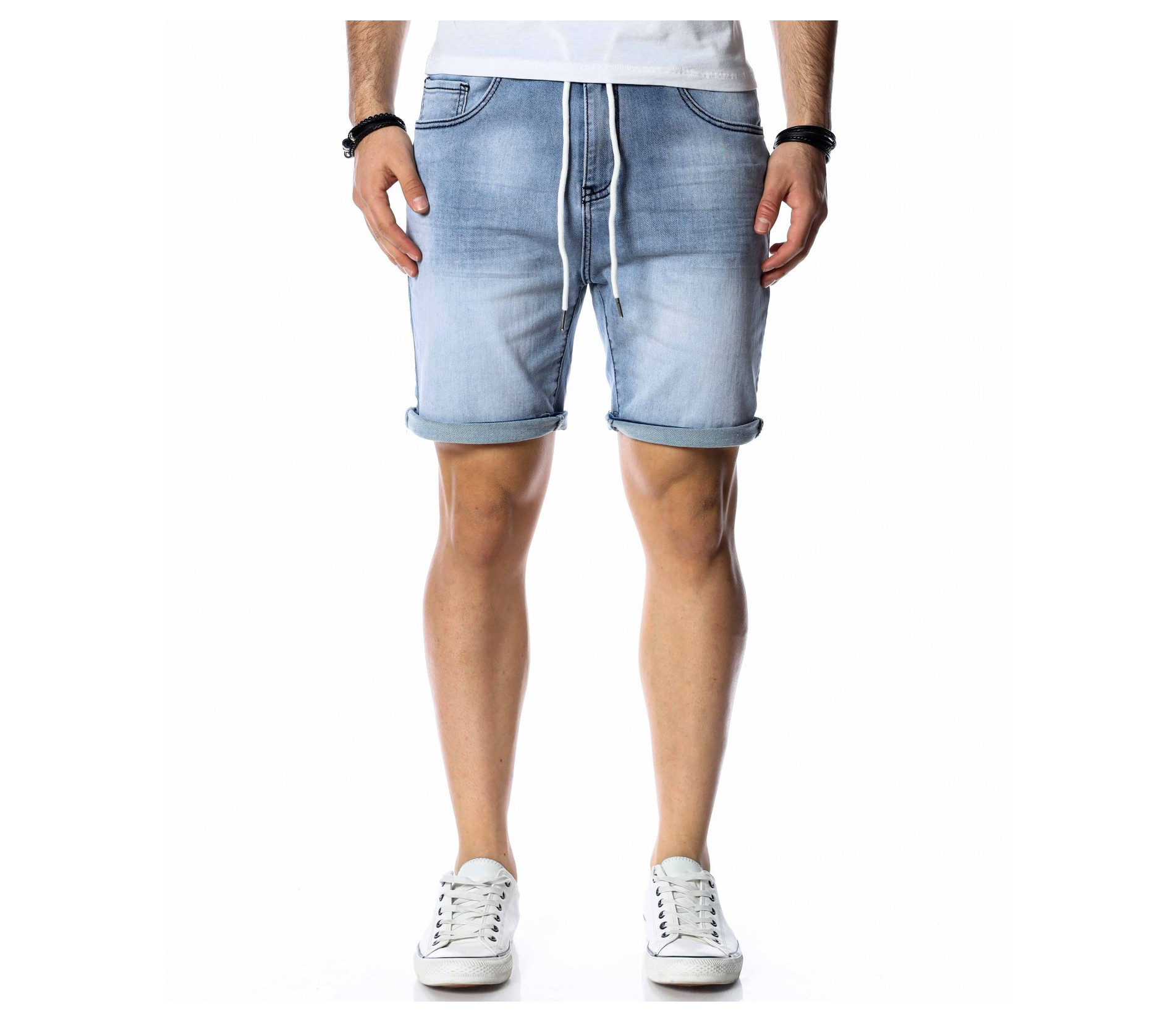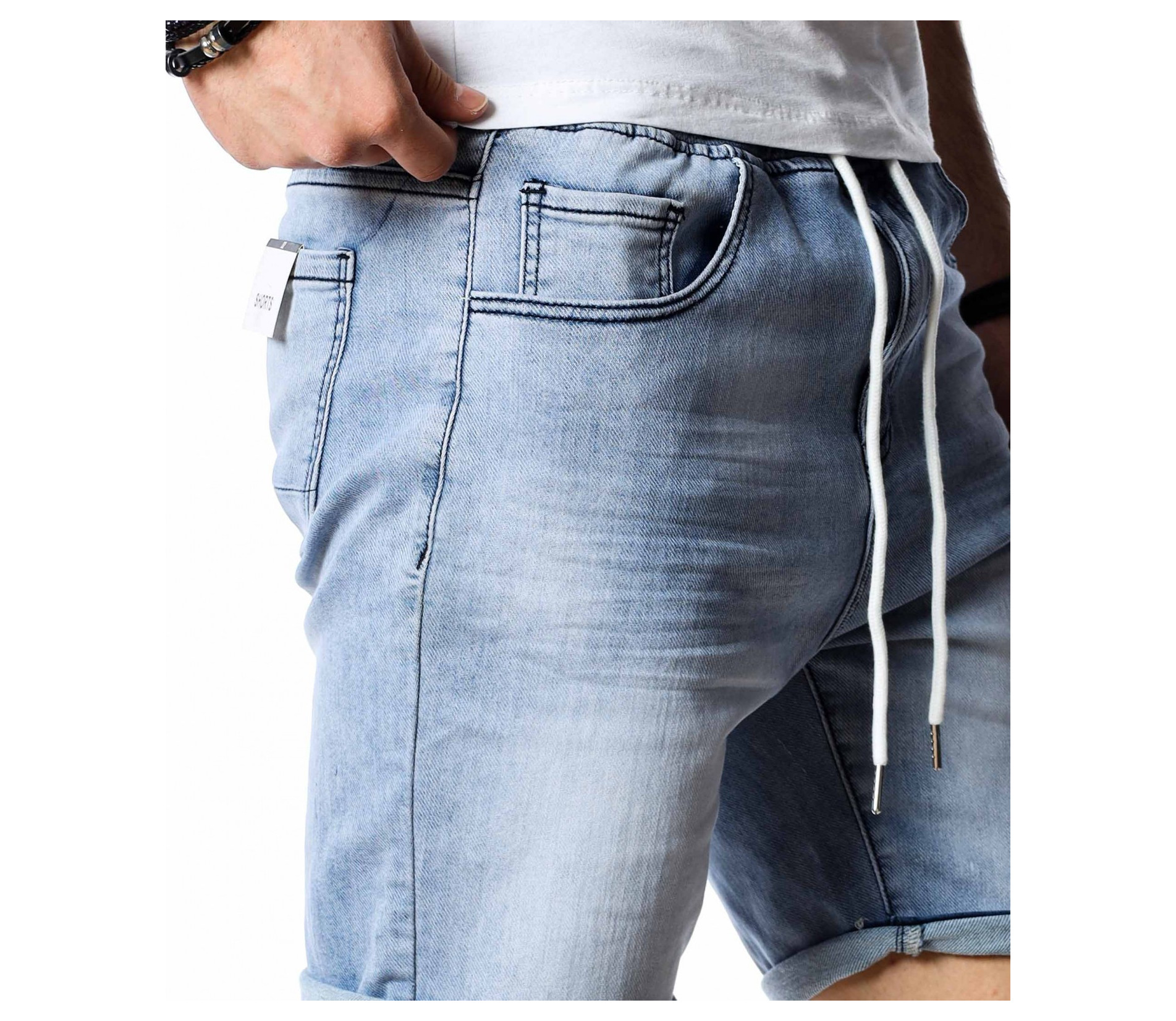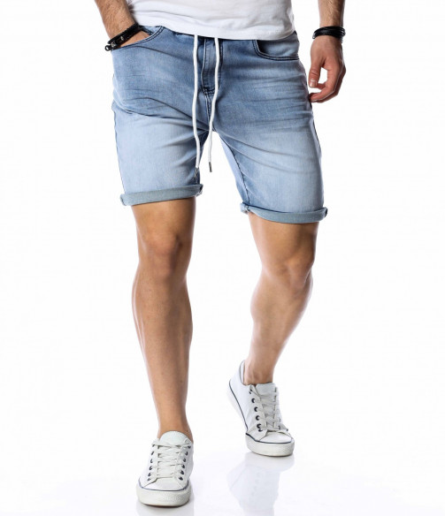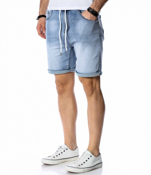 ОПИСАНИЕ НА ПРОДУКТА: За да се придържаме към новите модни тенденции, този сезон сме ви подбрали актуален и най-предпочитан модел къси дънки. Те са задължителни за всеки мъжки гардероб и намират голямо приложение в ежедневието. Подготвили сме ви къси, дънкови панталони в преливащи нюанси на синьото. На талията са разположени връзки, с които да регулирате ширината. Кройката е вталена, следваща линиите на тялото, и същевременно даваща достатъчно свобода и комфорт на движение, благодарение на меката си удобна материя. В предната и в задната част са разположени стандартни джобове. Напълно подходящи са за изграждане на свежа лятна визия и може да ги съчетаете с тениска и кецове.