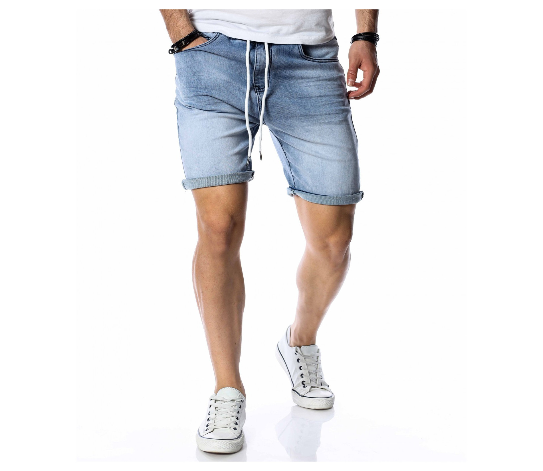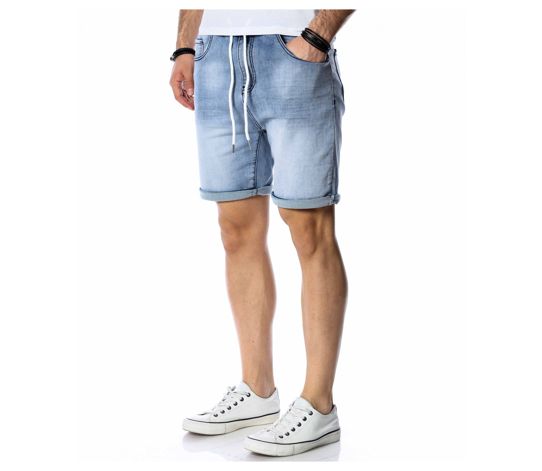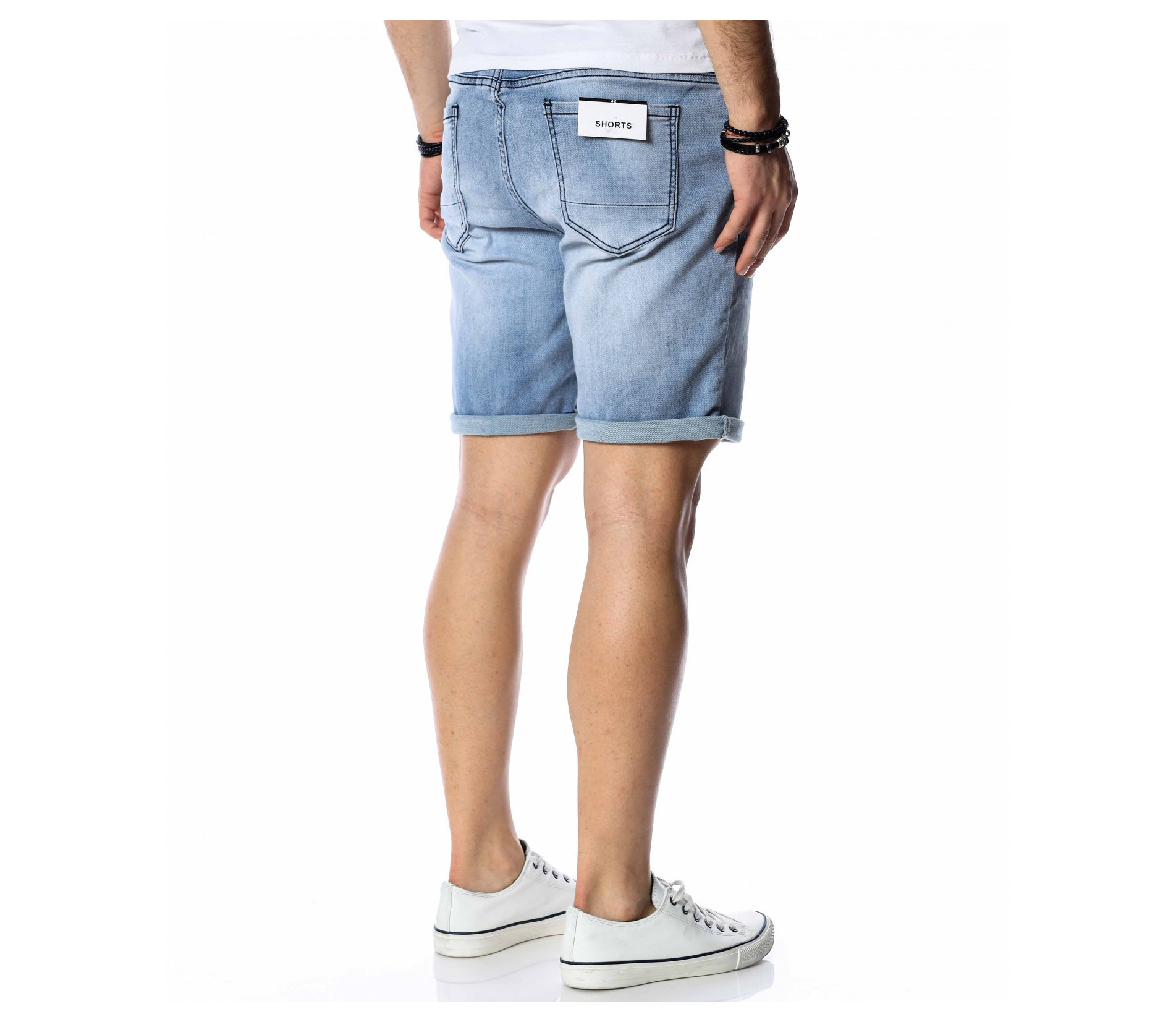 ОПИСАНИЕ НА ПРОДУКТА: За да се придържаме към новите модни тенденции, този сезон сме ви подбрали актуален и най-предпочитан модел къси дънки. Те са задължителни за всеки мъжки гардероб и намират голямо приложение в ежедневието. Подготвили сме ви къси, дънкови панталони в преливащи нюанси на синьото. На талията са разположени връзки, с които да регулирате ширината. Кройката е вталена, следваща линиите на тялото, и същевременно даваща достатъчно свобода и комфорт на движение, благодарение на меката си удобна материя. В предната и в задната част са разположени стандартни джобове. Напълно подходящи са за изграждане на свежа лятна визия и може да ги съчетаете с тениска и кецове.