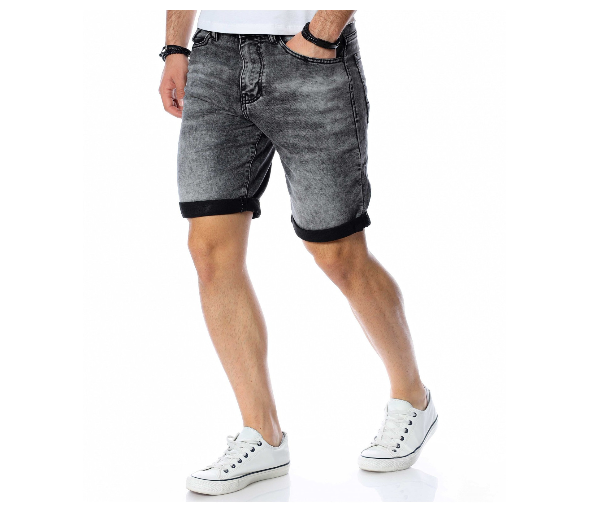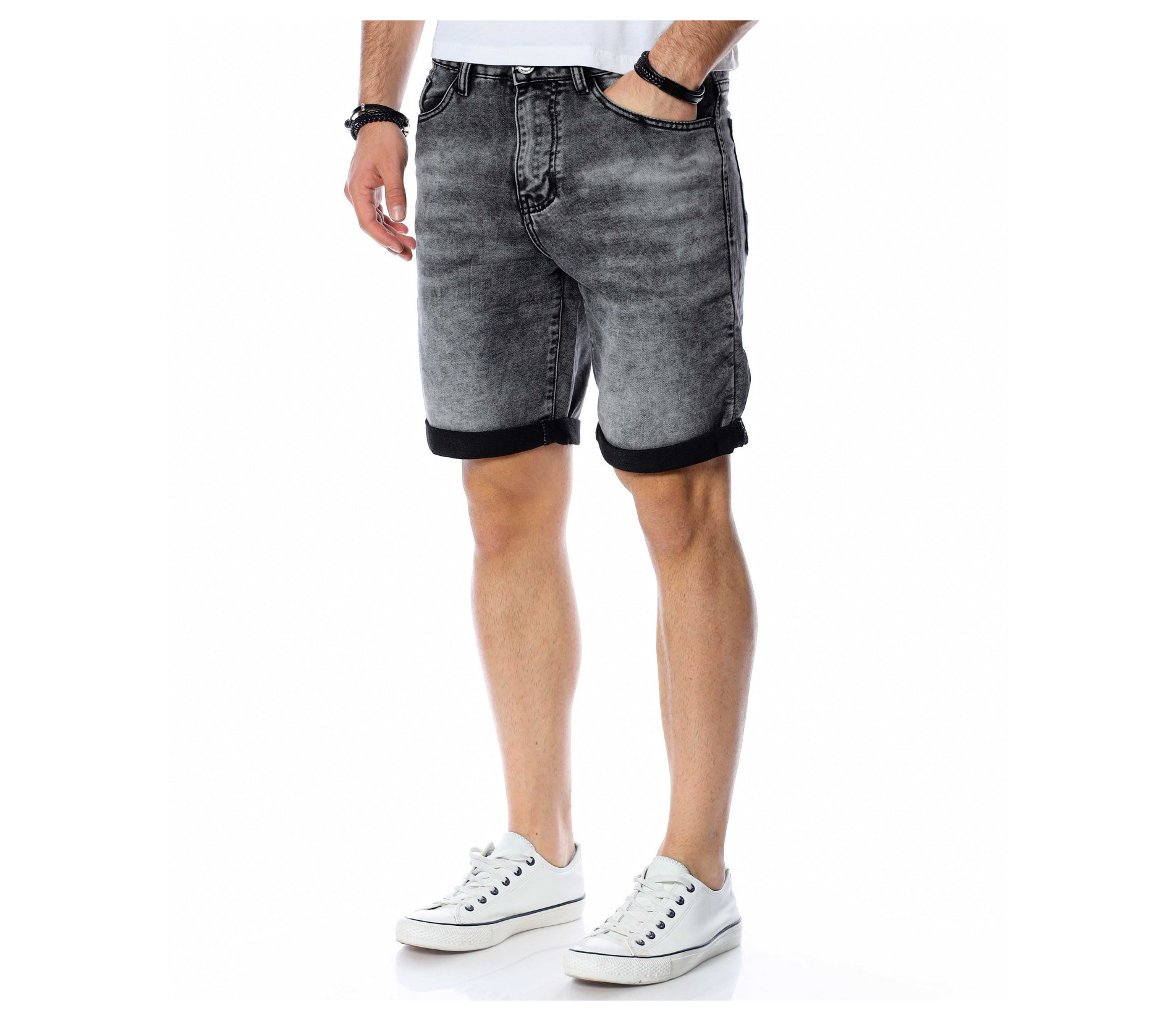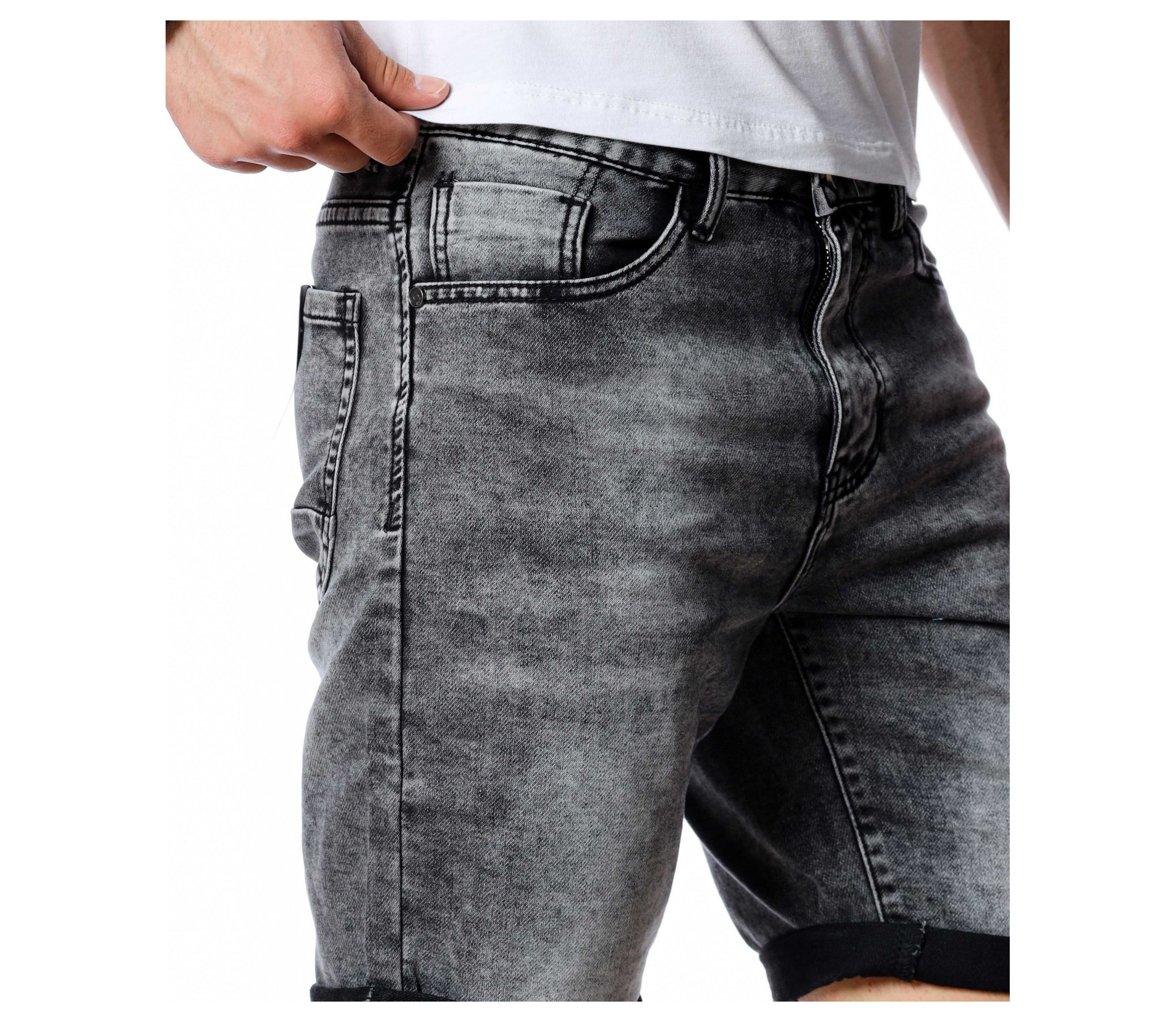 ОПИСАНИЕ НА ПРОДУКТА: Наслади се на слънчевото лято с ефектен модел къси дънки в удобна slim fit форма. Качеството на памучната материя умело е подчертано от еластичност, която е така необходима за комфорта в ежедневието. Моделът 3/4 дънки се характеризира с традиционен черен цвят, който подчертава силуета и лесно се комбинира с всякакви модели тениски и ризи, подходящи за всякакви случаи и поводи. Акцентиращите детайли във визията на късите, мъжки дънки, са избелените части по цялата дължина на модела, които придават daily излъчване, а в същото време не ангажират с присъствието си. Дължината е до коляното, като позволява свободно подгъване при желание или необходимост. От двете страни на дънките са разположени по два джоба, завършващи изцяло излъчването им. Бъди в унисон с летните дни и се наслади на максимален комфорт.