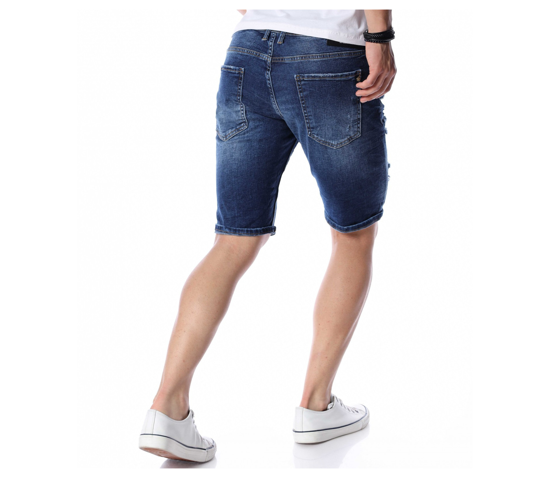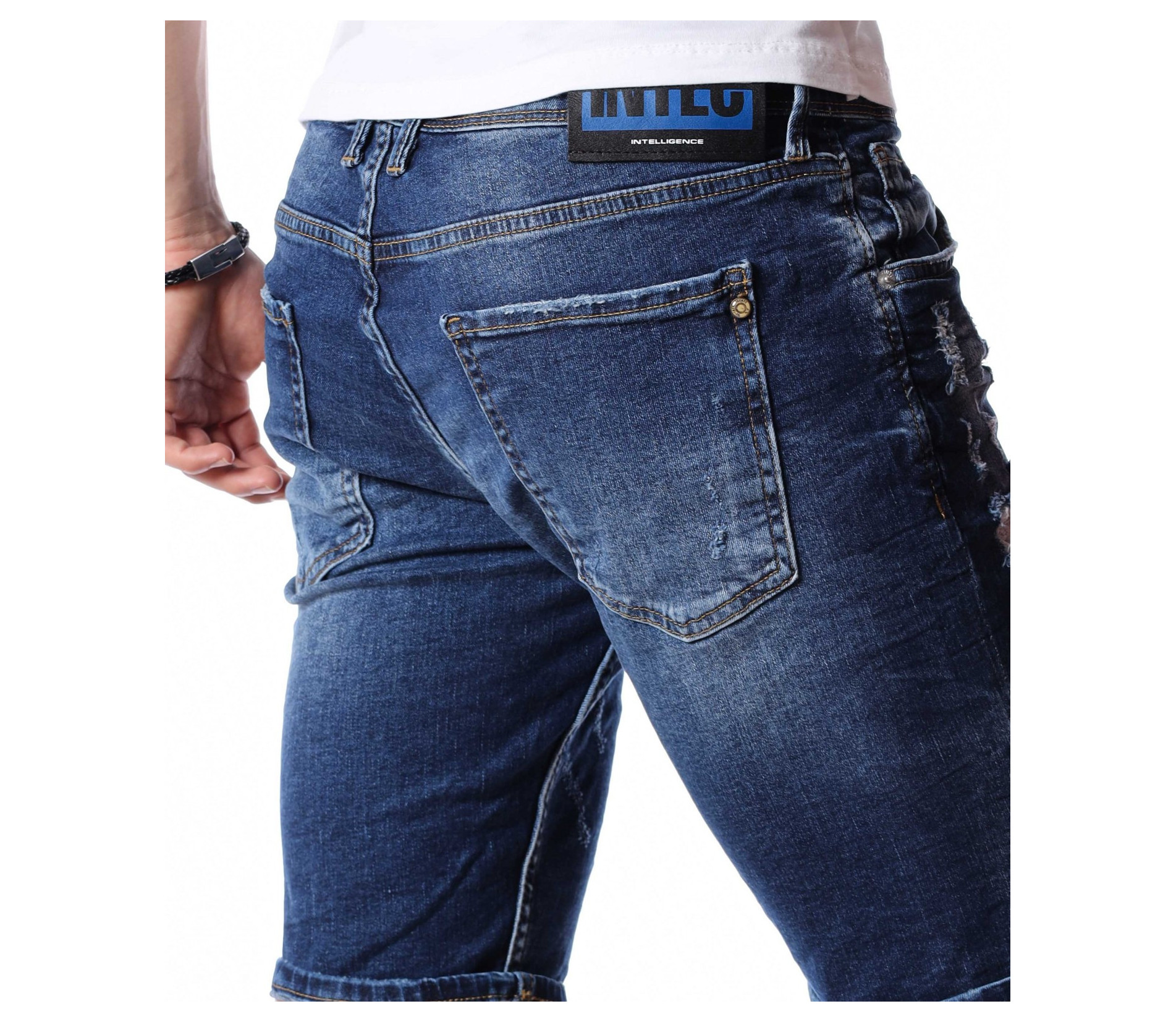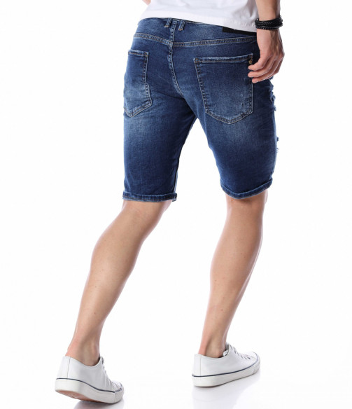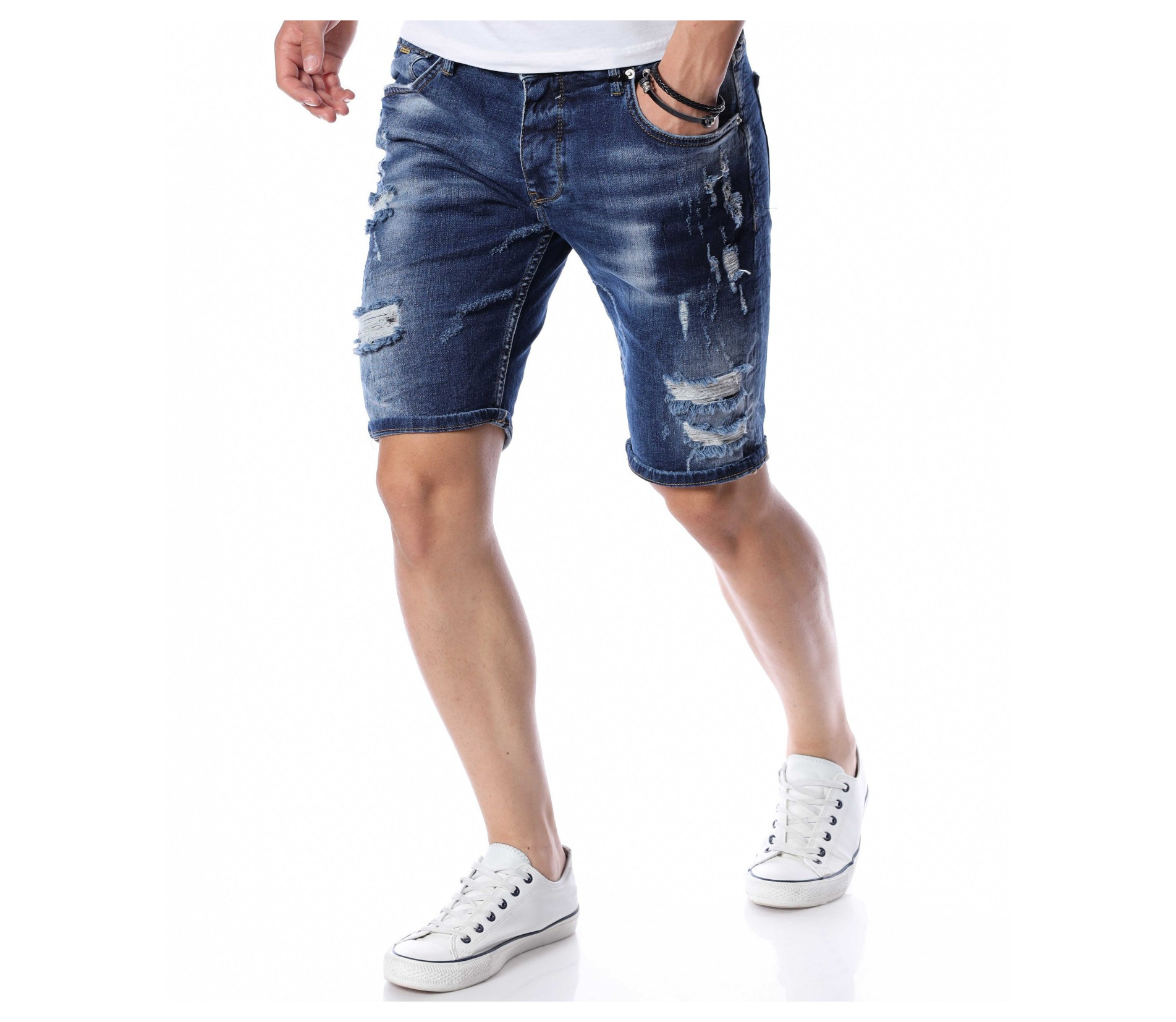 ОПИСАНИЕ НА ПРОДУКТА: В сезона на забавлението и доброто настроение, е важно да пренесете тези емоции и върху дрехите си. За да Ви помогнем с избора, Ви представяме един модел мъжки къси дънки, чиято основа е в класически син деним. Уникалността на джинсите се откроява в лицето на кръпки, разположени хаотично по цялата основа, както и на фабричните избелвания по цялата дължина на модела. От страна на кройката, мъжките къси дънки са изработени в slim fit линия, с дължина стигаща до коляното. Тук се открива и възможността да ги навиете, така че да бъдат по Ваш вкус. Закопчаването им се състои от малки копчета, скрити под маншет, и едно по-голямо външно. Завършителния щрих са класическите два предни и два задни джоба, придаващи автентичност на моделът.