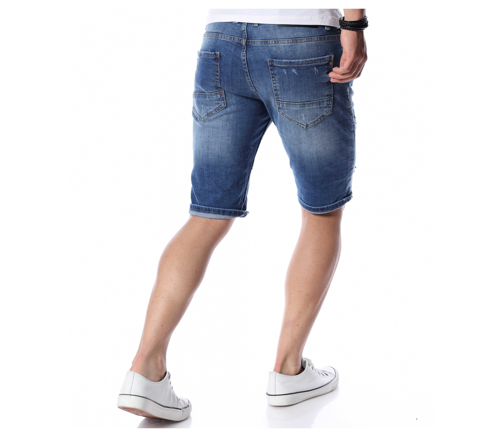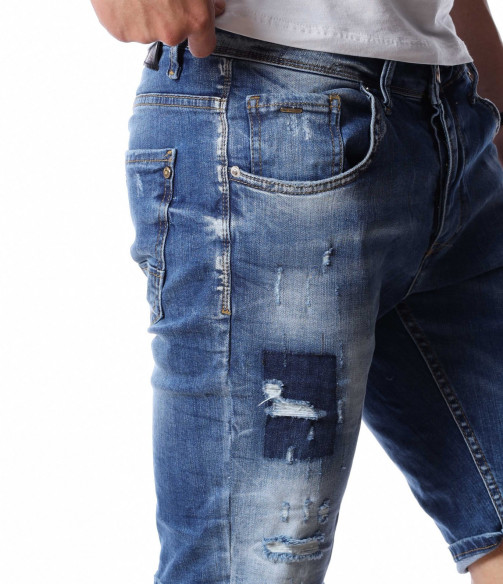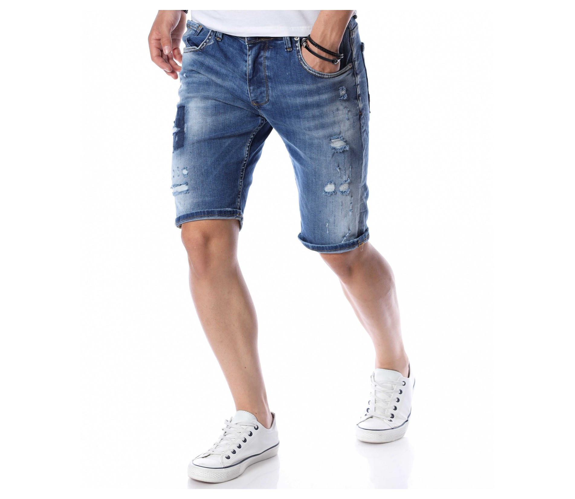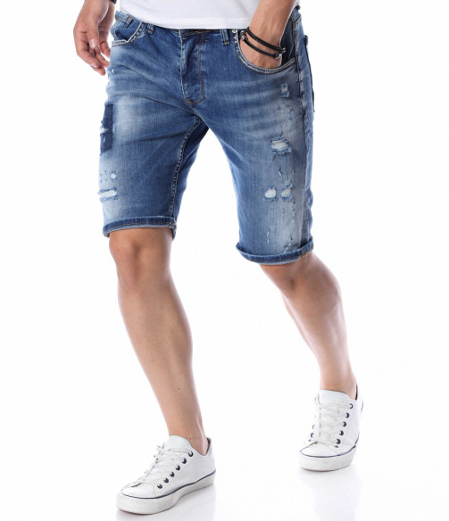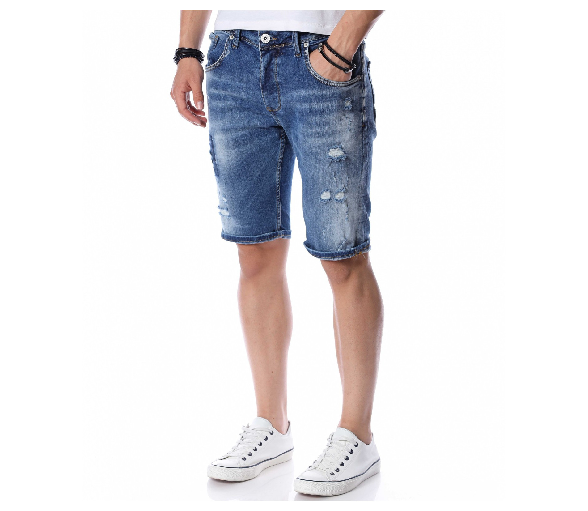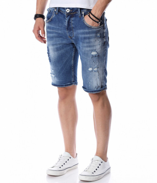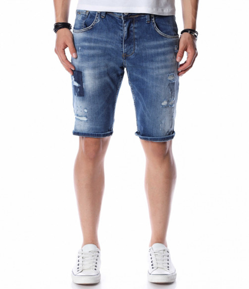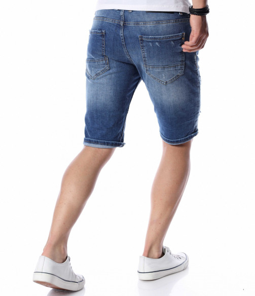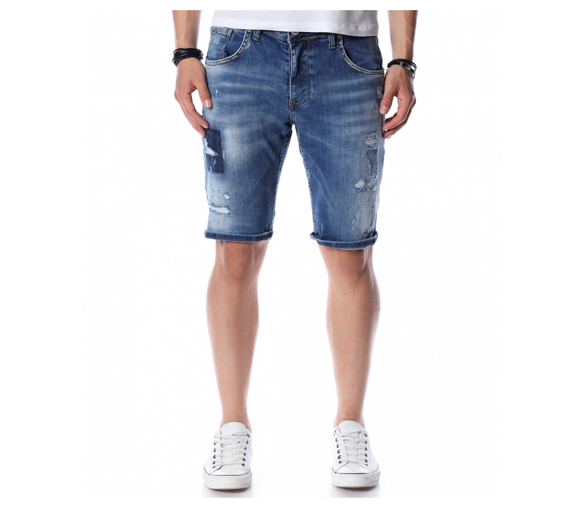 ОПИСАНИЕ НА ПРОДУКТА: С наближаването на топлия сезон е време да заредите гардероба с подходящите дрехи. Представяме Ви един модел супер актуални къси дънки, ефектно намачкани по цялата дължина. В областта на коляното денимът е с възможност за навиване, с което Ви дава разнообразие при носенето му. В предната част са поставени леко накъсани елементи, които внасят street излъчване в стайлинга на дънките, като небрежно Ви отнасят към топ визията за сезона. По цялата дължина са поставени по светли кантове, които контрастират на класическия син цвят и Ви гарантира оригинално излъчване. В предната и задната част са поставени по два дълбоки джоба, осигуряващи Ви комфорт. Дължината на късите мъжки дънки е над коляното, а дълбочината е стандартна. Смело експериментирайте, като съчетавате късите джинси с щури тениски или ризи, модерни обувки и любимите аксесоари.