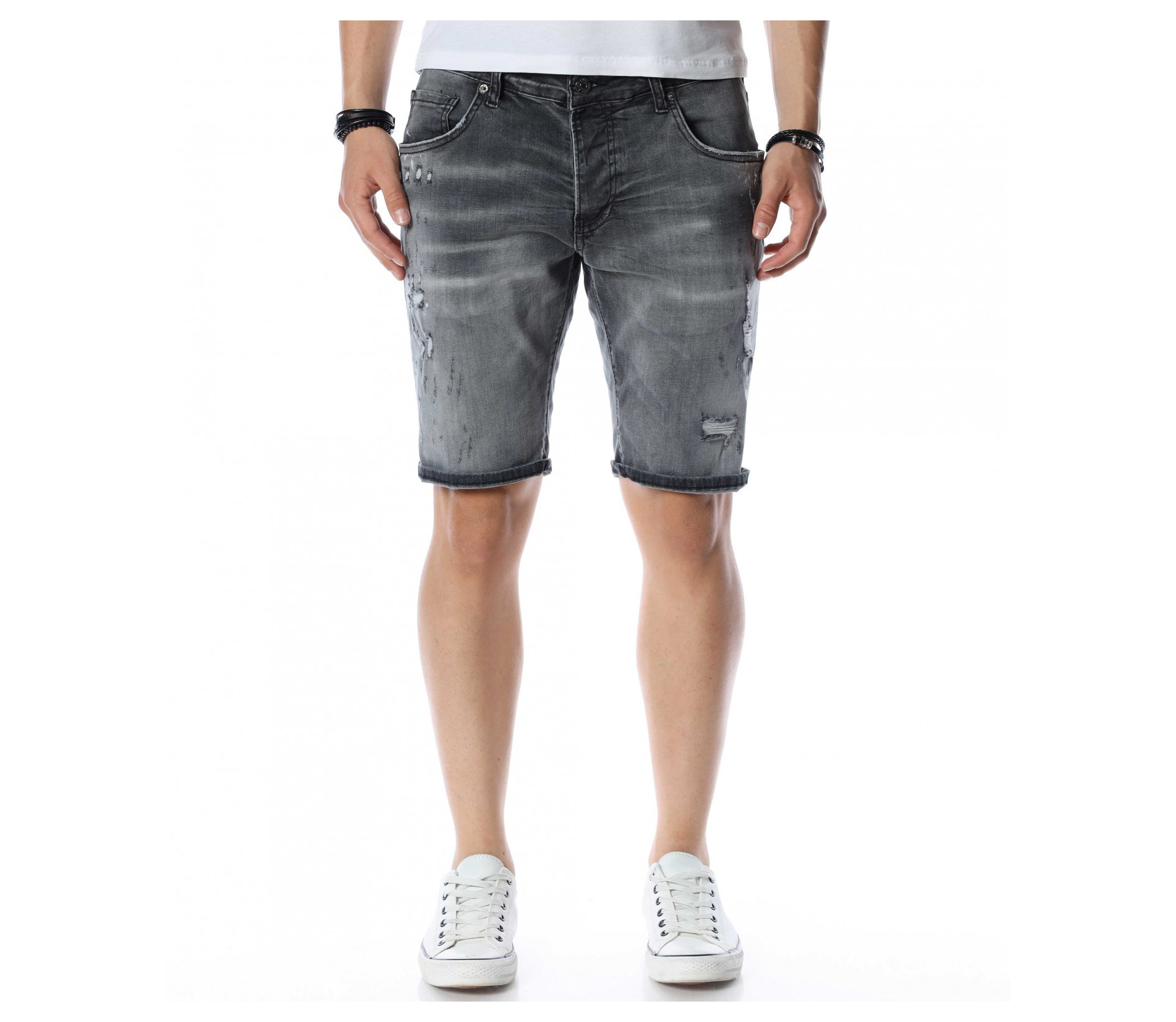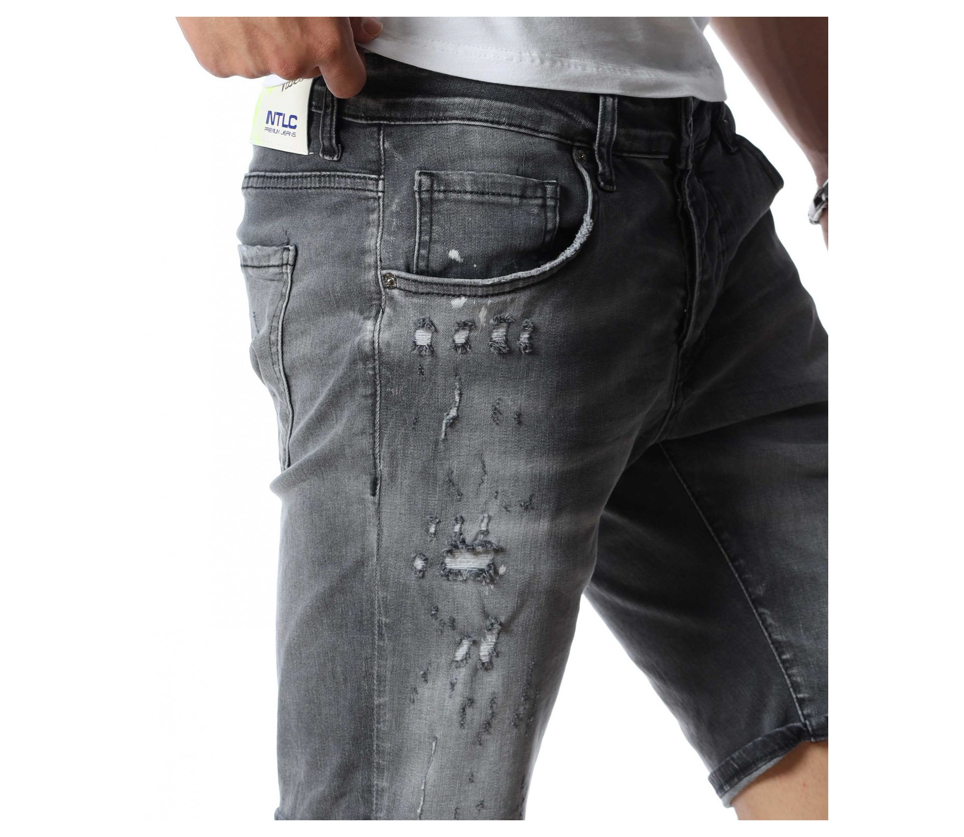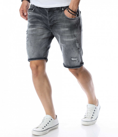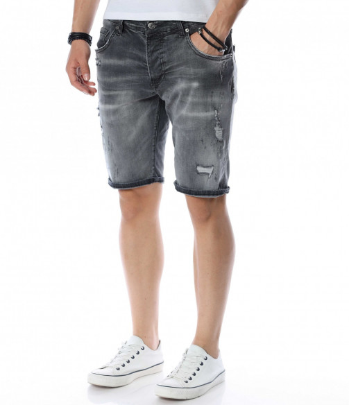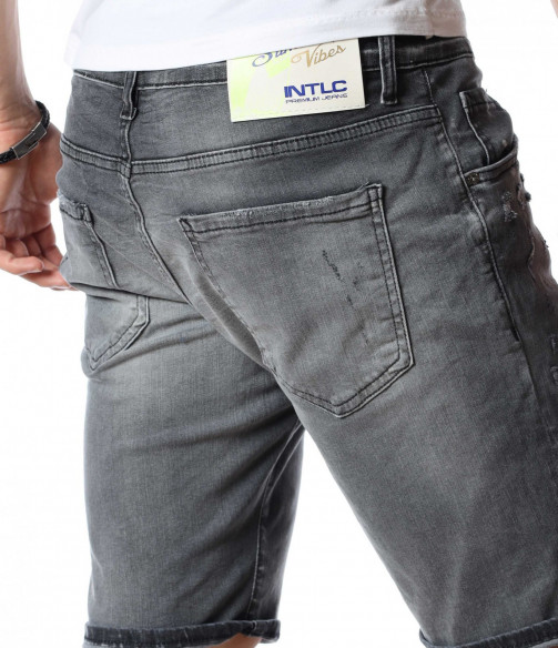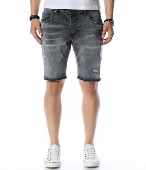 ОПИСАНИЕ НА ПРОДУКТА: Мъжки атрактивни светло сиви дънки с интересен ефект. Този модел къси панталони от дънков плат впечатлява със своя нестандартен дизайн. Ефектни и изключително стилни - перфектно пасващи на всеки стайлинг. На фона на сивия цвят се забелязват фабрично изтъркани и накъсани елементи, които идеално създават контраст с нотка модно излъчване. Както в предната, така и в задната страна на дънките са поставени два джоба. В задната страна в областта на колана е разположено парче кожа с името на марката. Дължината на модела е до коляното, като има възможност за допълнителен подгъв според вашето желание. Кройката е вталена и леко еластична. Бъди в крак с модните тенденции и заложи на нещо екстравагантно и определено много стилно. Смело съчетай с цветен тишърт за един завършен аутфит.