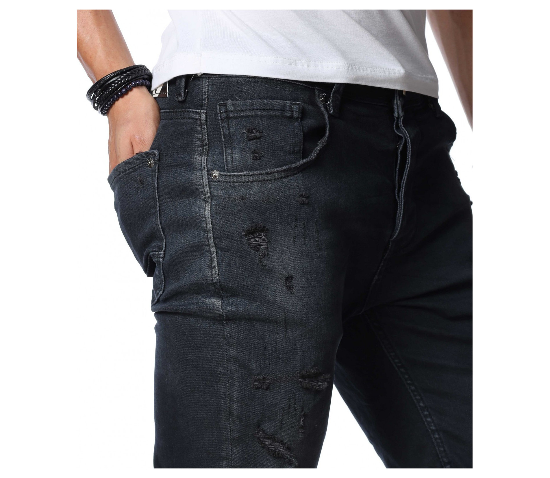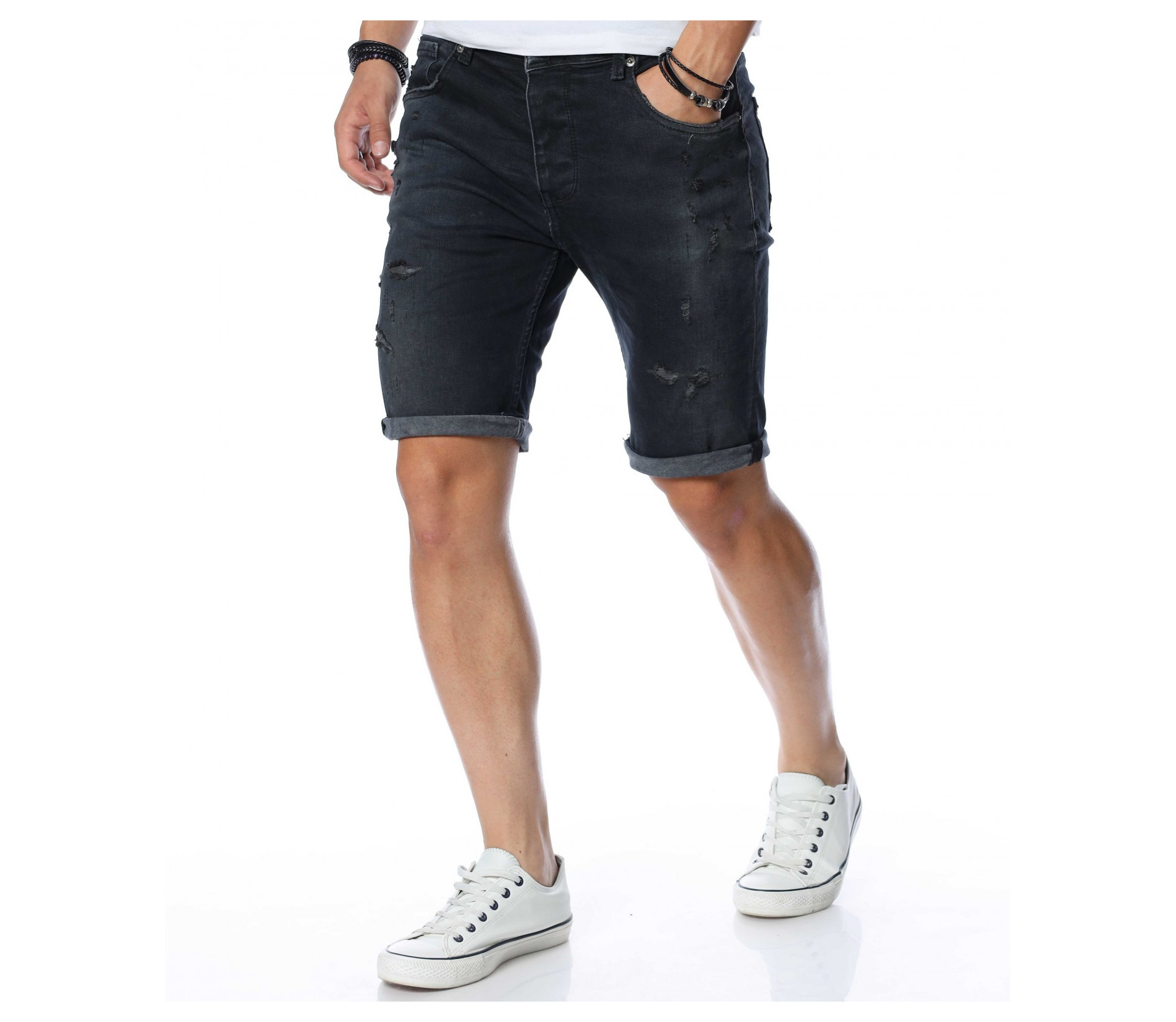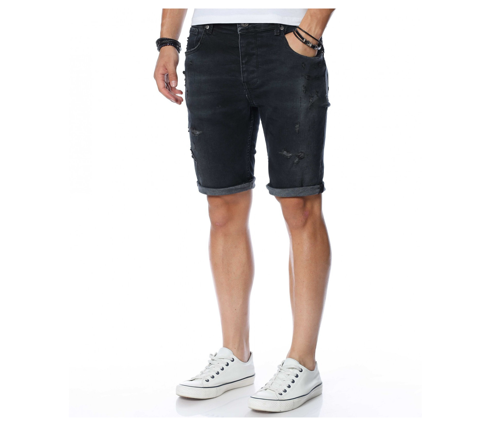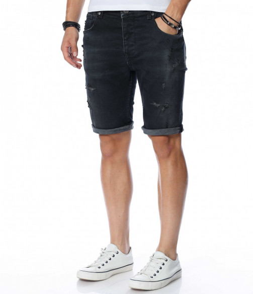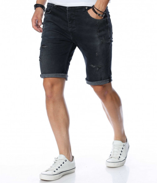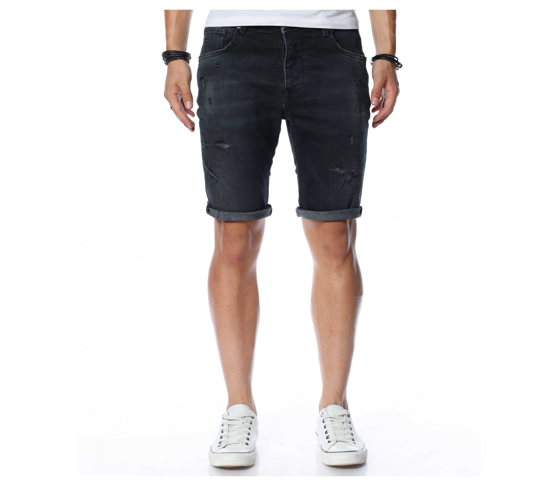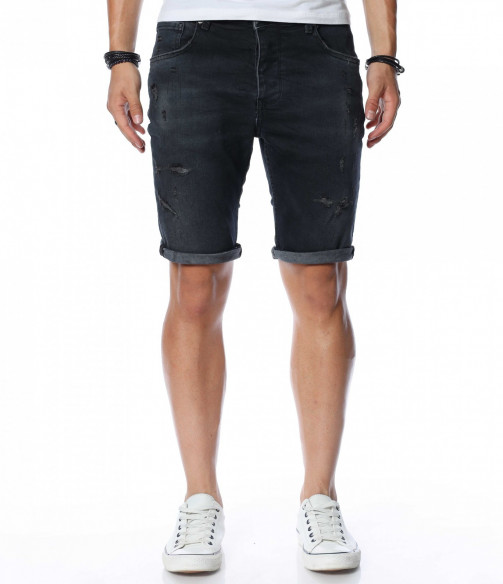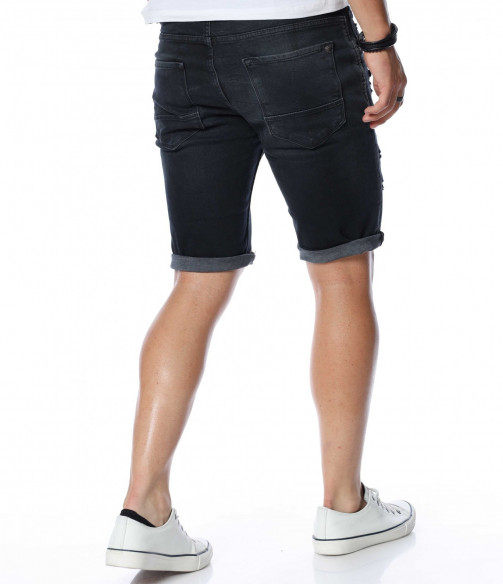 ОПИСАНИЕ НА ПРОДУКТА: Традиционни мъжки къси дънкови панталони, които изграждат ефектна визия с лекота. Основният десен е тъмно син, като по основата му са разположени няколко декоративни накъсани части, които вдъхват усещане за лятно настроение. Линията е вталена и наситена с еластичност, което е сигурен знак за гарантирано удобство на тялото Ви. В лицето на дължината откриваме една класическа такава в 3/4 размер, достигаща коляното, но при желание може да се подвие деликатно и да се пресъздаде по-къс вариант. Неизменна част от всеки модел дънки са джобовете. Тук също ги откриваме в добре познатият ни вид, а именно два големи външни отзад и в вътрешни, разположени от двете страни на закопчаването. То от своя страна е автентично и предпочитано, а именно състои е от три малки копчета под маншет и едно главно, разположено при колана. За комбинация може да експериментирате с разнообразни нюанси и модели тениски и ризи, за да изграждате всеки пък нов и ефектен стайлинг.