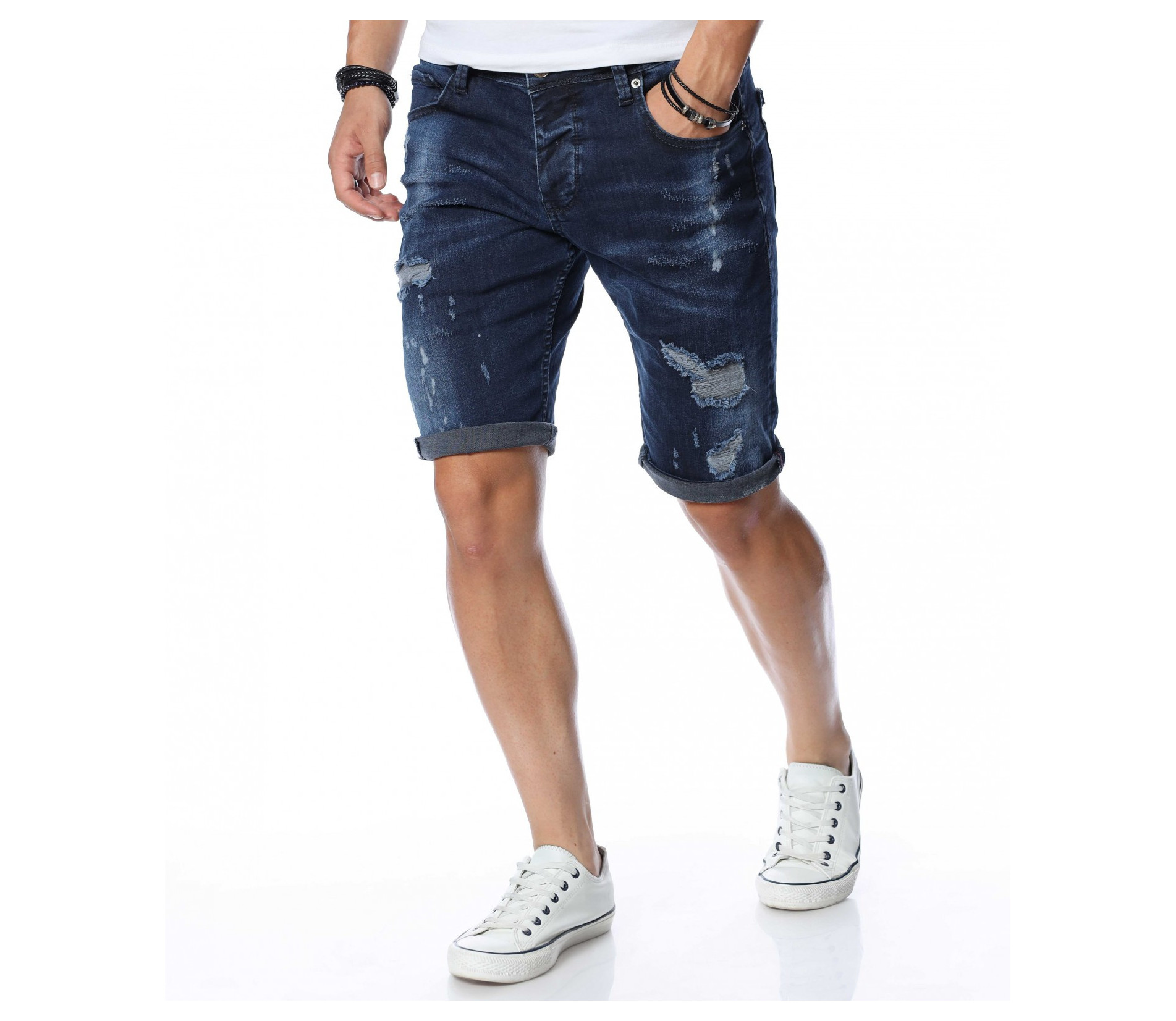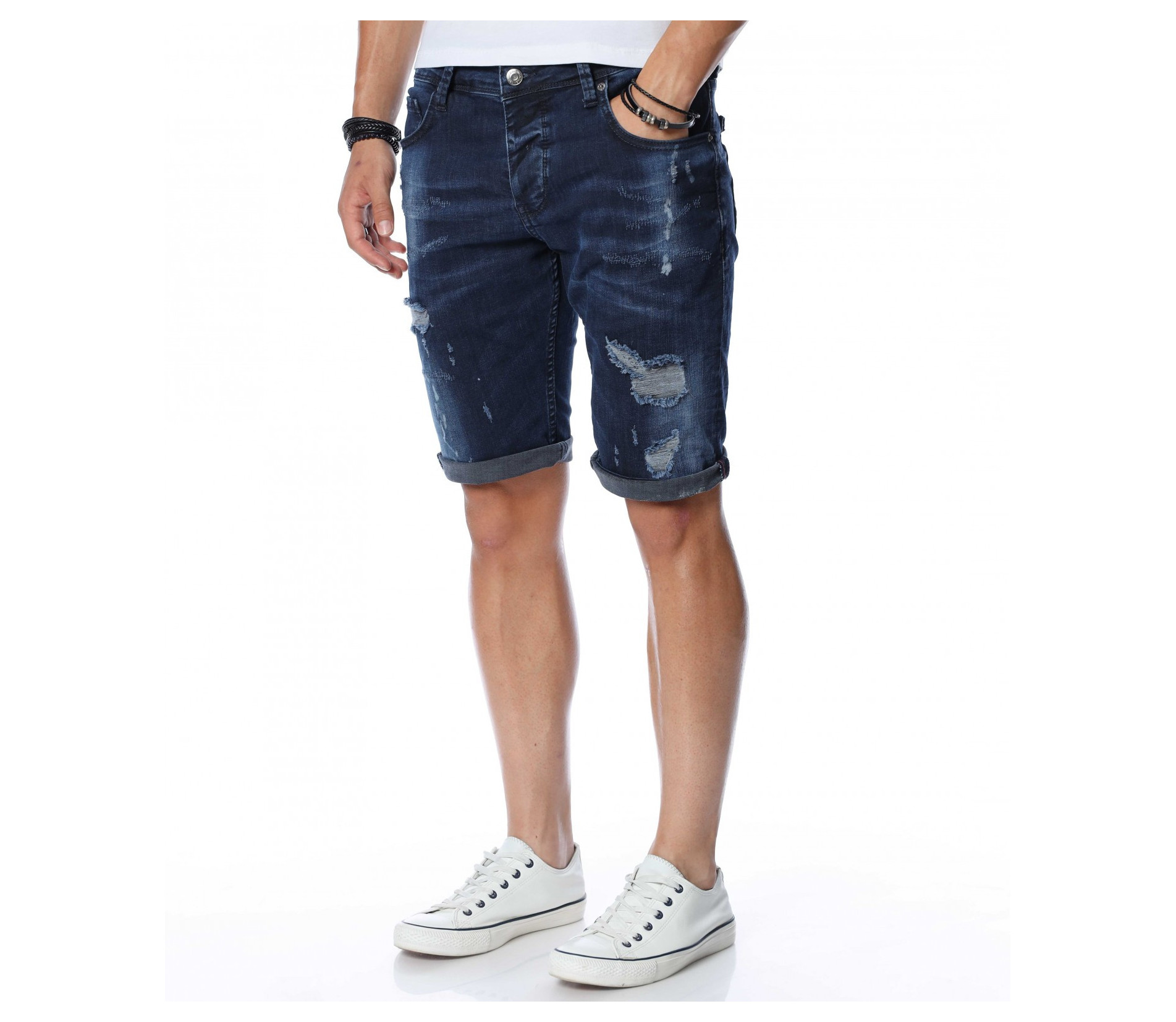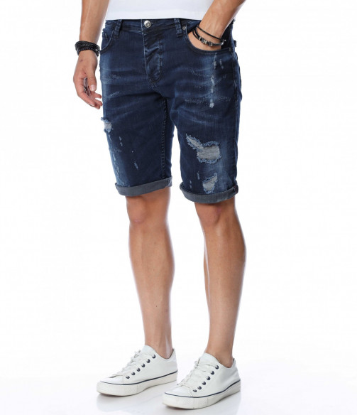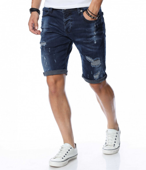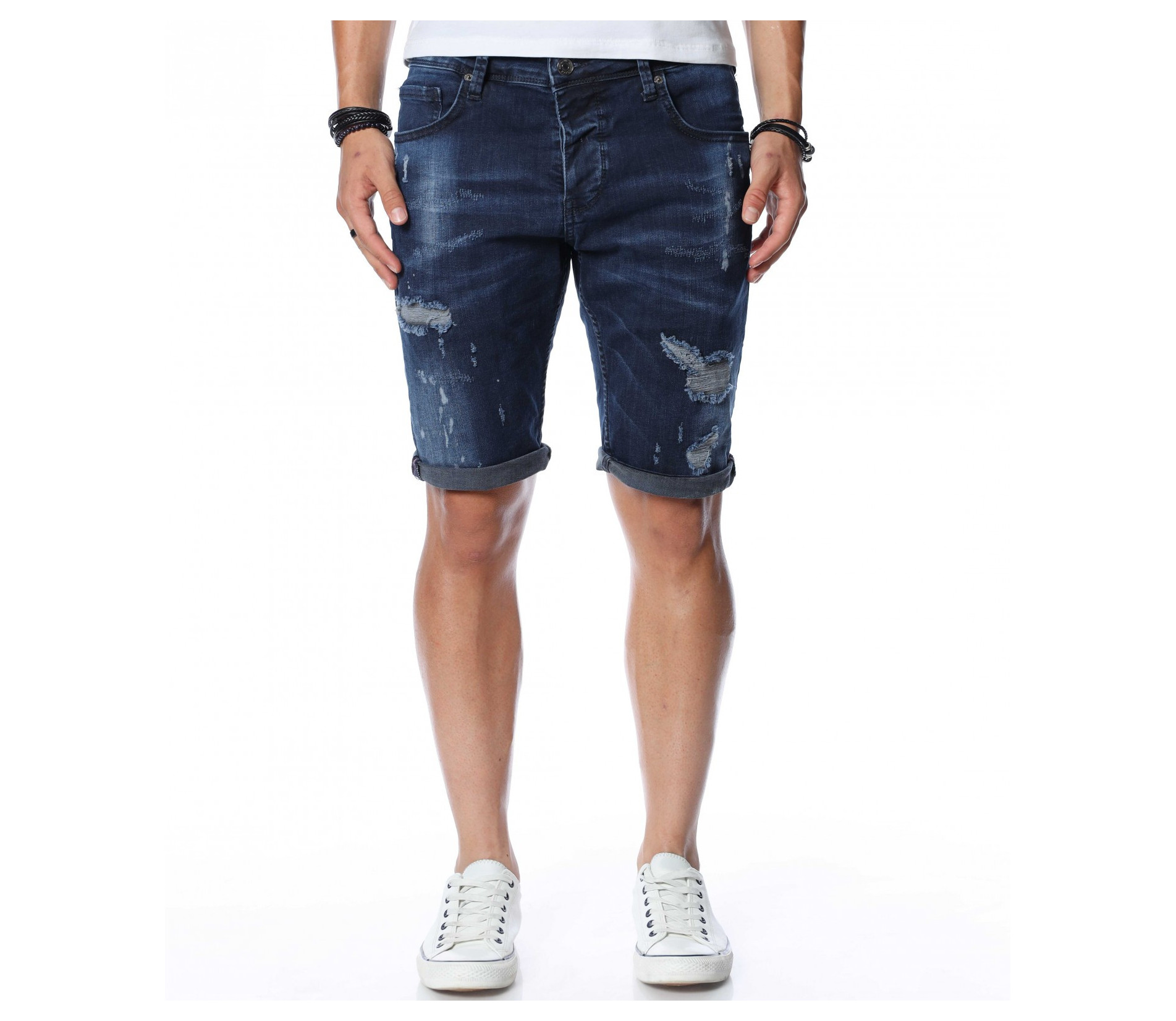 ОПИСАНИЕ НА ПРОДУКТА: За да се придържаме към новите модни тенденции, този сезон сме ви подбрали актуален и най-предпочитан модел къси дънки. Те са задължителни за всеки мъжки гардероб и намират голямо приложение в ежедневието. Подготвили сме ви - къси, дънкови панталони с небрежно накъсани, фабрично елементи за декорация. Кройката е вталена, следваща линиите на тялото, и същевременно даваща достатъчно свобода и комфорт на движение, благодарение на меката си и удобна материя. В предната и в задната част са разположени стандартни джобове, а закопчаването се състои от малки копчета под дънков маншет и голямо копче на талията. Напълно подходящи за изграждане на свежа лятна визия и може да ги съчетаете с тениска и подходящи кецове.