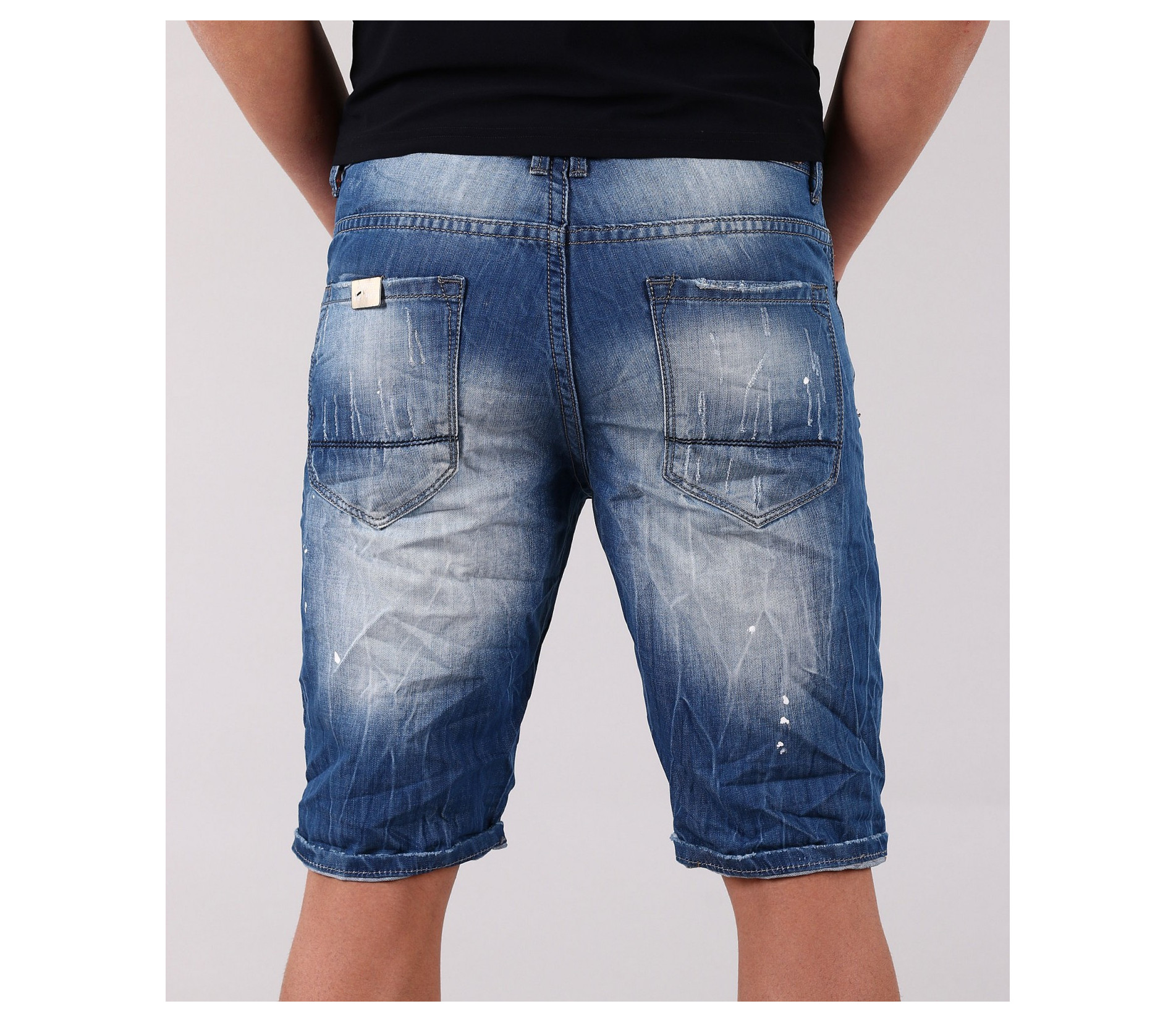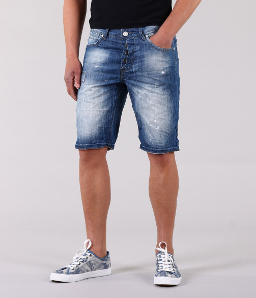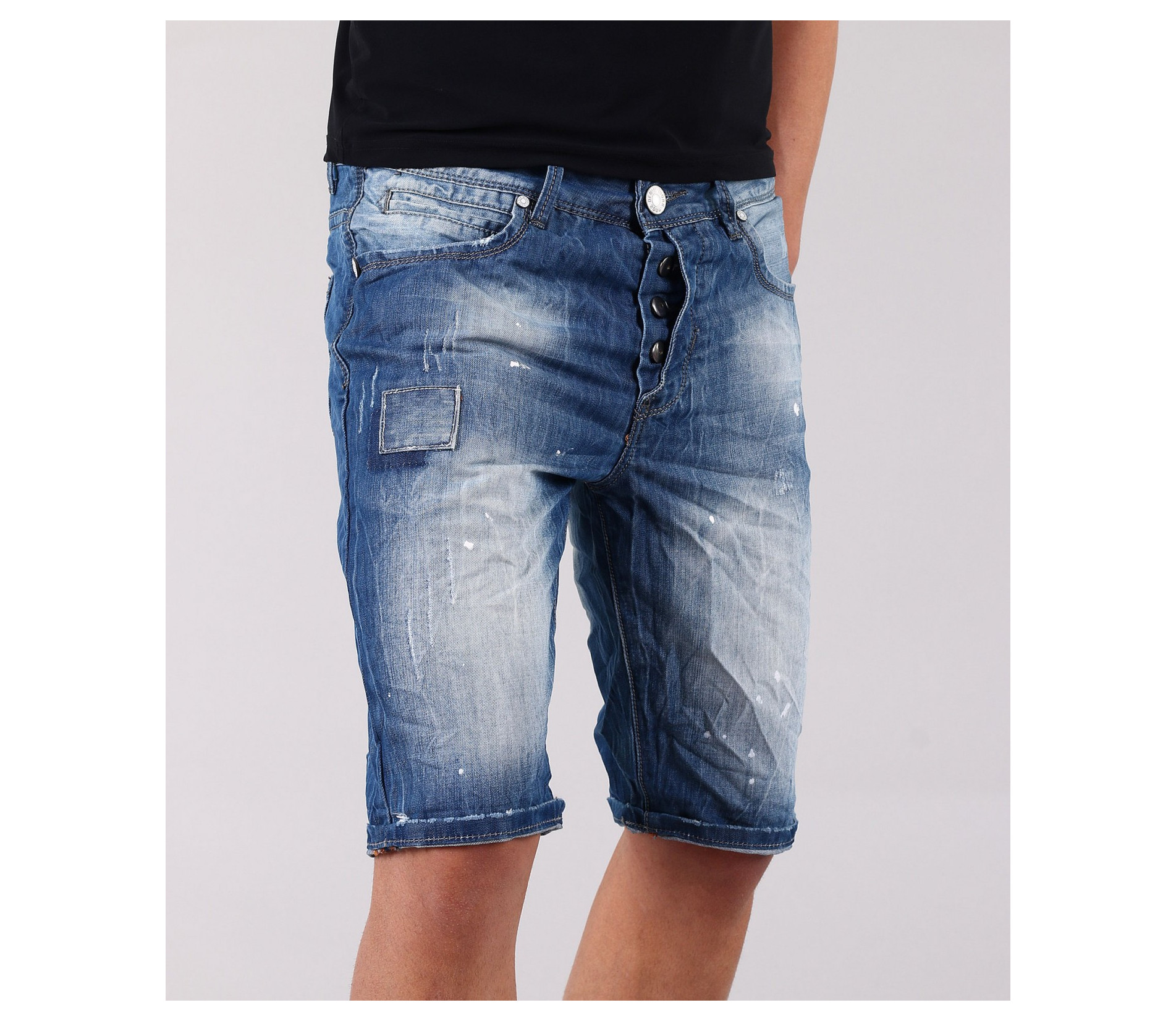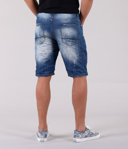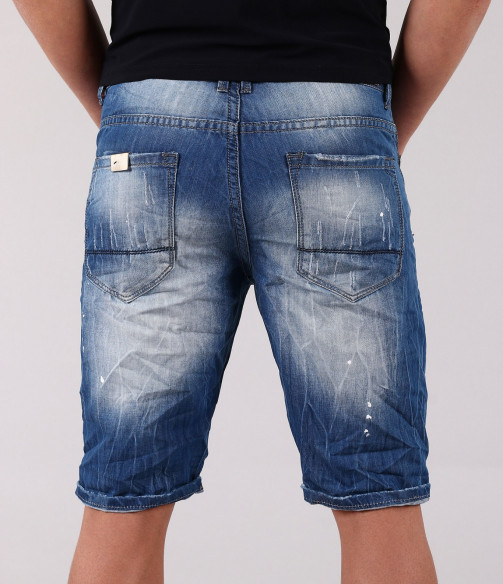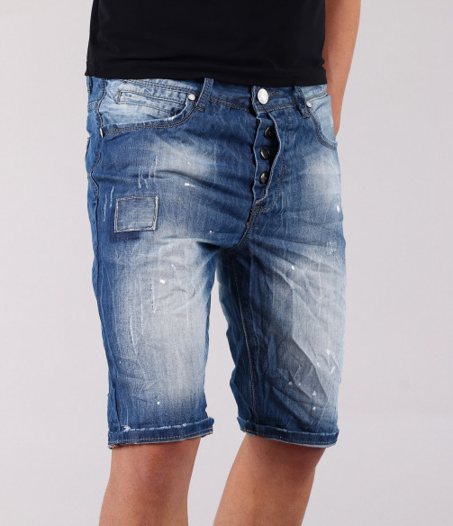 Описание на продукта: Ето едно предложение за феновете на по разджижените модели.Светли къси дънки с бели пръски по целия модел, наподобяващи боя. Като акцент в предната част е поставена кръпка в по тъмния нюанс на синия цвят. Дължината е стандартна, над коляното, но има възможност за навиване и може да си я напаснете по ваш вкус. Има два предни и два задни дълбоки джоба. Закопчаването е с копчета, които са поставени от външната страна, за по раздвижена визия.Изработени са от 80%висококачествен памук и 20%полиестер.