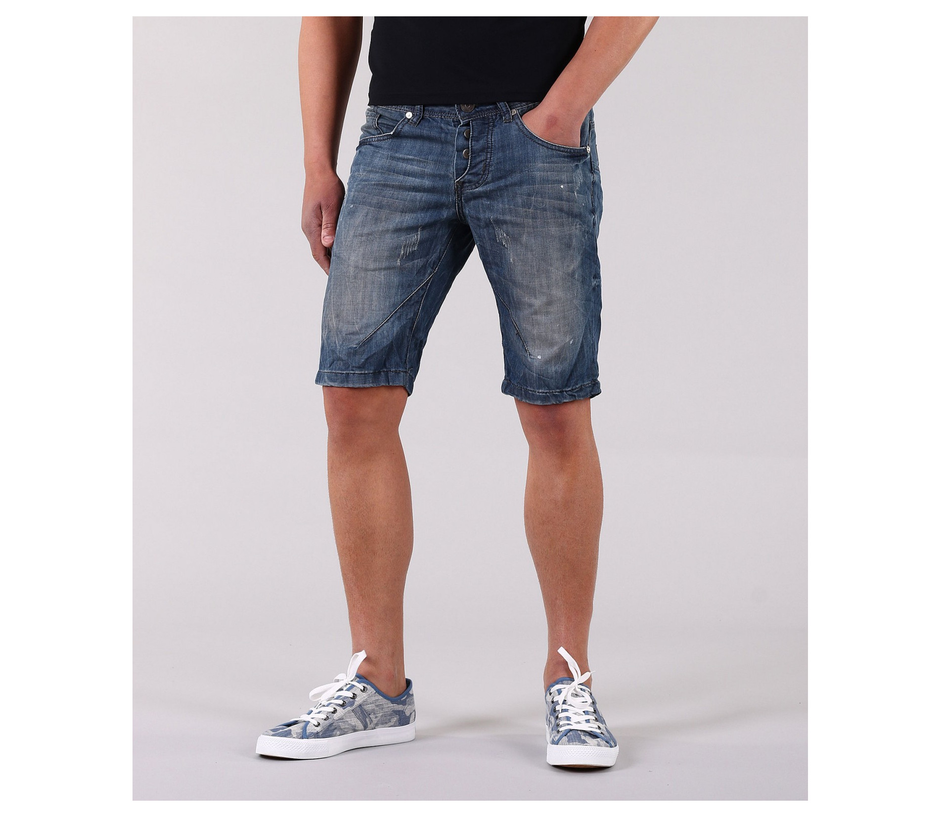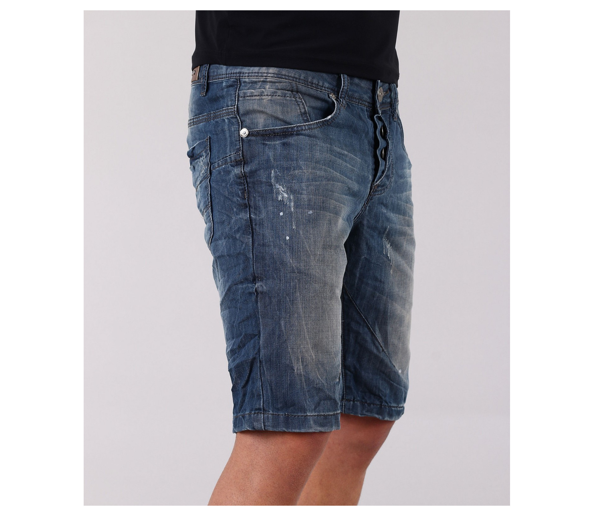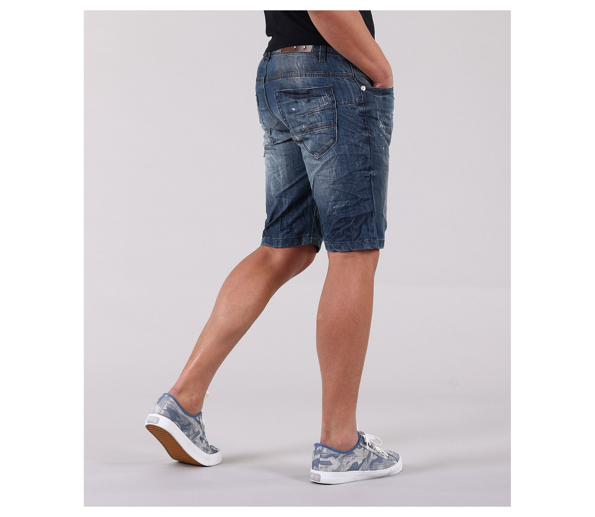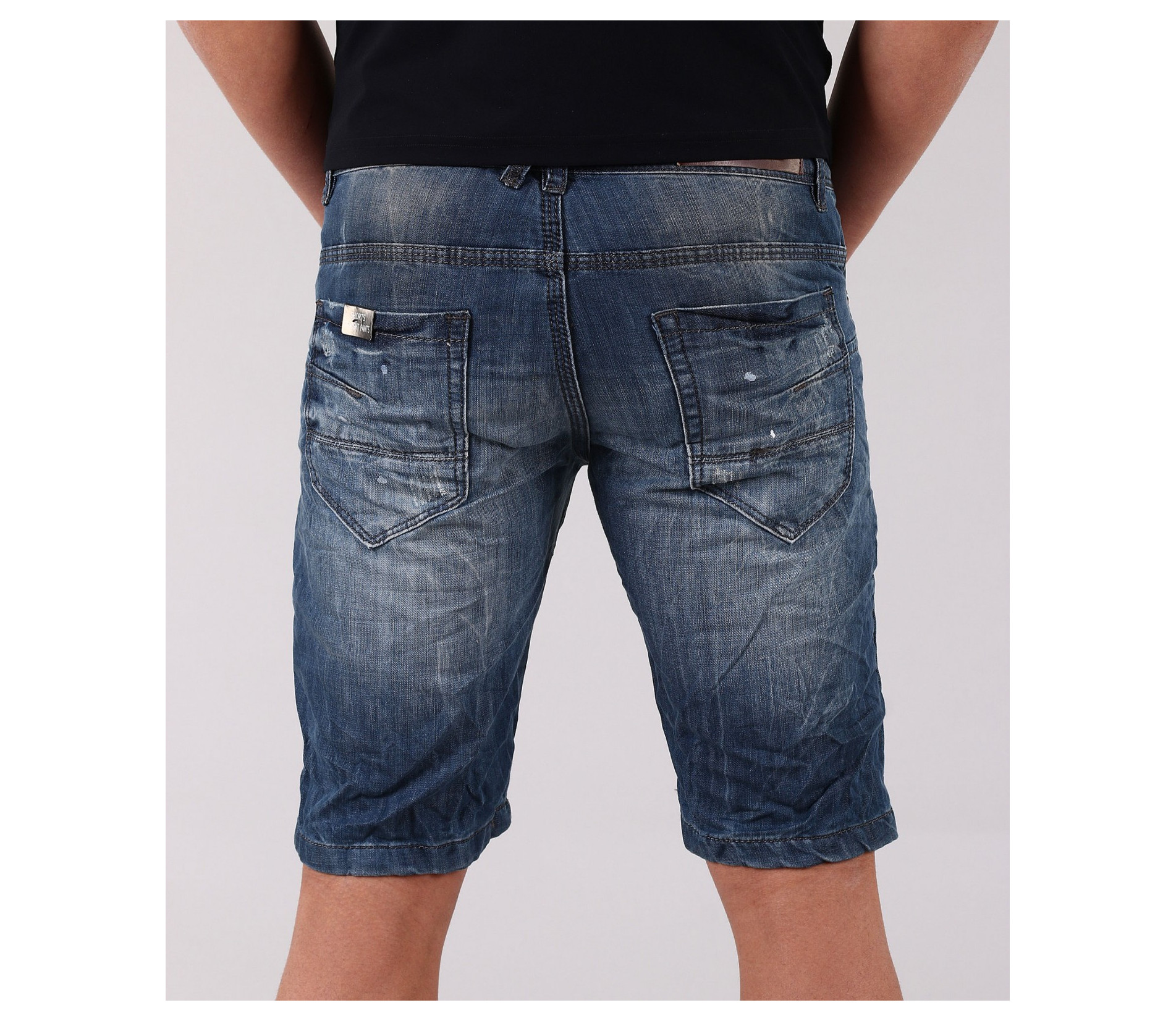 Описание на продукта: Това е едно семпло и стилно предложение за Вас. Изчисатени къси дънки с дължина до коляното. Има два предни и два задни джоба.В предната част, както и на задните джобове, небрежно са поставени външни шевове, като акцент.Съчетани с цветна тениска с спортни кецове, това е страхотна комбинация за лятото. Изработен от 80% висококачествен памук и 20% полиестер, този модел съчетава стила и удобството в едно.