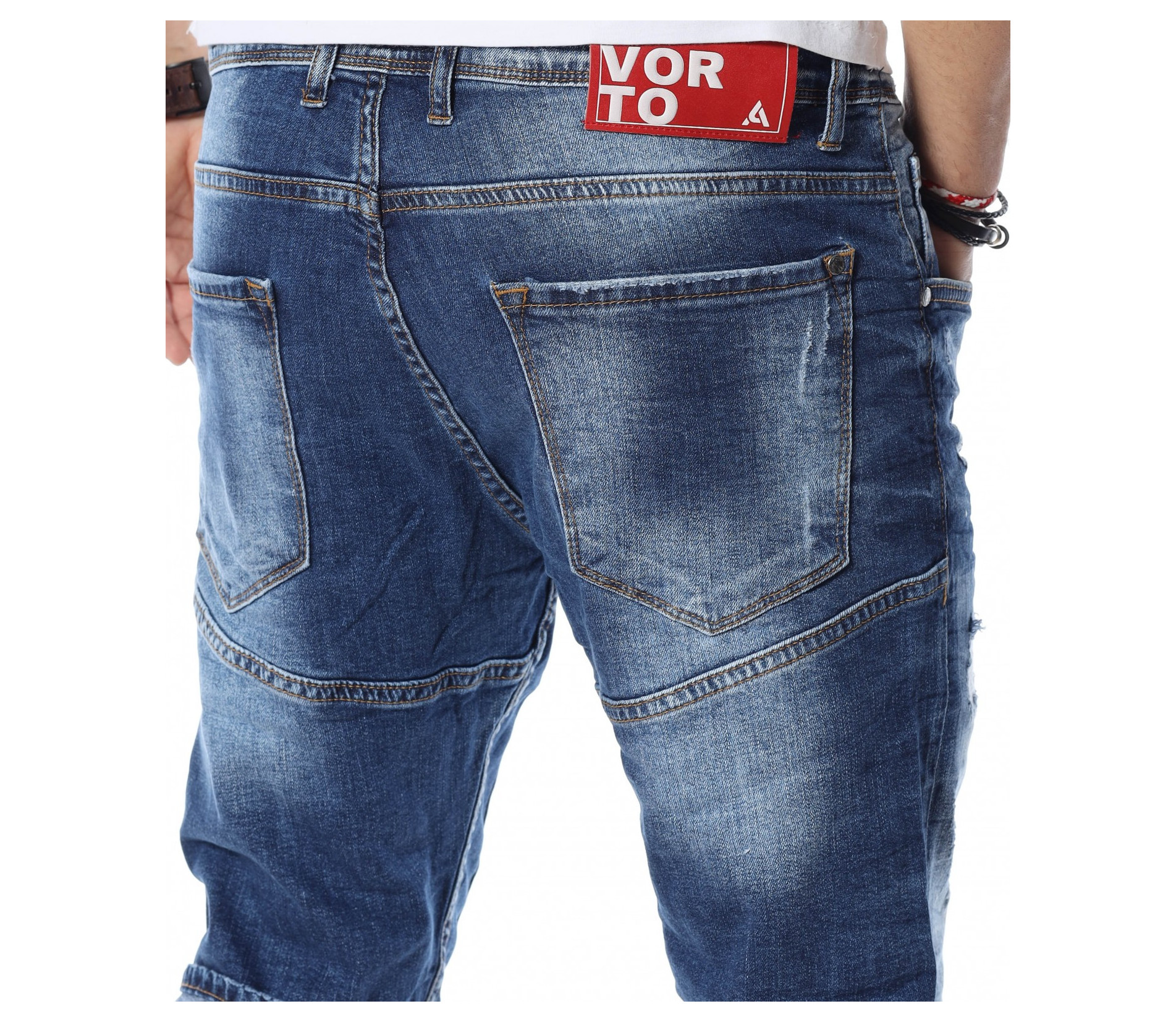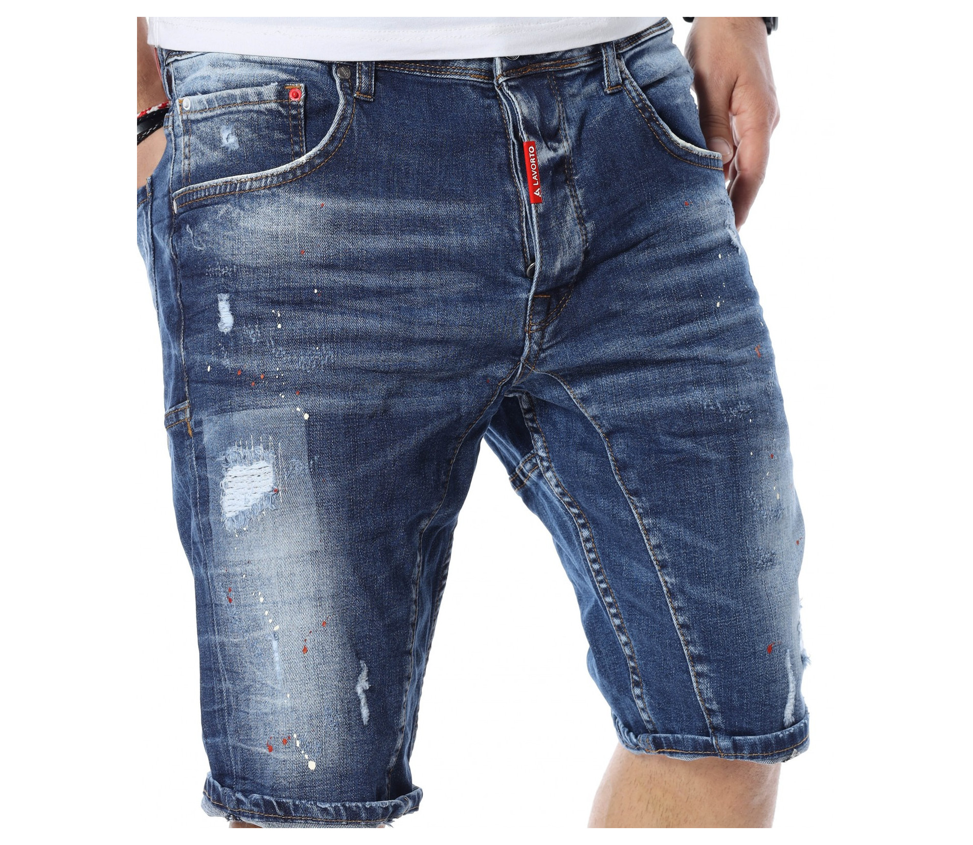 За пролетно-летният сезон сме ви подготвили мъжки сини дънки. Нюансът е между светло сини и бели части над коляното, пренесени и в задната част, където се намират два стандартни, дълбоки джоба. В предната част са разположени кръпки с подплатена форма, а по цялата дължина, моделът е напръскан с малки капчици - тип пръски от боя. Придайте свежа и актуална за сезона визия като комбинирате с подходящи кецове и тениска.