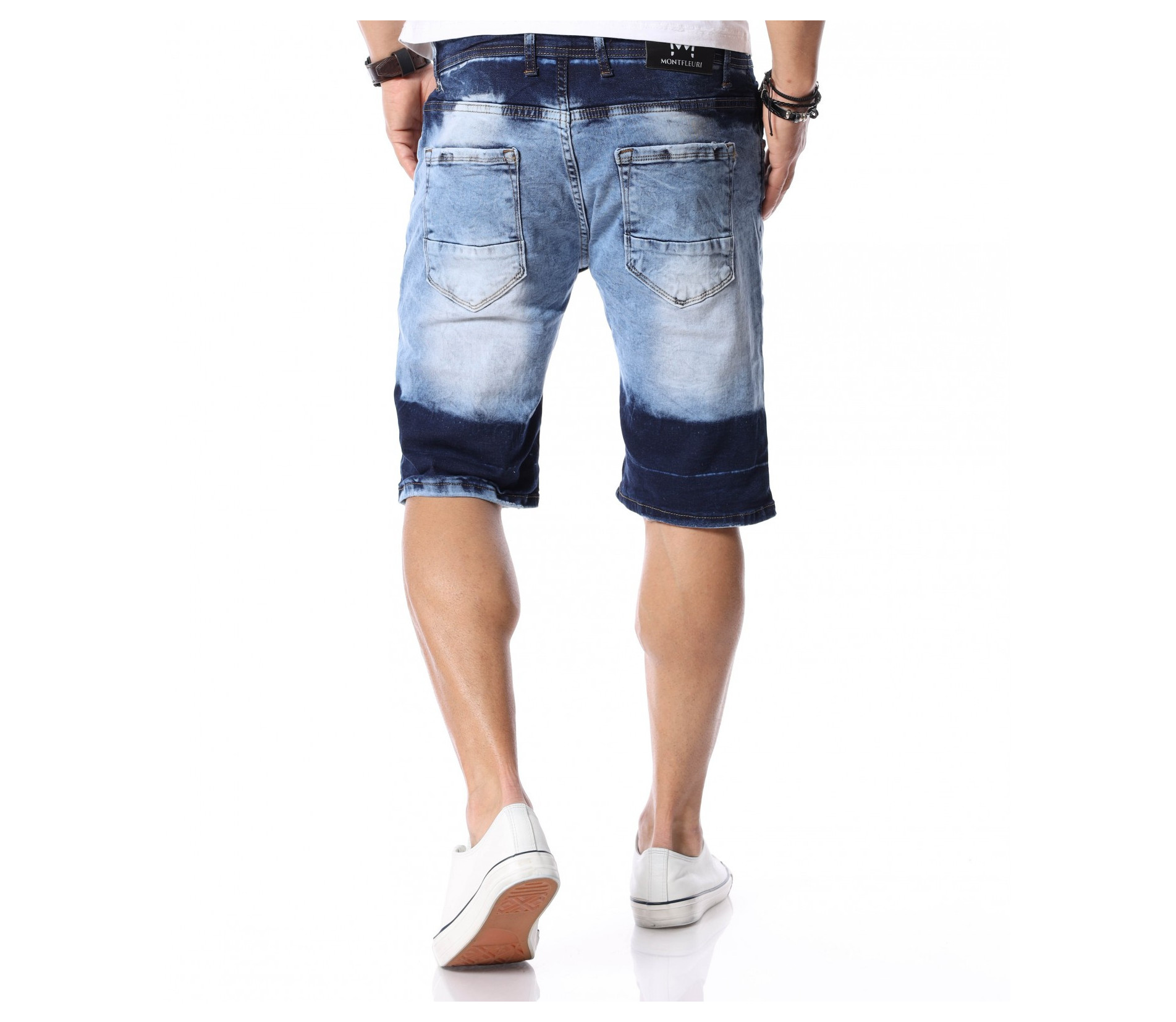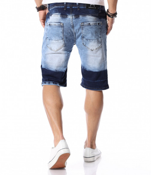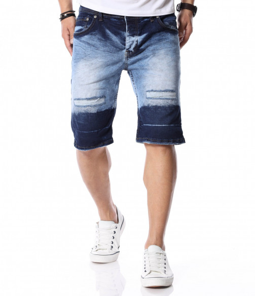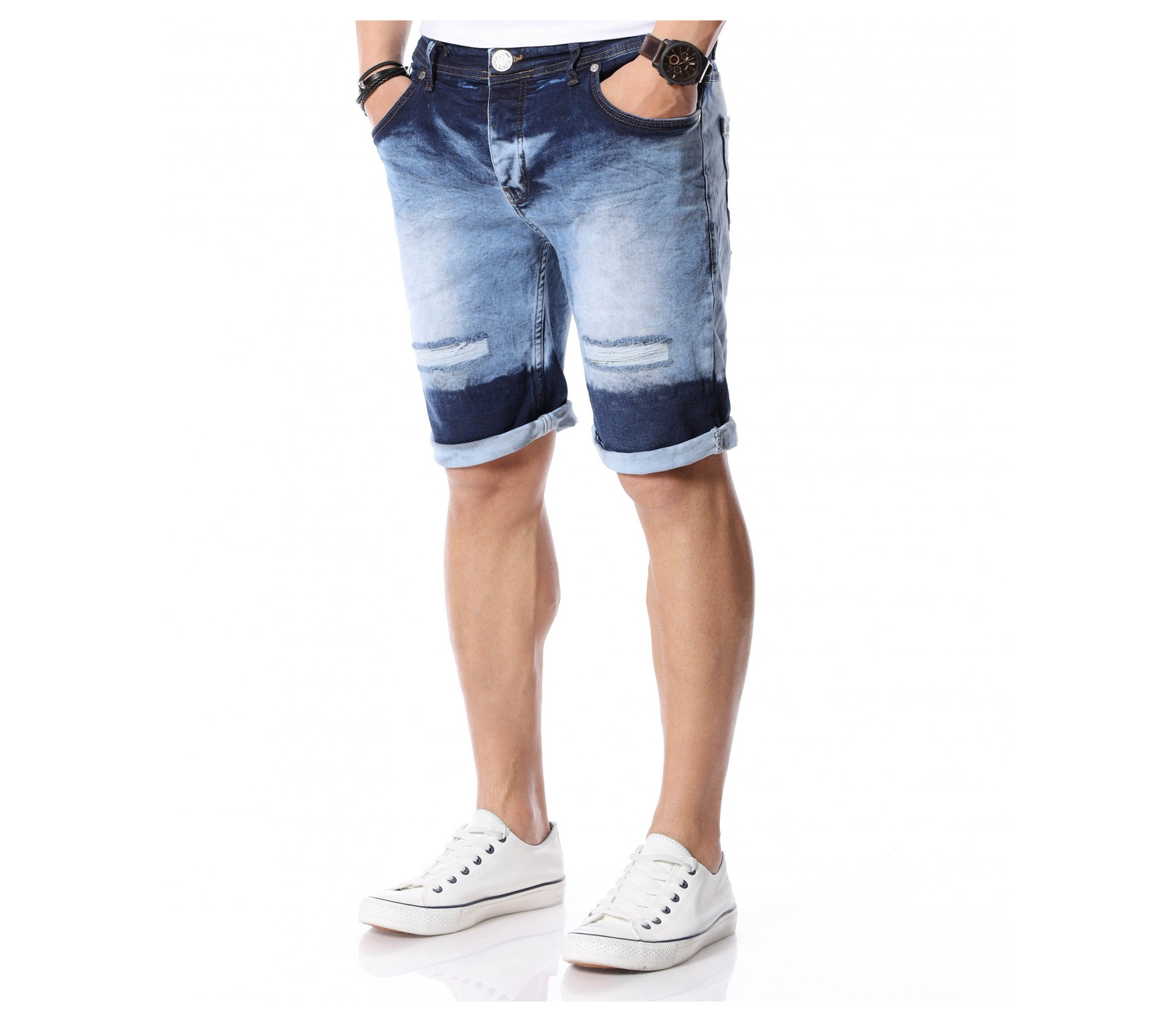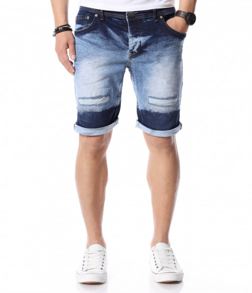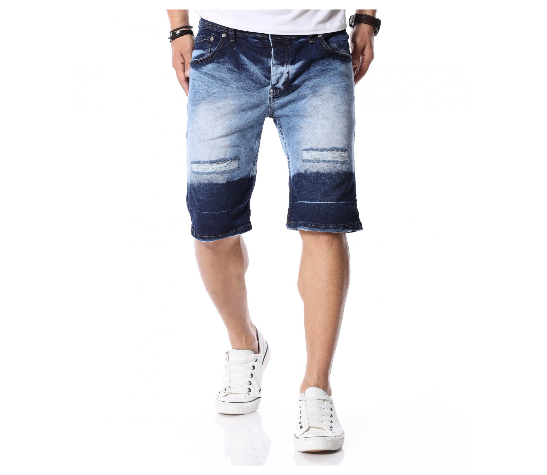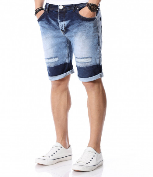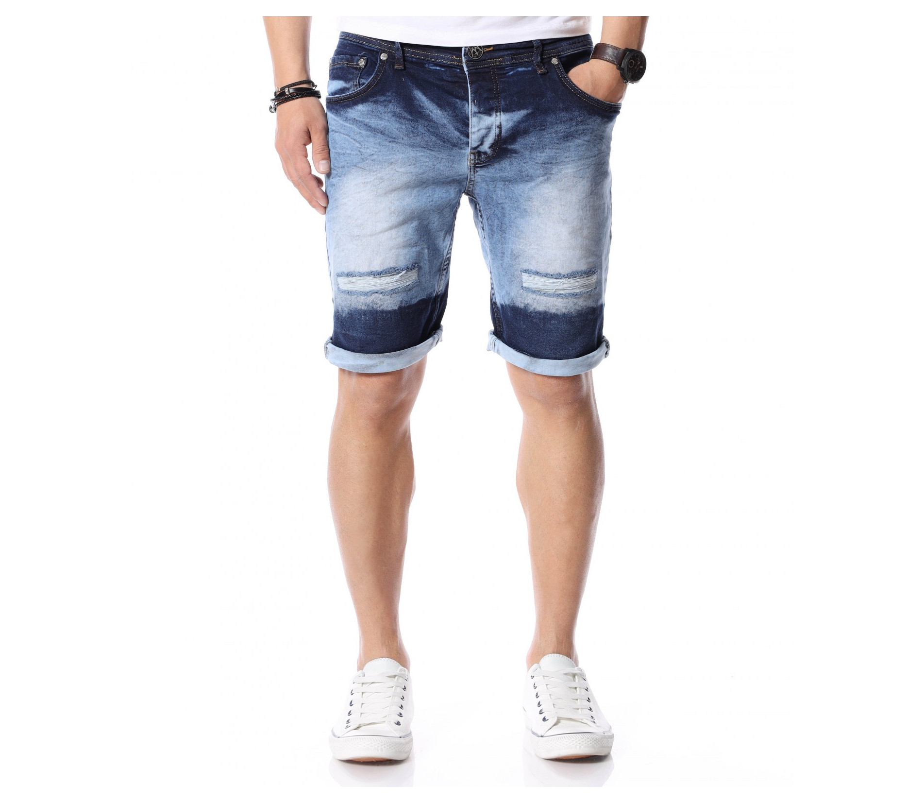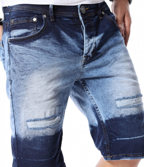 За да се придържаме към новите модни тенденции, този сезон сме ви подбрали актуален и най-предпочитан модел къси дънки. Те са задължителни за всеки мъжки гардероб и намират голямо приложение в ежедневието. Приготвили сме ви - къси, дънкови панталони, като по цялата им дължина откриваме интересно, преливащи се нюанси и фабрично накъсани елементи, над коляното. Кройката е вталена, следваща линиите на тялото, и същевременно даваща достатъчно свобода на движение, багодарение на меката си памучна материя. В предната и в задната част са разположени стандартни джобове, а закопчаването се състои в метален цип и копче на талията. Напълно подходящи за изграждане на свежа лятна визия и може да ги съчетаете с тениска и подходящи кецове.