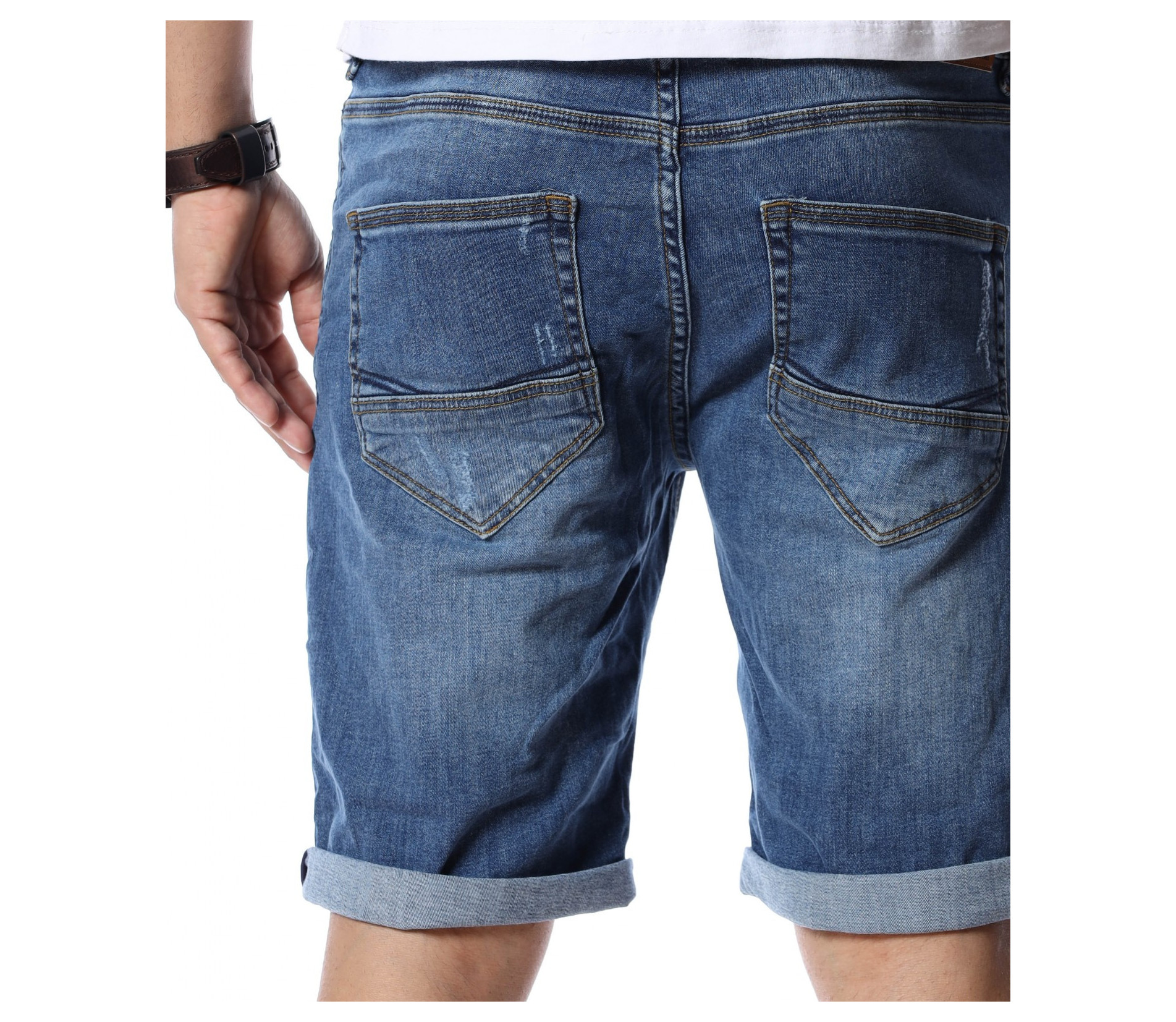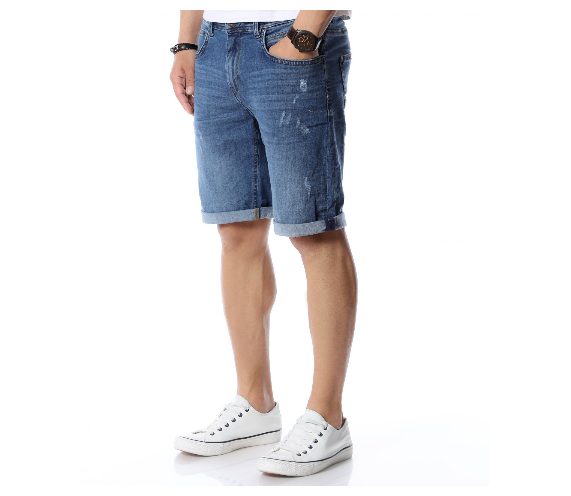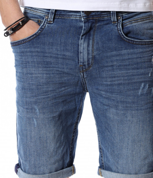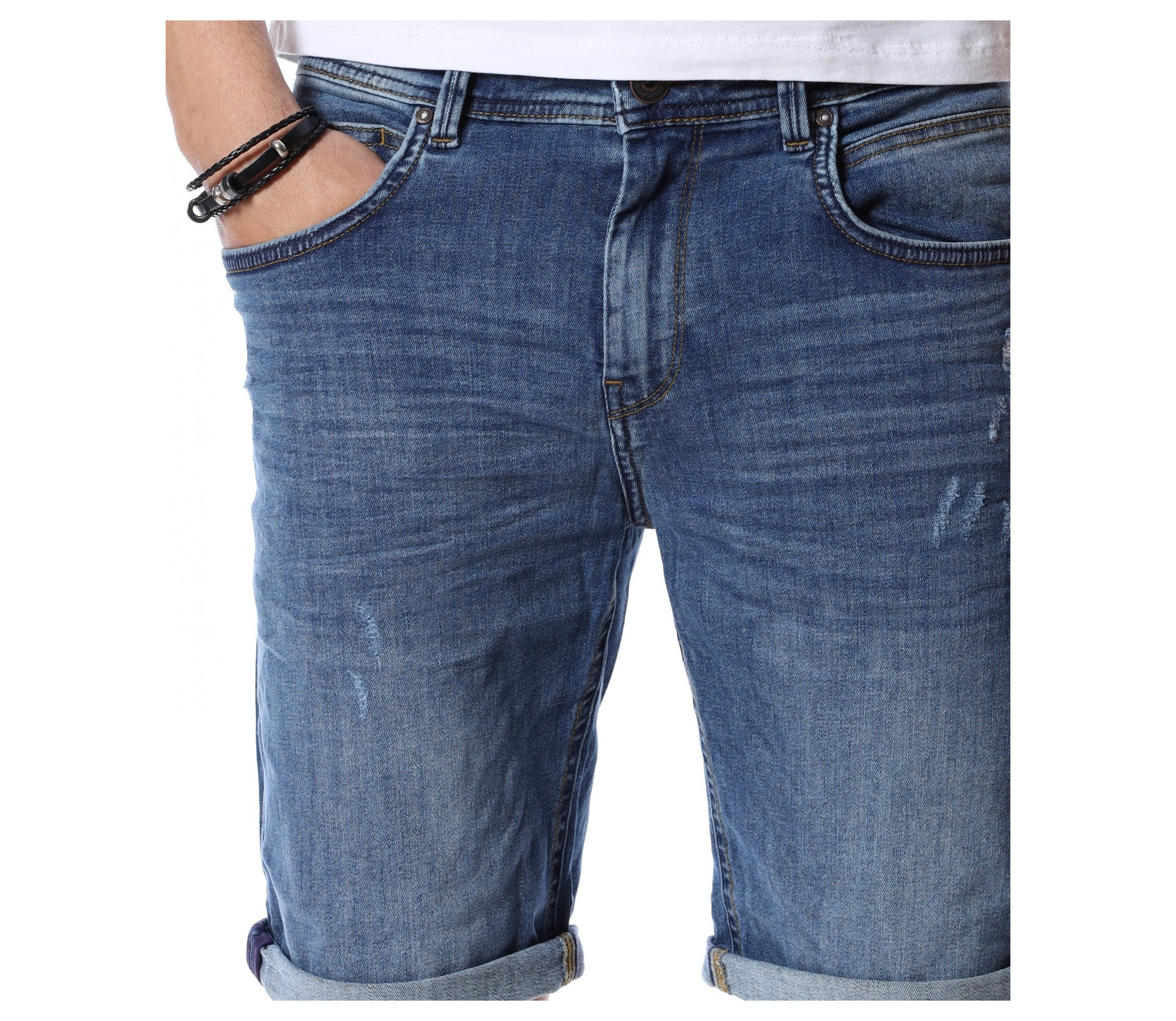 С наближаването на топлите дни е хубаво да помислите за обновяване на дънките във вашият гардероб, затова сме ви подготвили - къси, мъжки дънки. В предната част забелязваме леко намачкан ефект, придружен от семпло накъсани части. На талията са позиционирани гайки, на които да добавите колан по ваше желание, а под тях откриваме два стандартни джоба. В задната част са разположени два дълбоки джоба, а кройката е вталена, но предоставяща достатъчна свобода на движение. Меката материя ще ви осигури, така желаните комфорт и лекота. Комбинирайте с високи кецове и тениска.