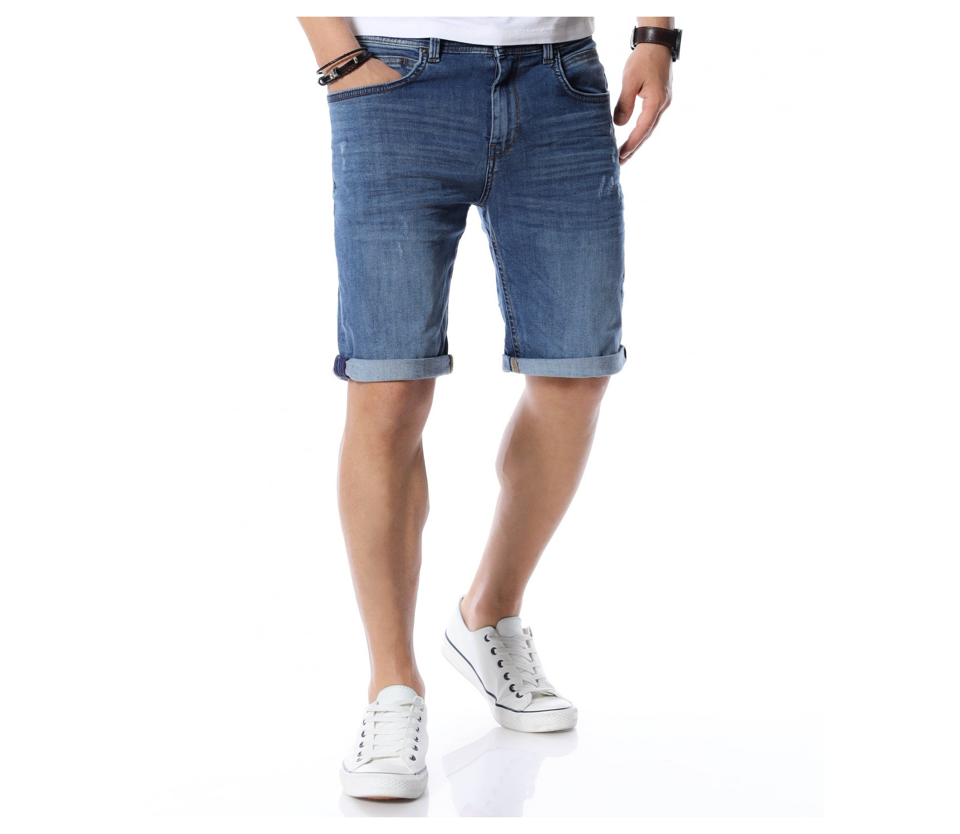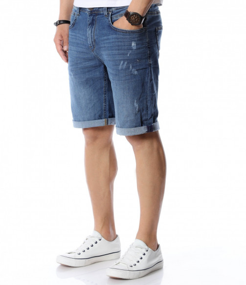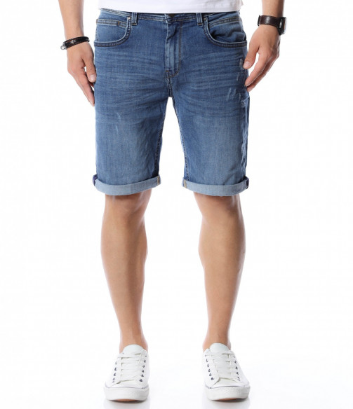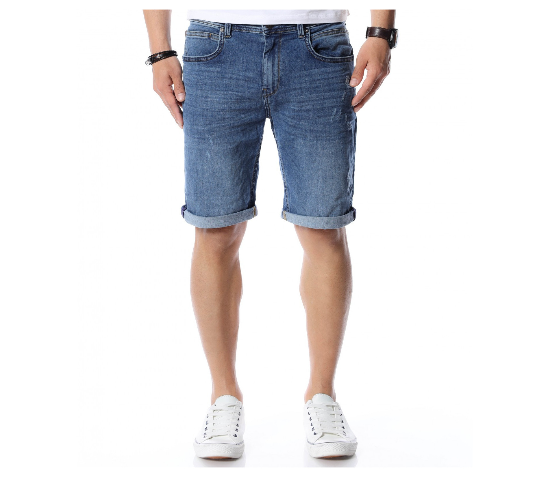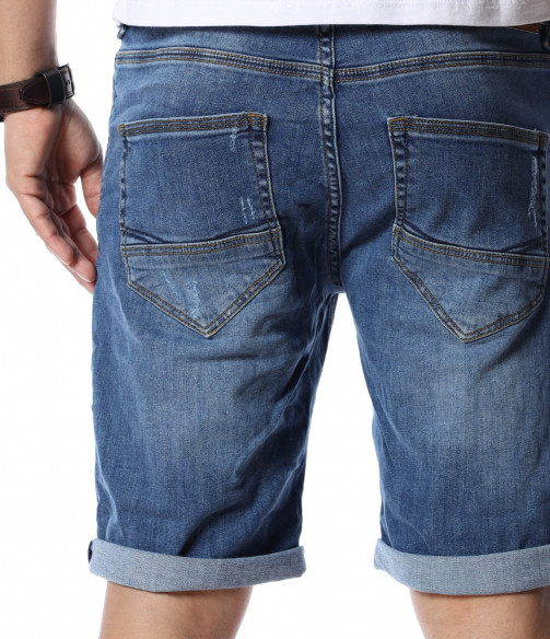 С наближаването на топлите дни е хубаво да помислите за обновяване на дънките във вашият гардероб, затова сме ви подготвили - къси, мъжки дънки. В предната част забелязваме леко намачкан ефект, придружен от семпло накъсани части. На талията са позиционирани гайки, на които да добавите колан по ваше желание, а под тях откриваме два стандартни джоба. В задната част са разположени два дълбоки джоба, а кройката е вталена, но предоставяща достатъчна свобода на движение. Меката материя ще ви осигури, така желаните комфорт и лекота. Комбинирайте с високи кецове и тениска.