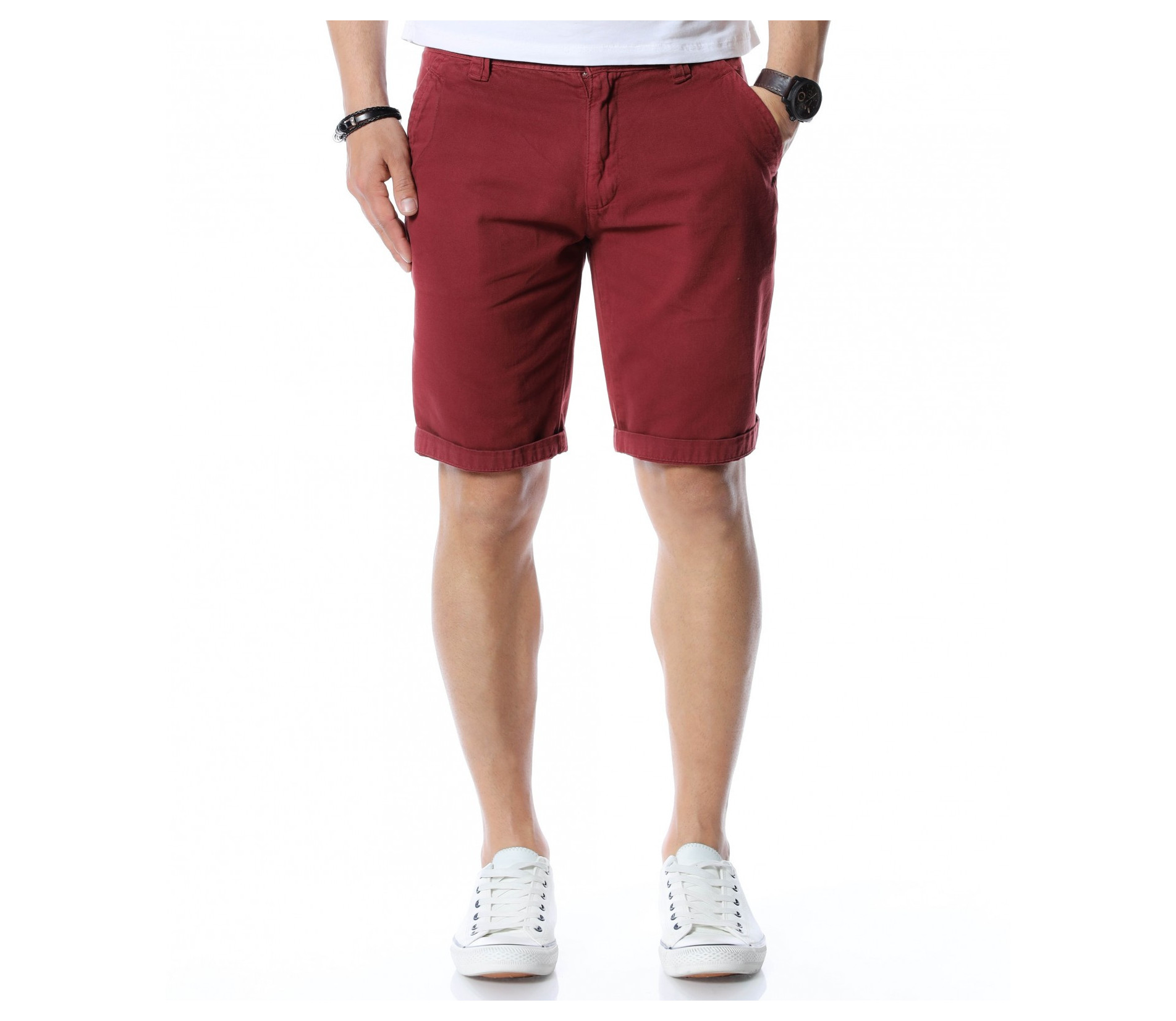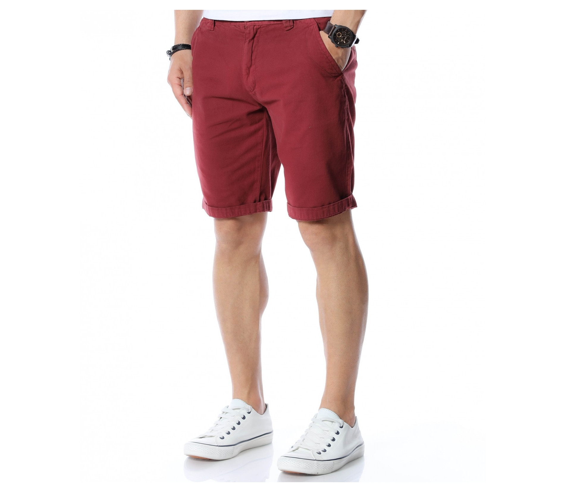 Гардеробът трябва да ви позволява за всяка ситуация да имате подходящо облекло, с което да се чувствате и изглеждате добре. Затова сме помислили за модните тенденции и ви представяме - Летни, мъжки къси панталони. По моделът откриваме типичните джобове - два стандартни отпред, а закопчаването се състои в цип и копче, като на талията забелязваме гайки за колан. Моделът е изчистен от допълнителни декорации. Кройката е вталена, но с достатъчно свобода, а меката материя осигурява незаменим комфорт на тялото. В зависимост от вашите стилови предпочитания, дизайнът позволява широко приложение и може да комбинирате с подходящи обувки, тениски, а защо не и нещо по-официално?