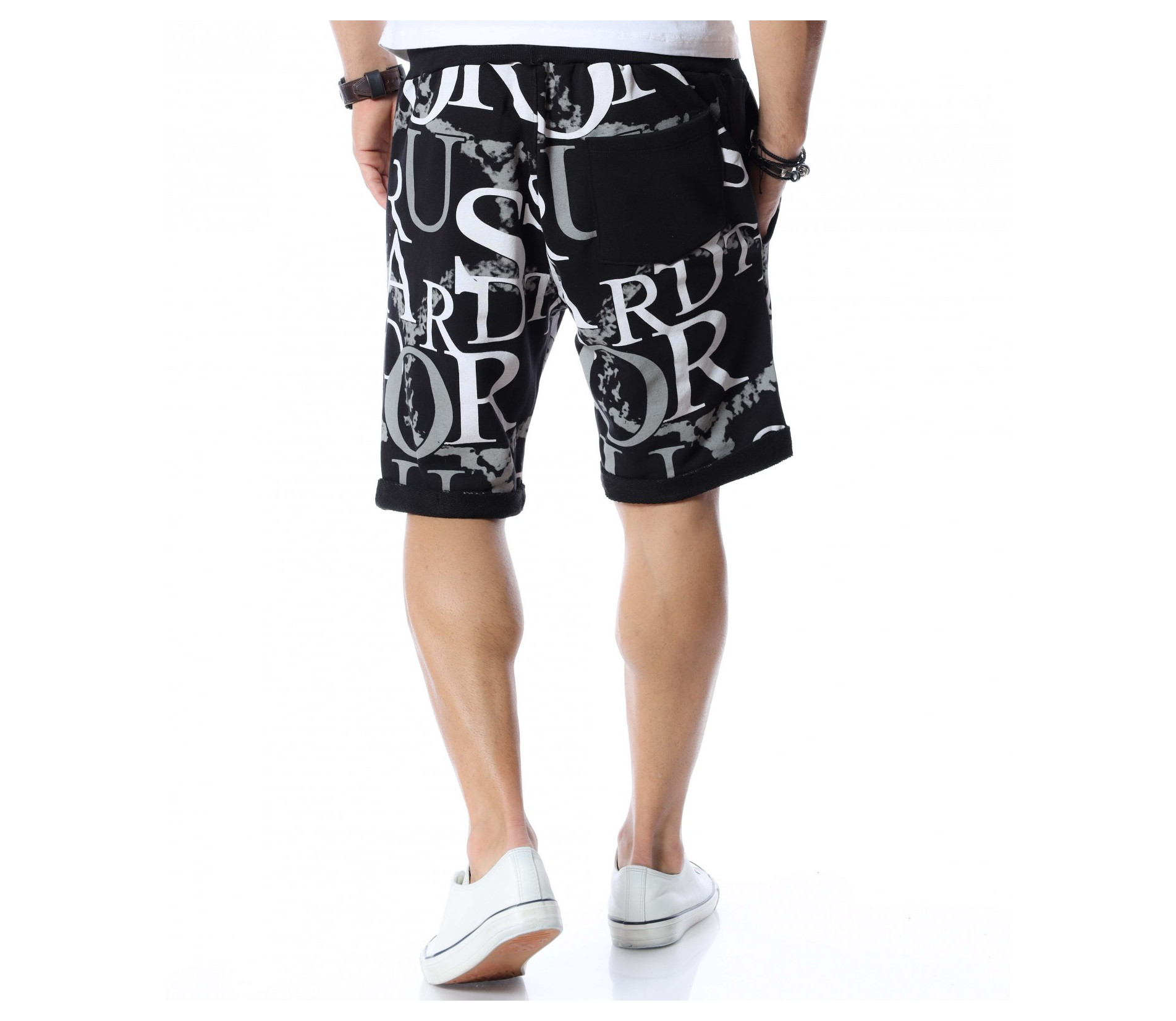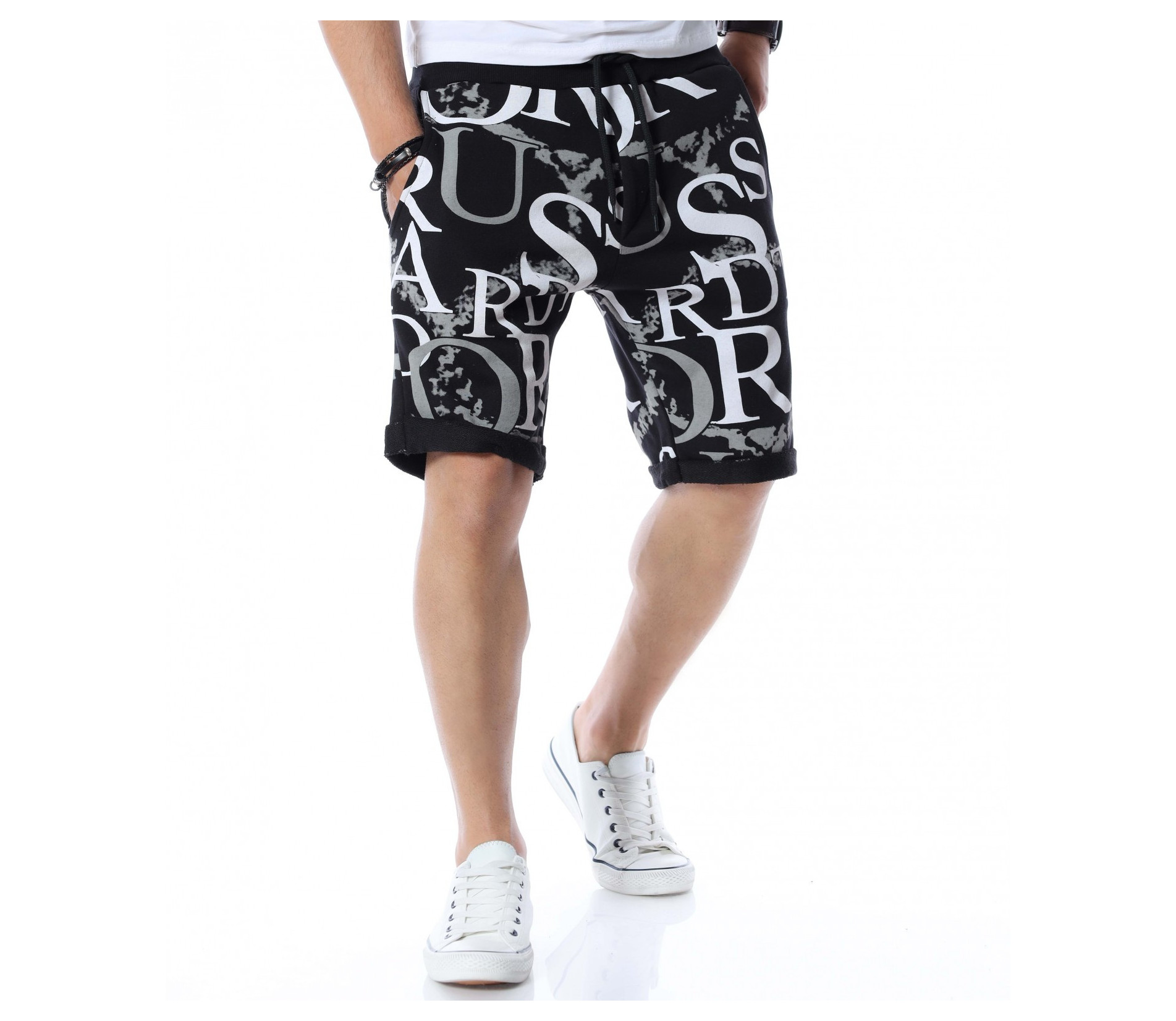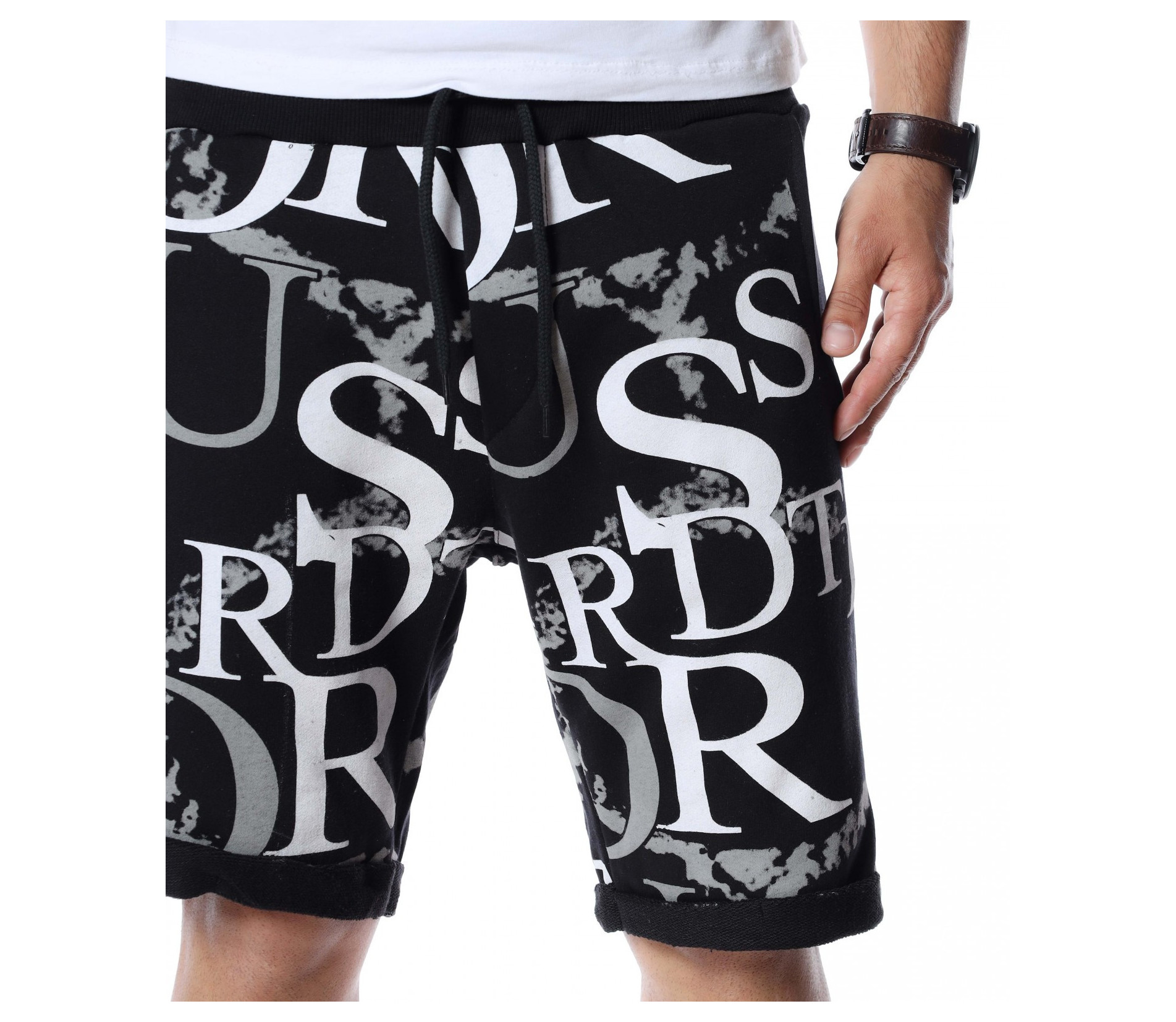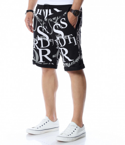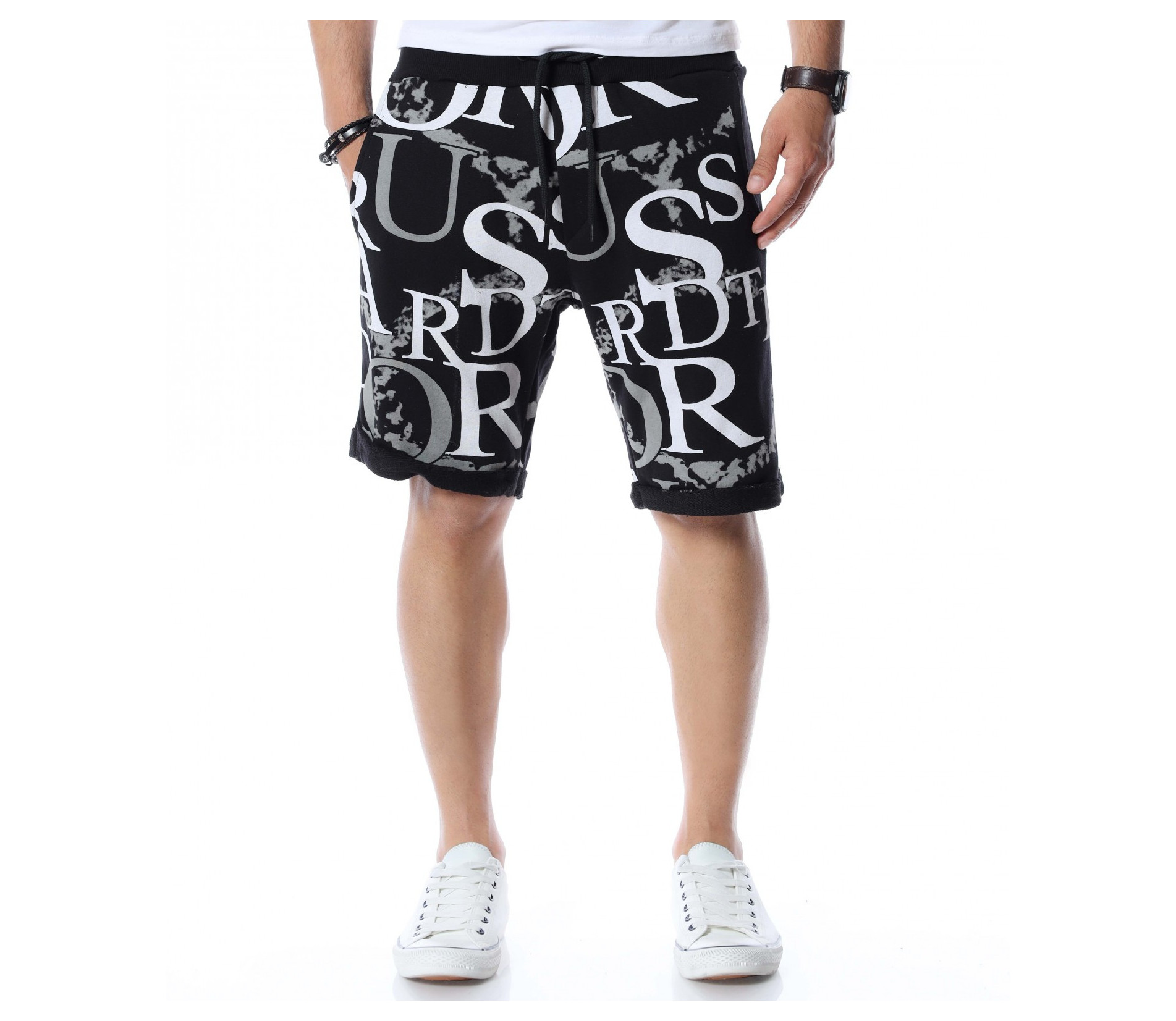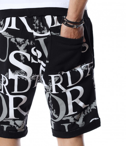 Разнообразете и подновете вашият летен гардероб като станете притежател на свеж модел - мъжки къси панталони. Основата е едноцветна, а по цялата дължина, отпред и отзад, откриваме масивни букви и декорации, с които няма как да останете незабелязани. На талията са позиционирани ластик и връзки, за да може да регулирате по-лесно ширината при нужда. В предната част, моделът разполага с два джоба и един в задната част, който по-скоро е за декорация. Кройката и меката материя ще ви осигурят комфорт и лекота на движение през целият ден. Нашето предложение: Комбинирайте с високи кецове, тениска и аксесоари по избор и ще изглеждате зашеметяващо.