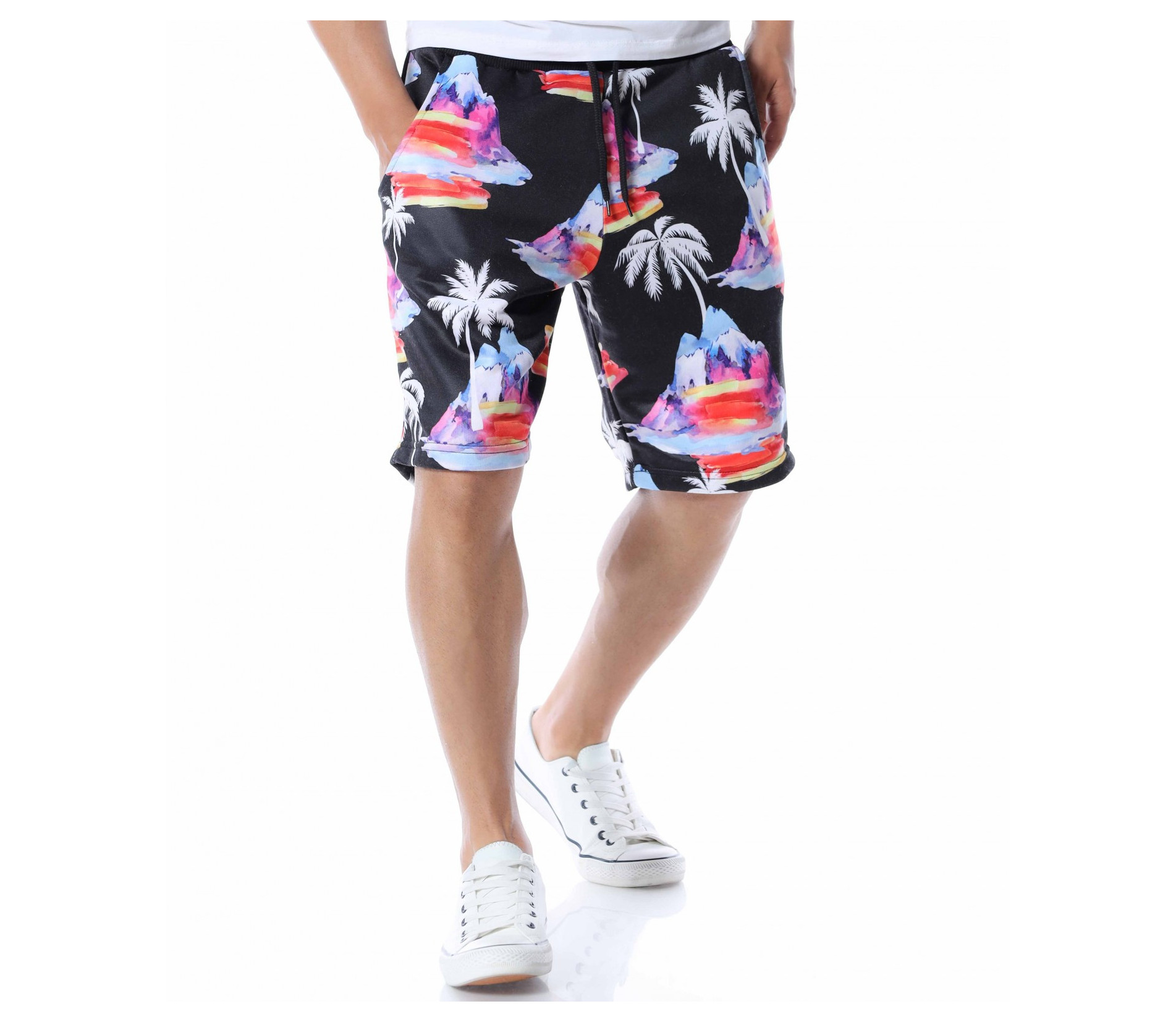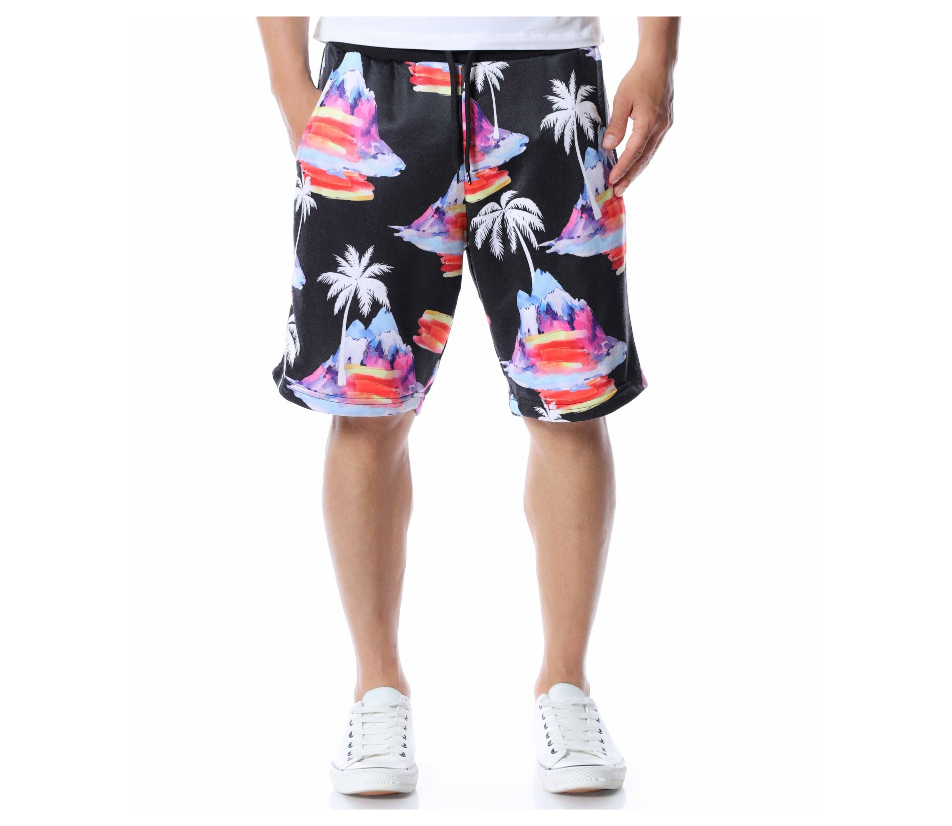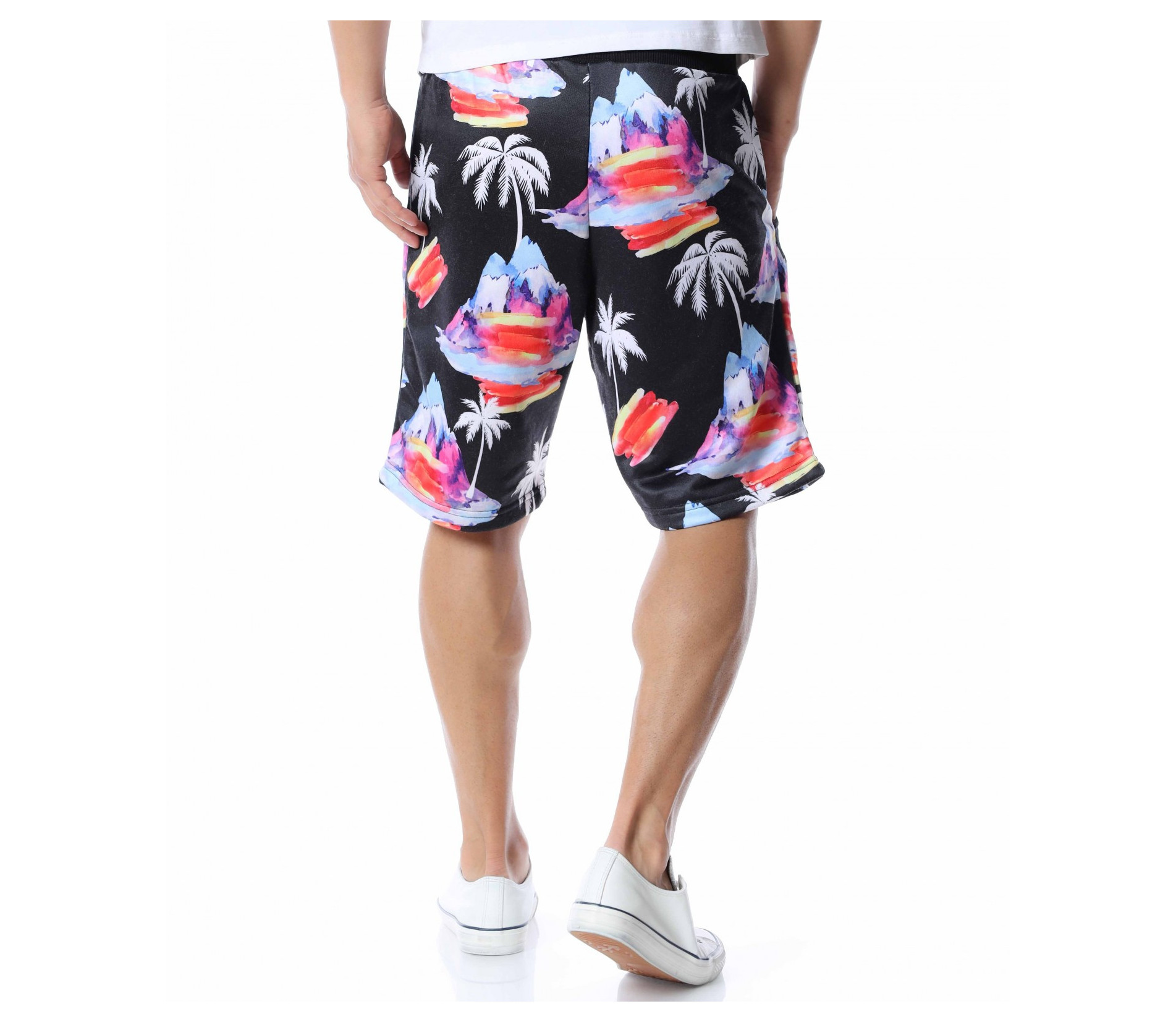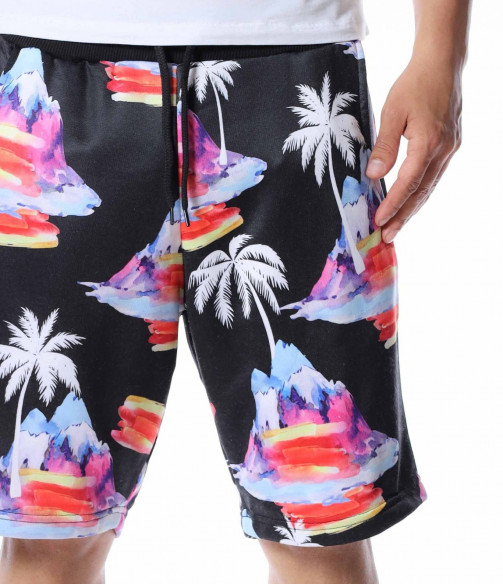 Представяме ви мъжки панталонки с дължина до коляното. Черният цвят, на който е поверена почти цялата основа е изключително лесно приложим към всеки друг нюанс от летния гардероб, с което се превръща в един от най-практичните ни модели тази година. За да бъде леко разчупен вида и стила им, по цялата основа е пръсната апликация на палми и цветни острови, които моментално изменят фокуса и създават един запомнящ се акцент. В областта на талията е разположен ластик, през който преминава и връзка, която позволява да регулирате ширината. Свободната кройка, също допълва цялостния кофморт, върху който са изградени мъжките къси панталонки. Подновете гардероба, като започнете от удобните и приятни за комбиниране летни дрехи.